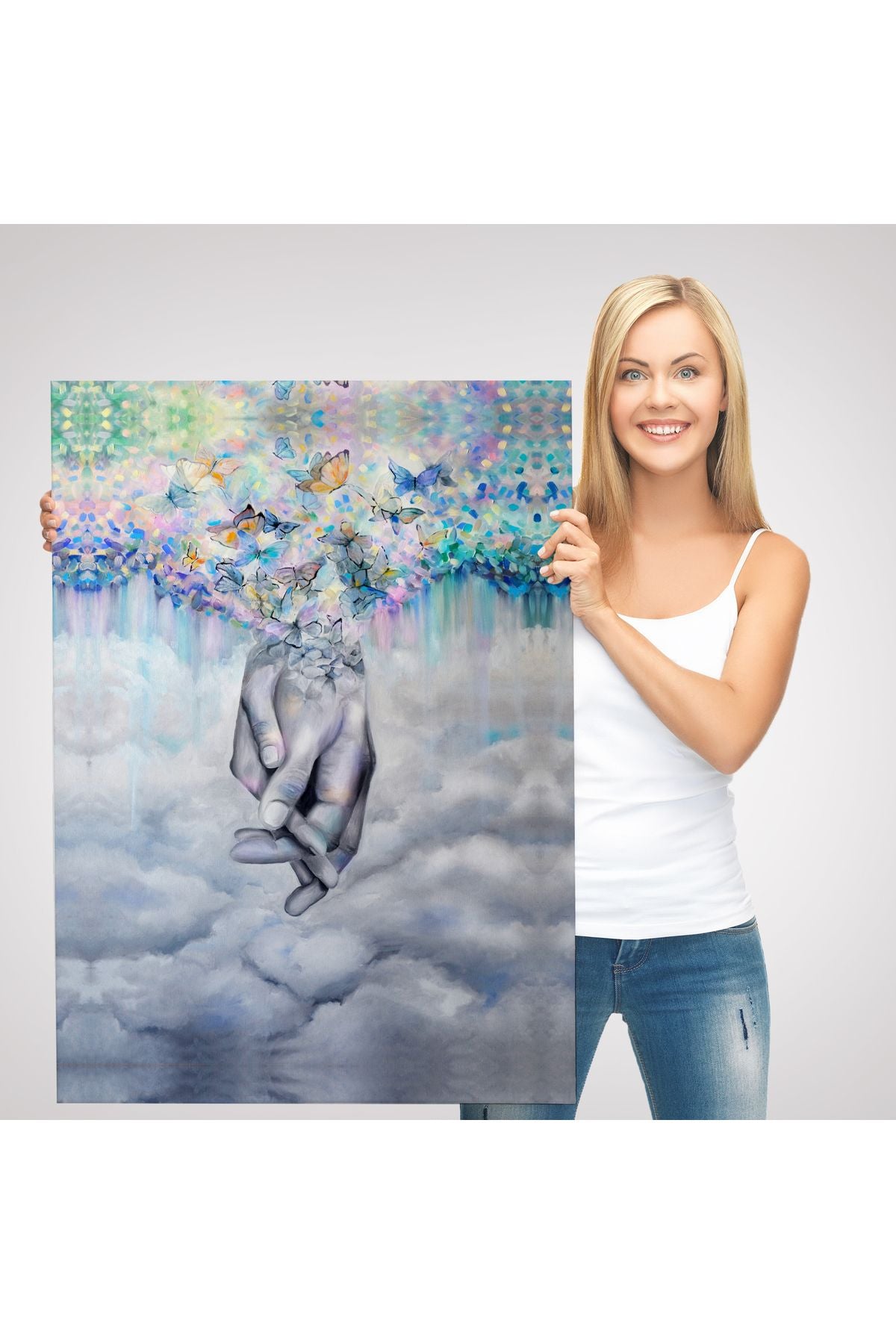 Sürrealist Kadın Ve Erkek Elleri Yağlıboya Görünüm Dekoratif Kanvas Duvar Tablosu-5951