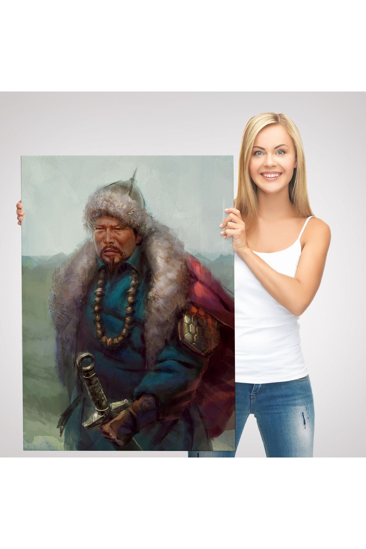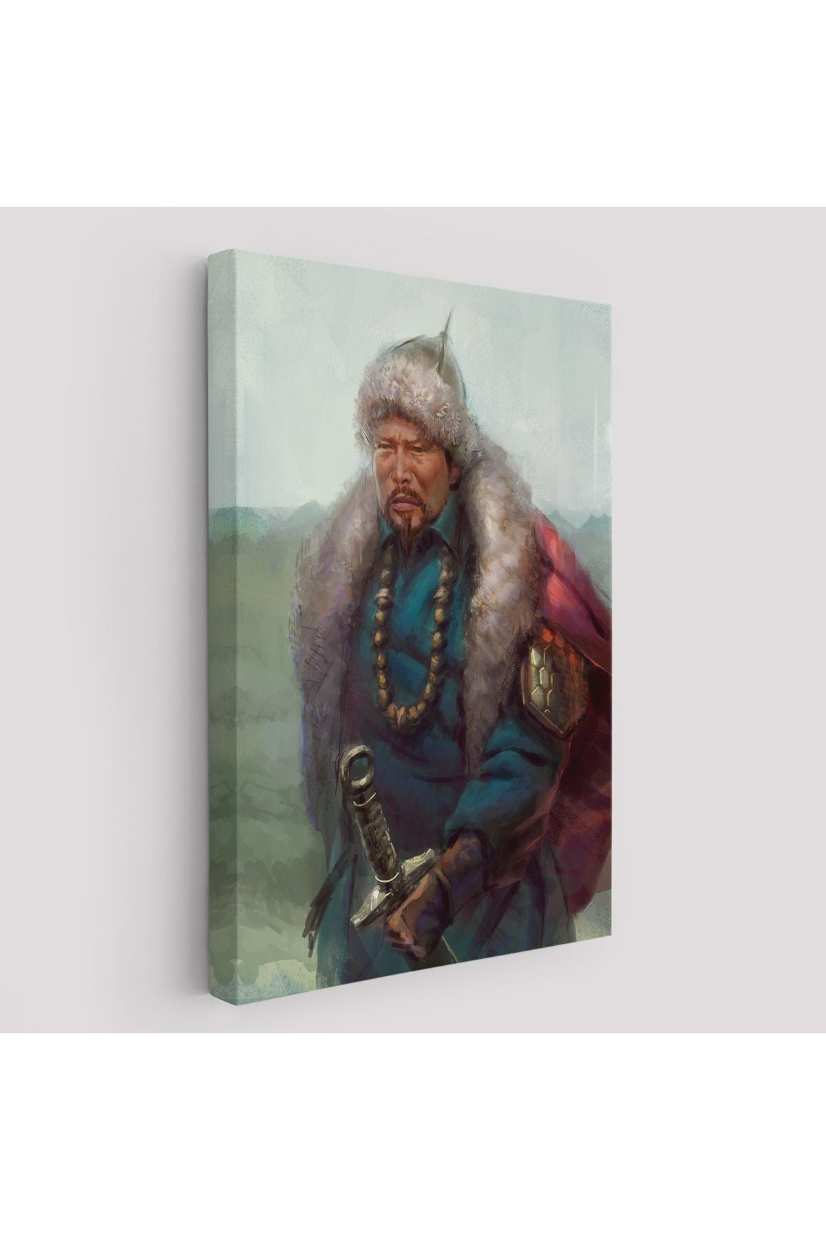 Cengiz Han Moğol Ordular Komutanı Yağlıboya Dekoratif Kanvas Tablo-5965
