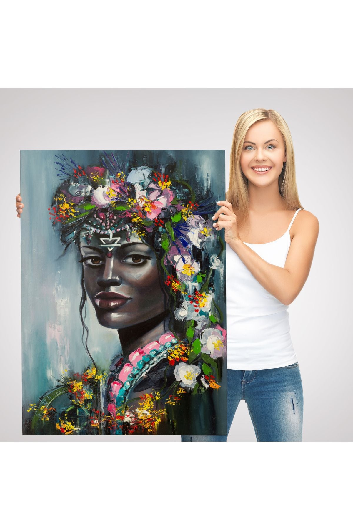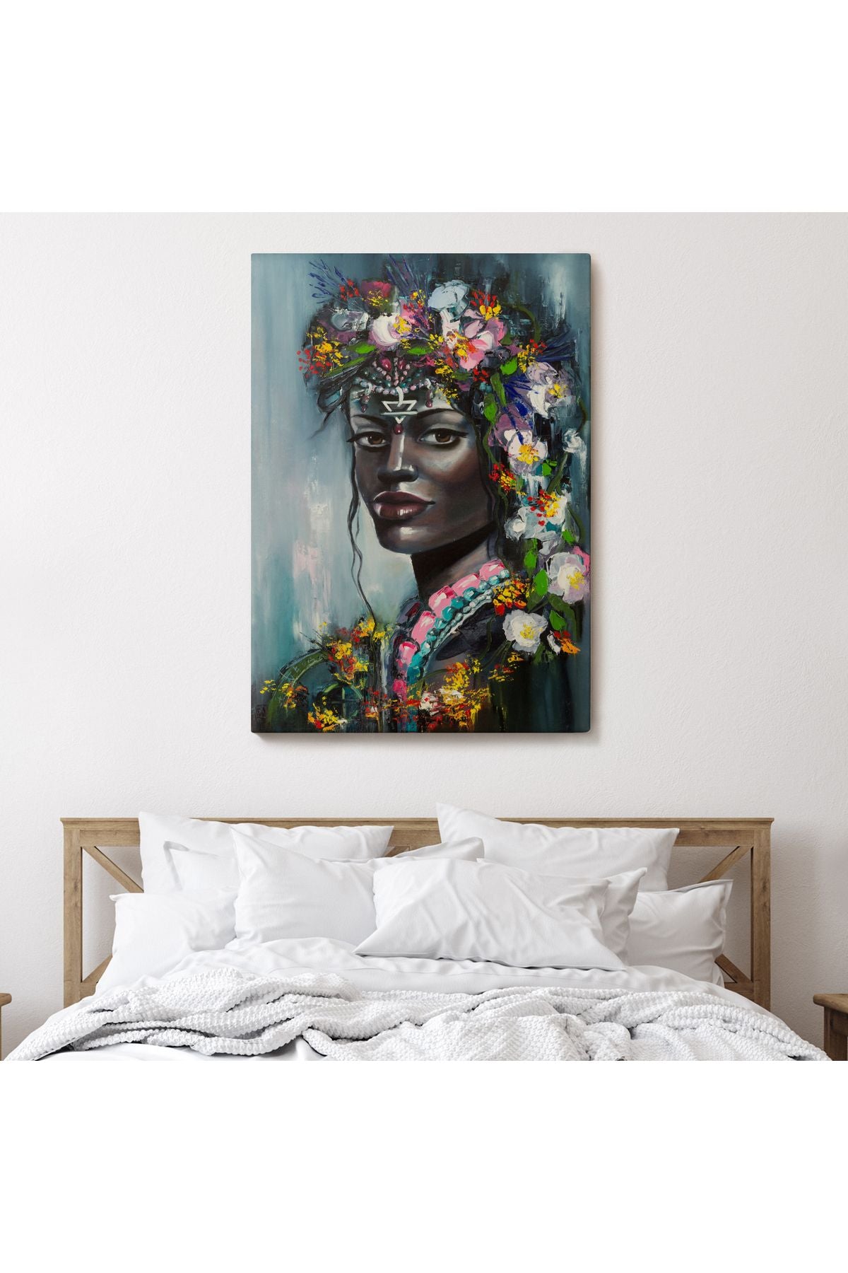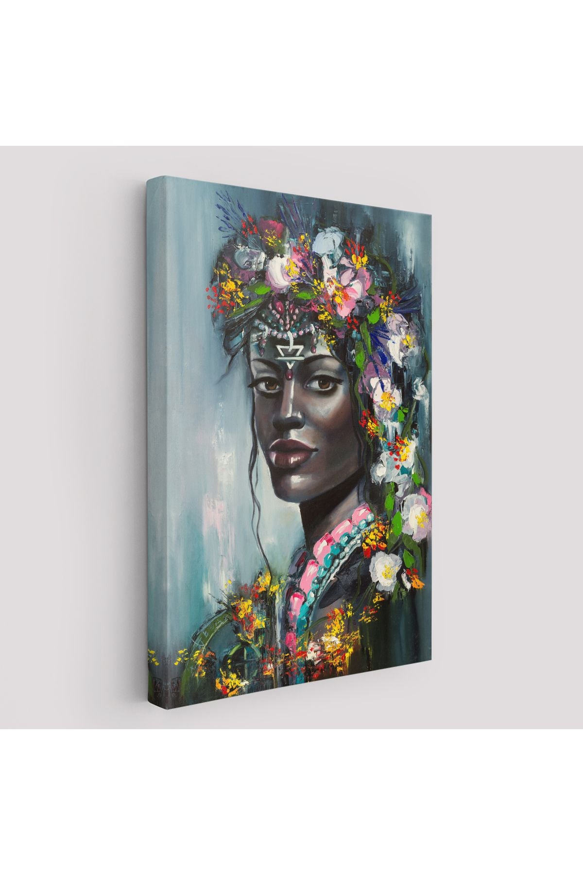 Çiçek Taçlı Afrikalı Kadın Kanvas Tablo-5979
