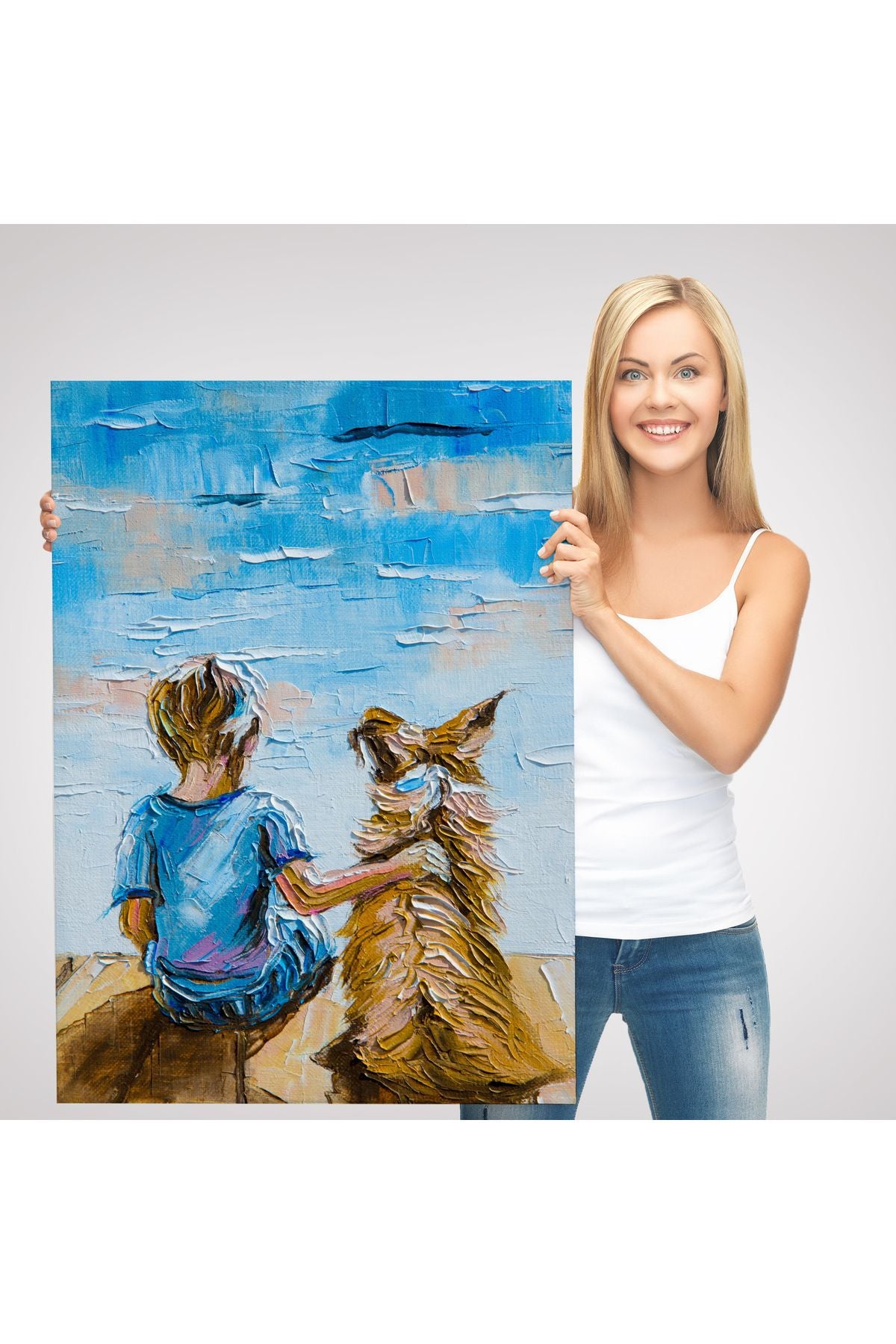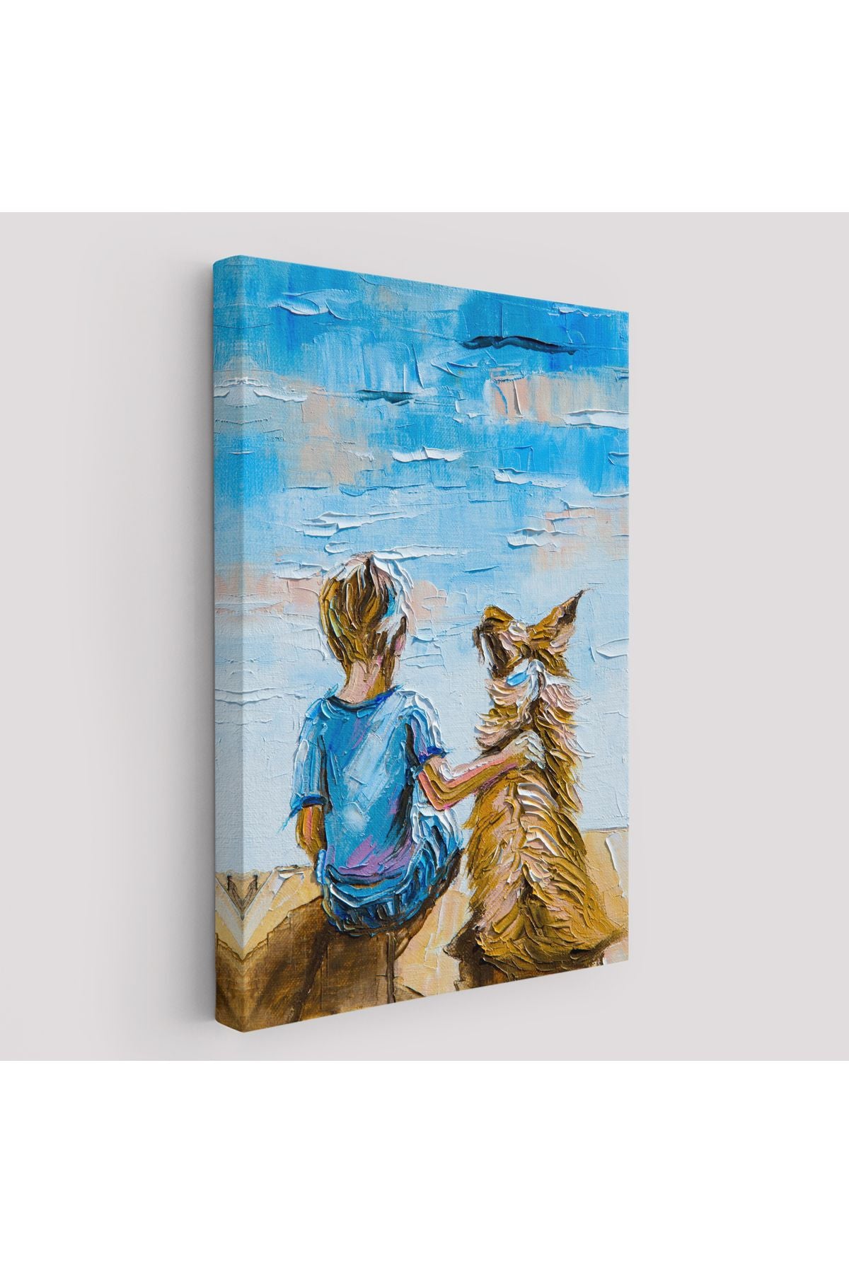 Göl Kenarında Oturan Çocuk ve Köpeği Duvar Tablo-5984