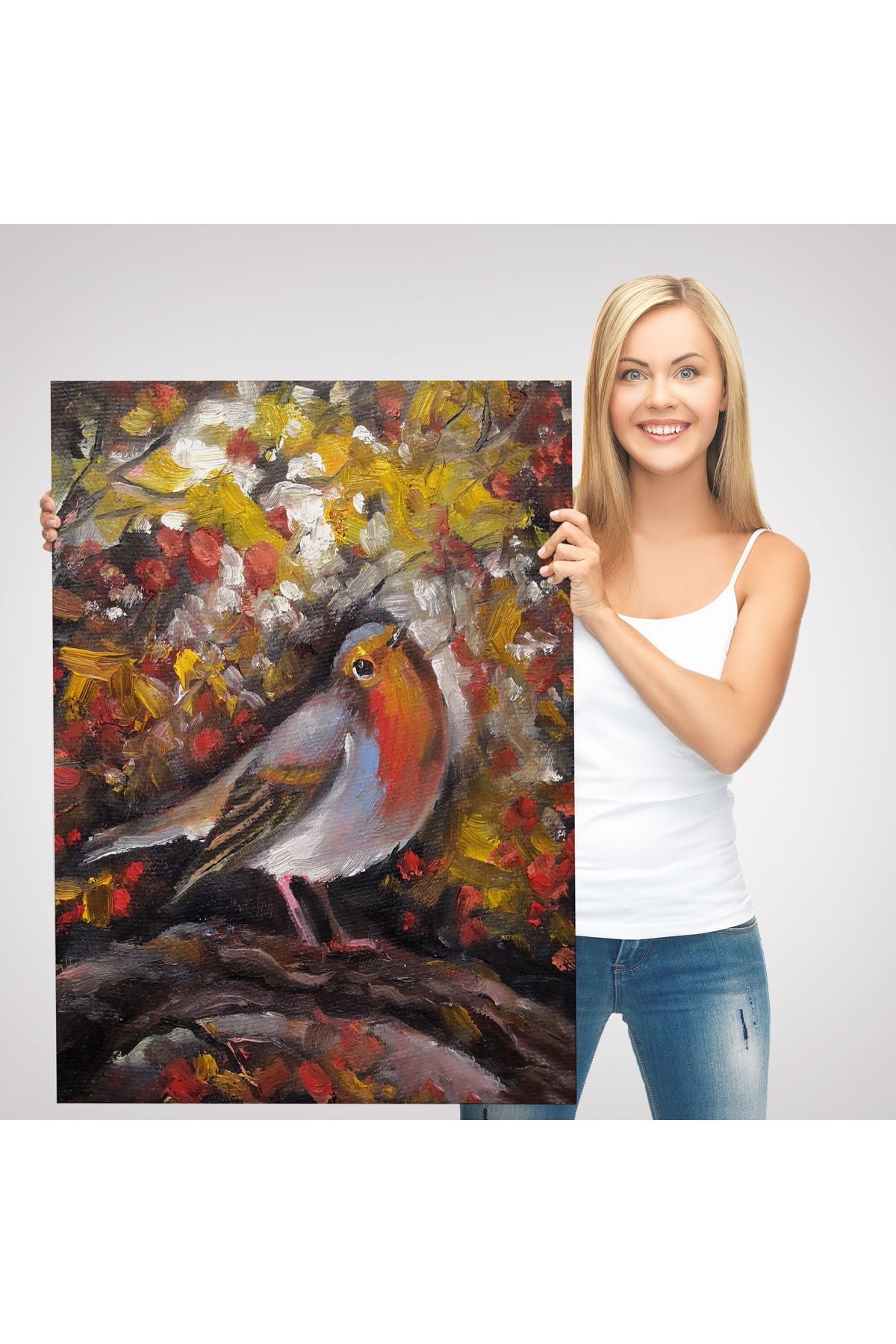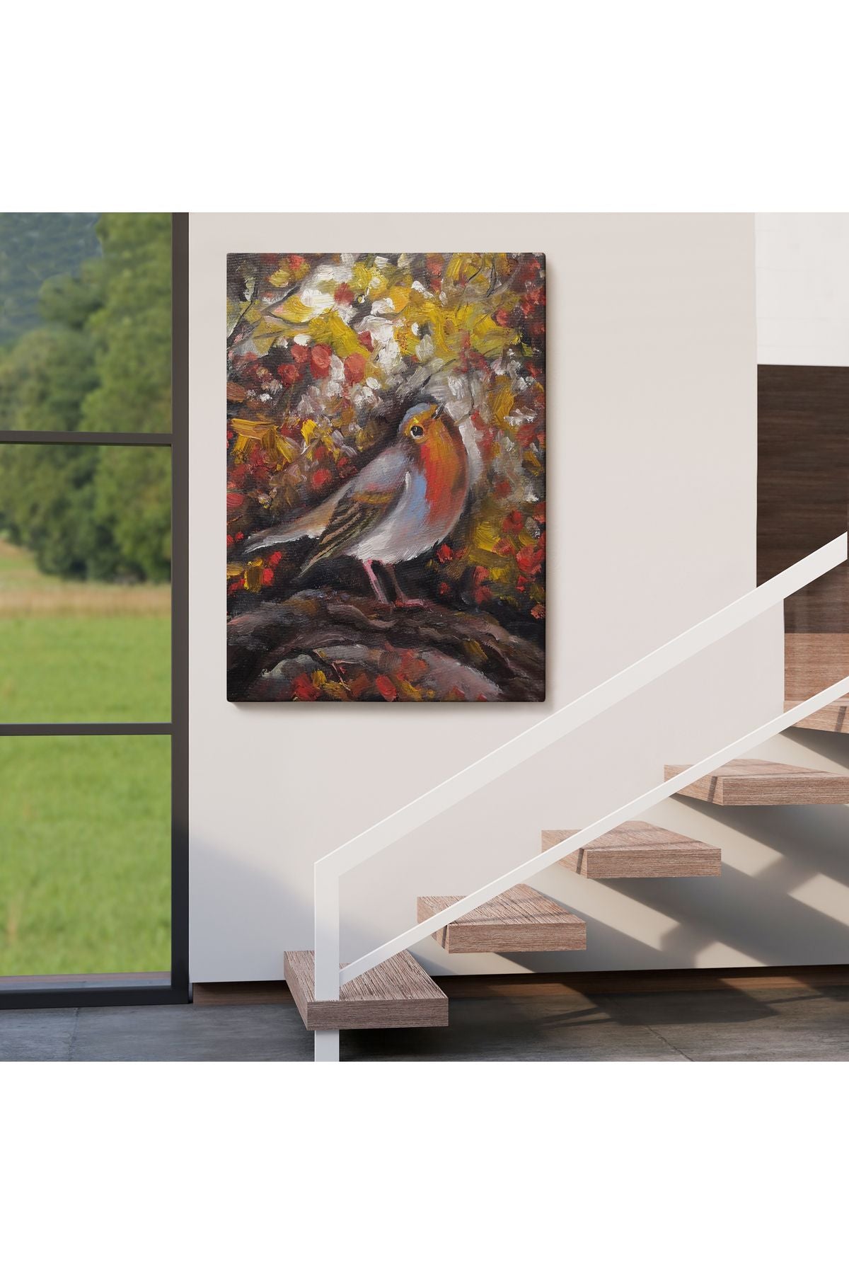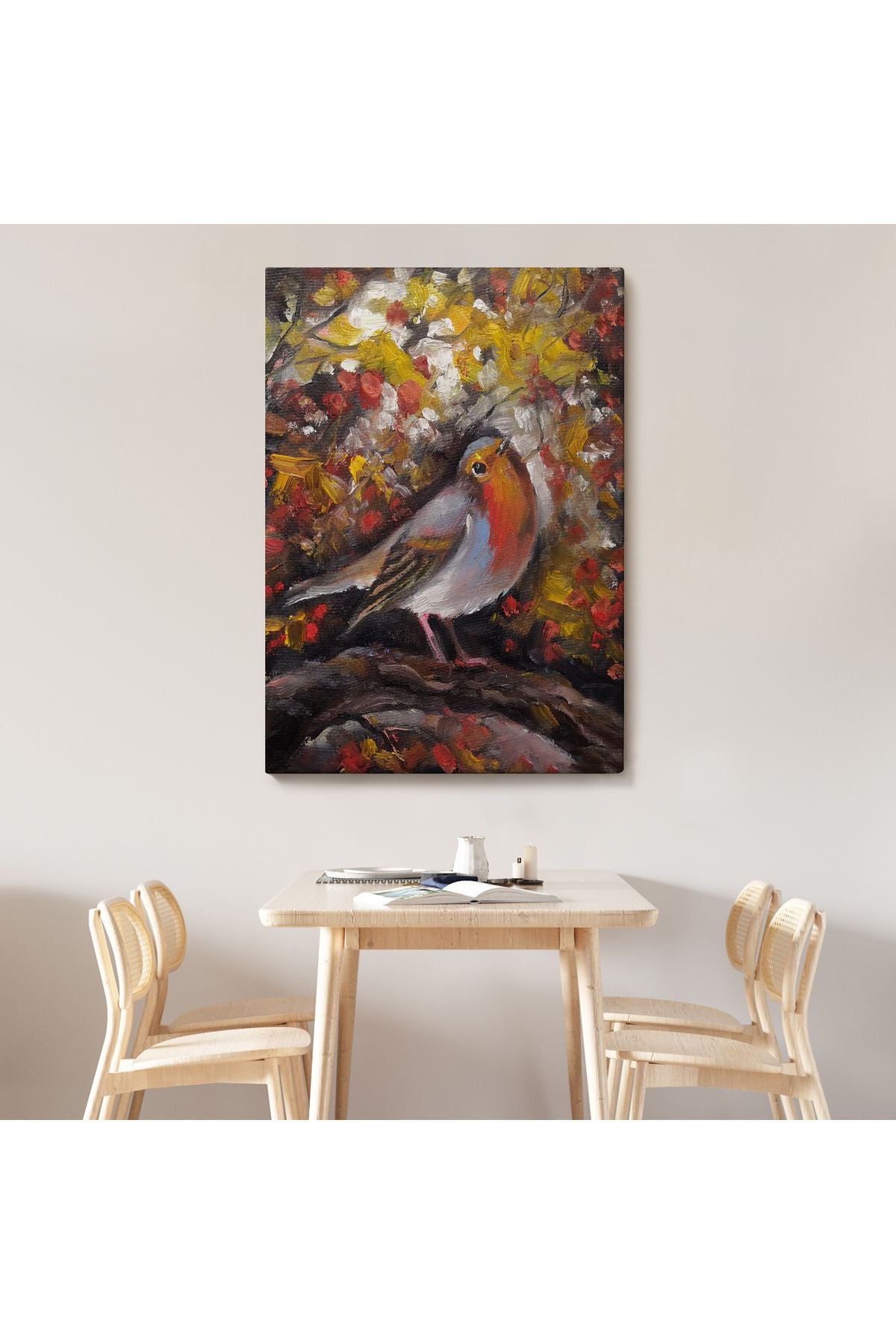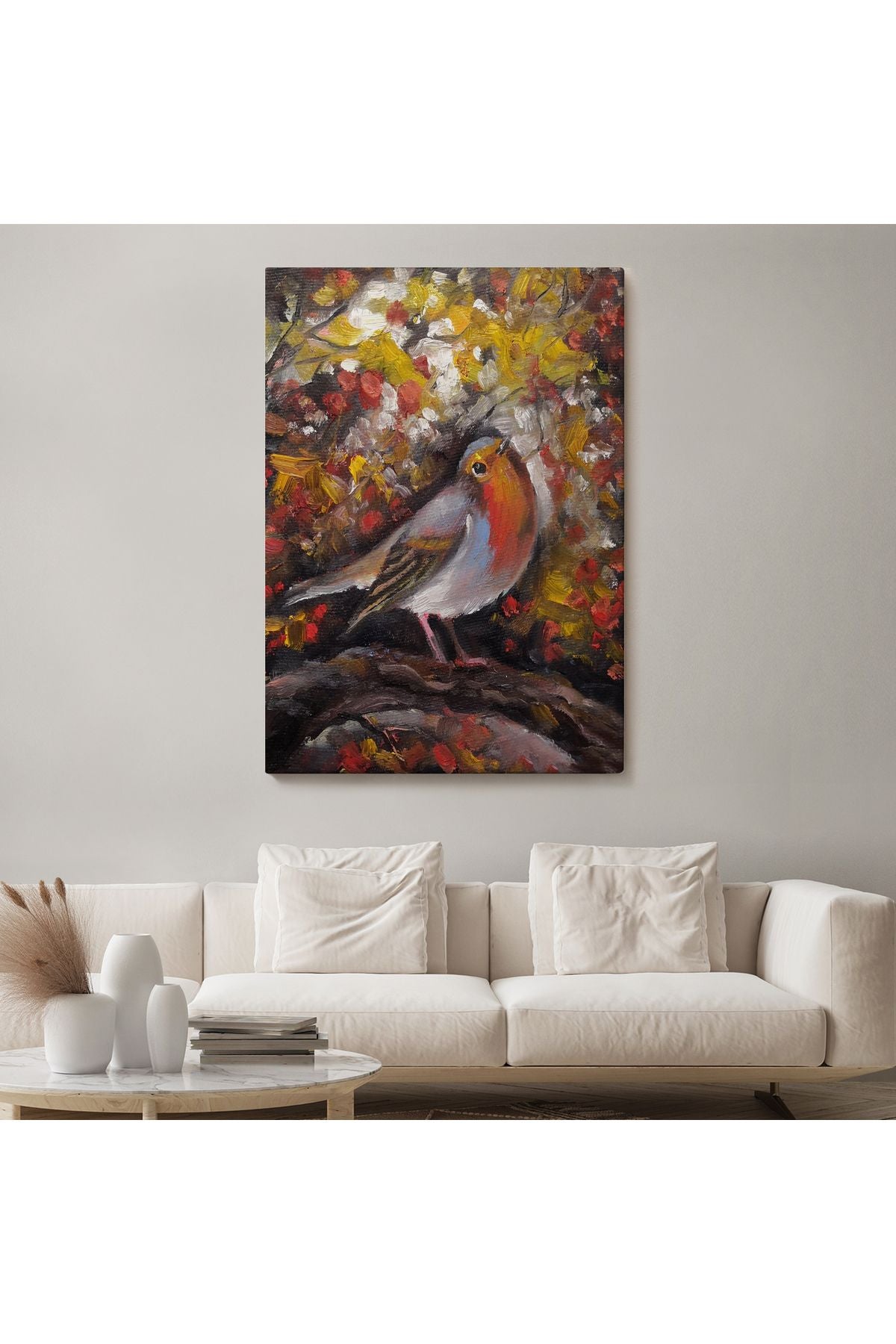 SZ KVS1-Dekoratif Duvar Tablosu-İngiliz Kırmızı Robin Kuşu Kanvas Tablo 6002