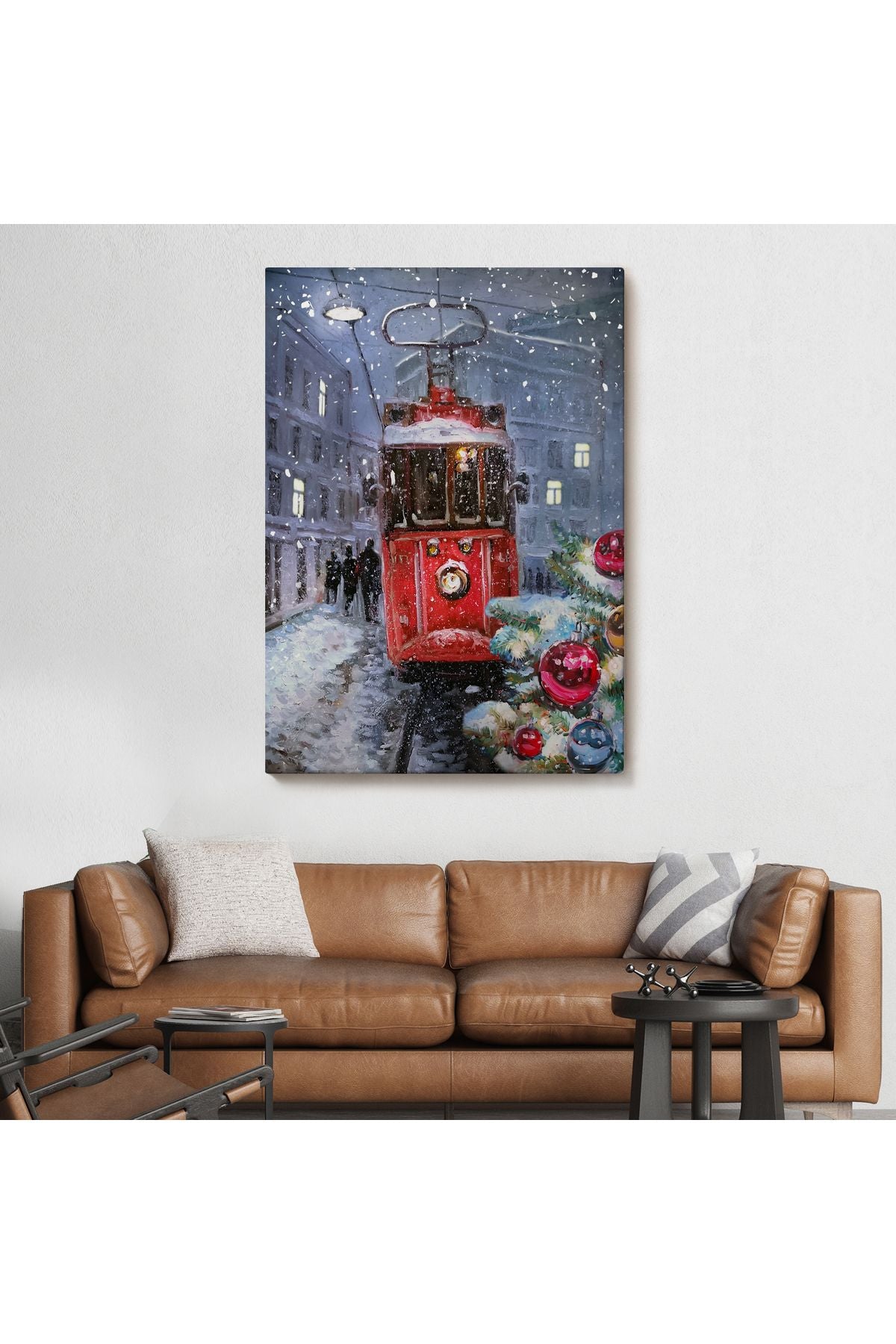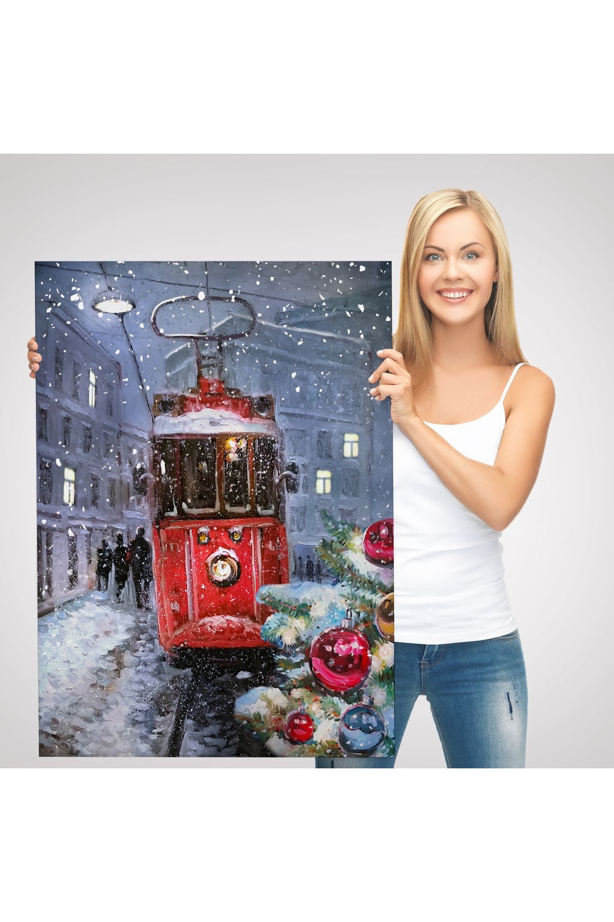 Karlar Arasındaki Kırmızı Tramvay Duvar Tablosu-6003