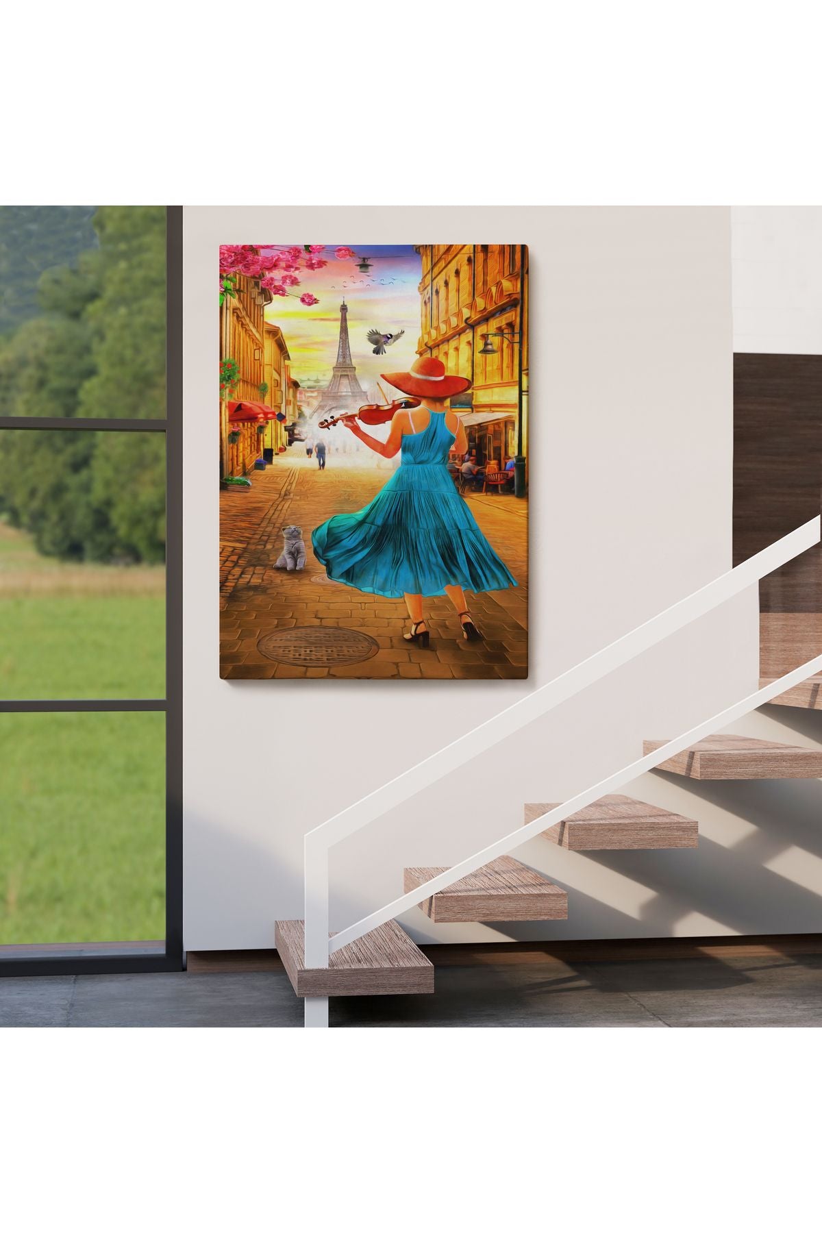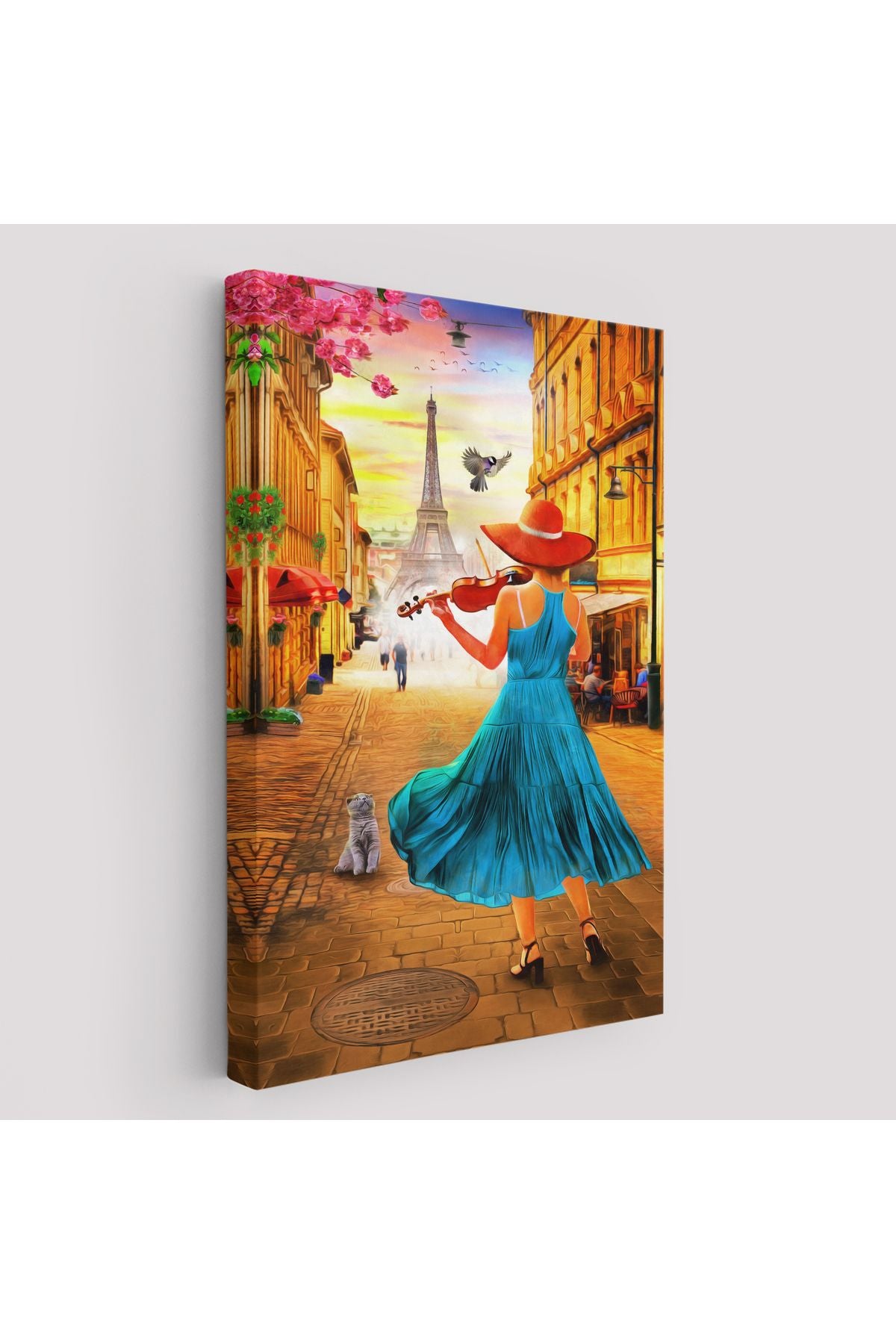 Paris de Etfel Kulesine Karşı Keman Çalan Kız Tablosu-6006