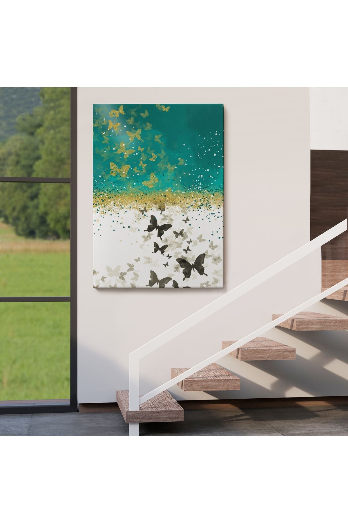 Altın ve Siyah Kelebekler Duvar Tablosu-6009