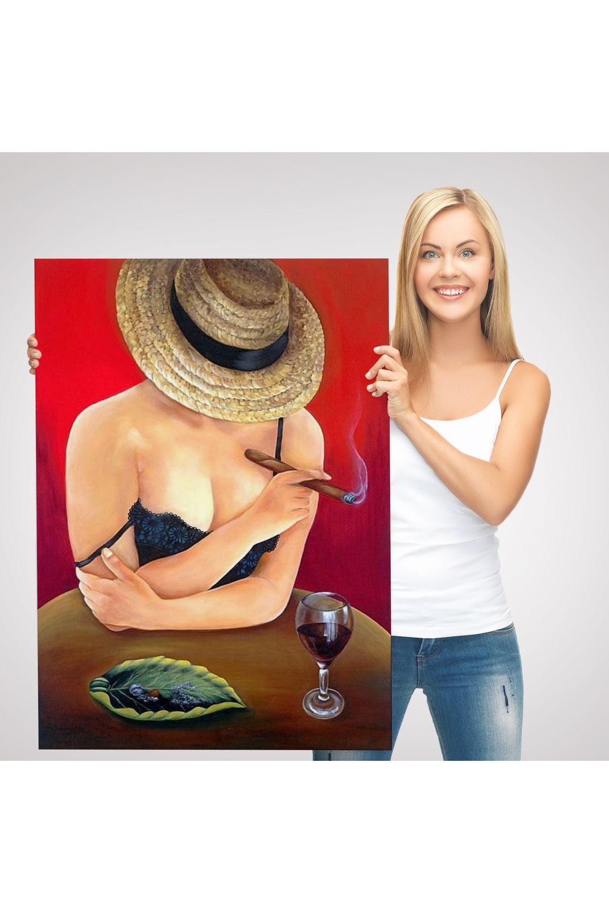 Şarap ve Puro İçen Kadın Tablosu-6018