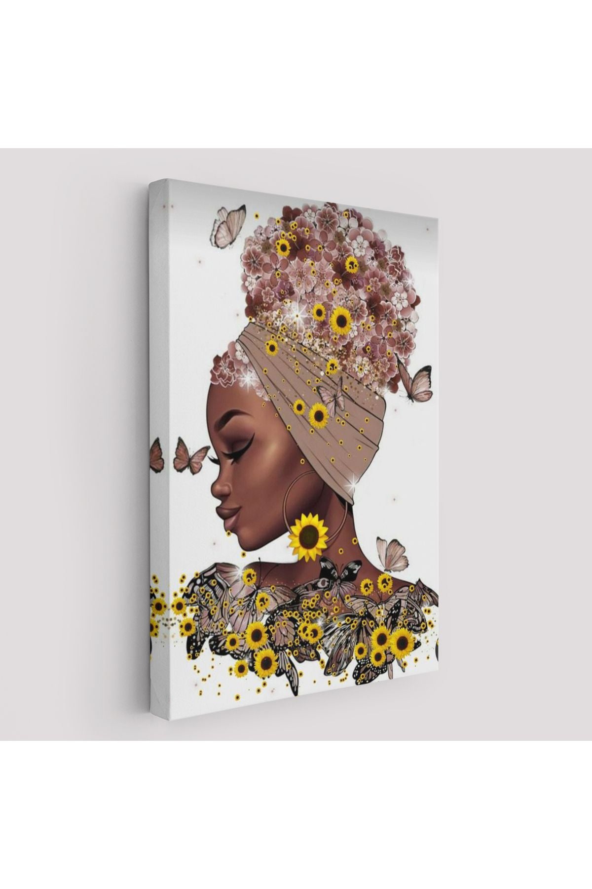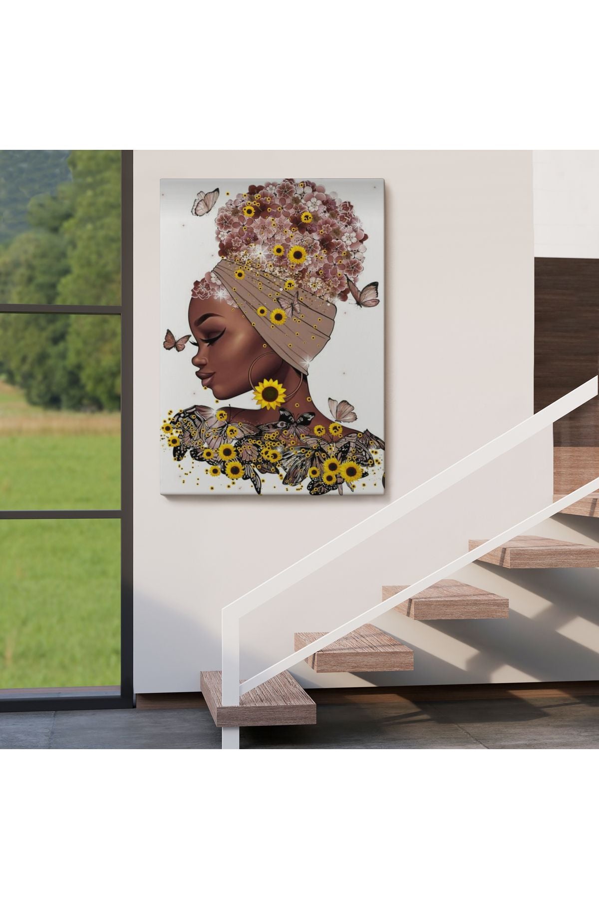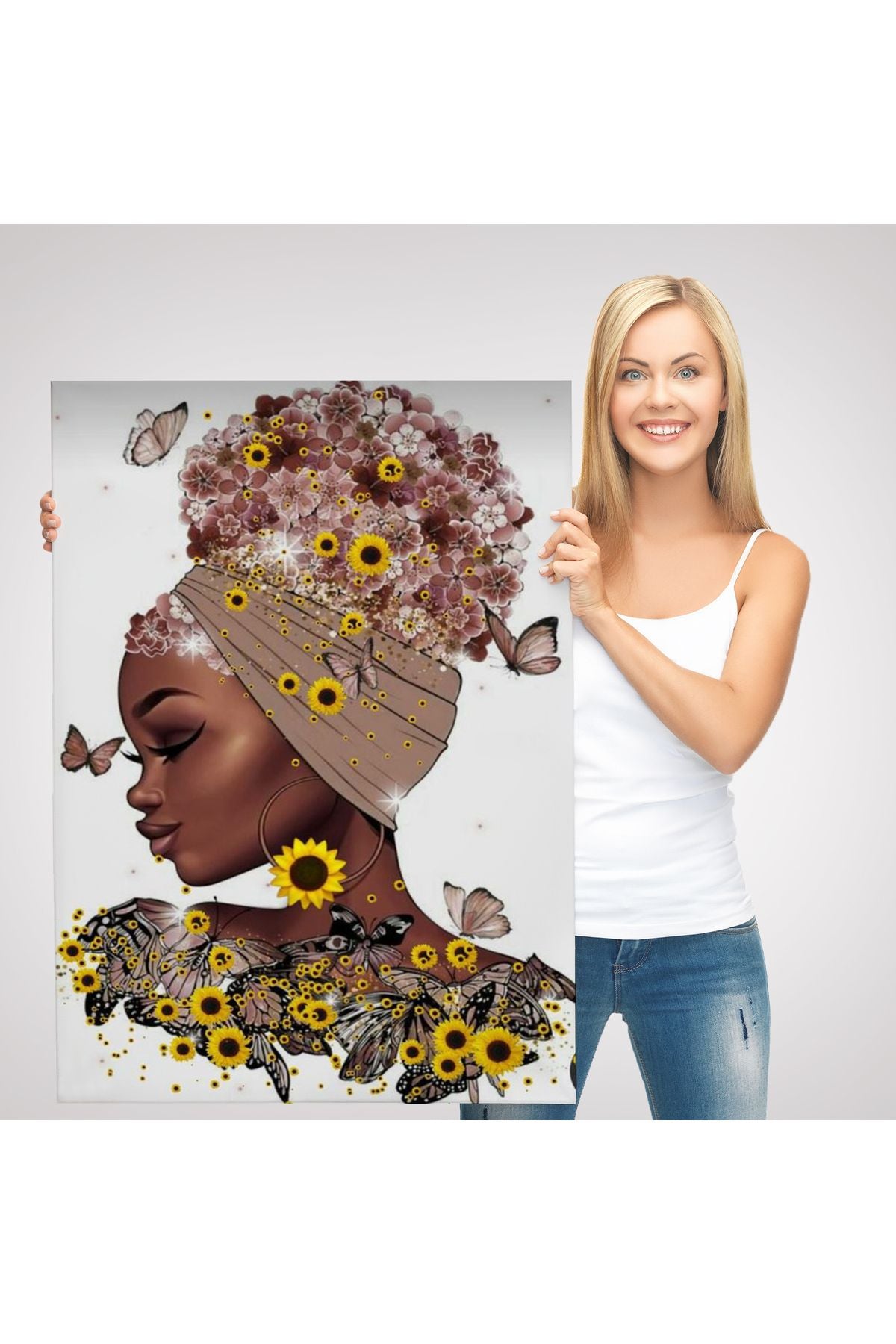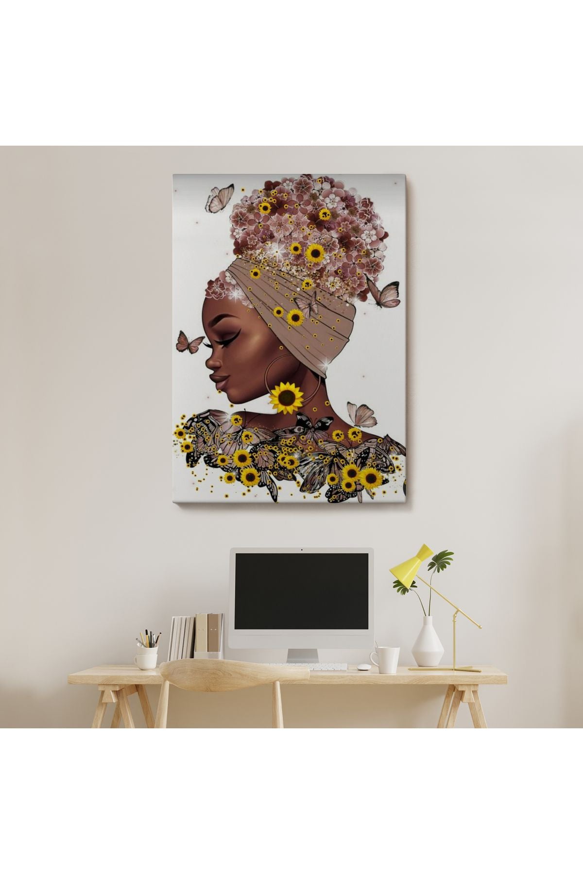 Kanvas Tablo, Duvar Dekoru, Afrikalı Güzel Kadın ve Çiçekler 6038 BUNGKNV