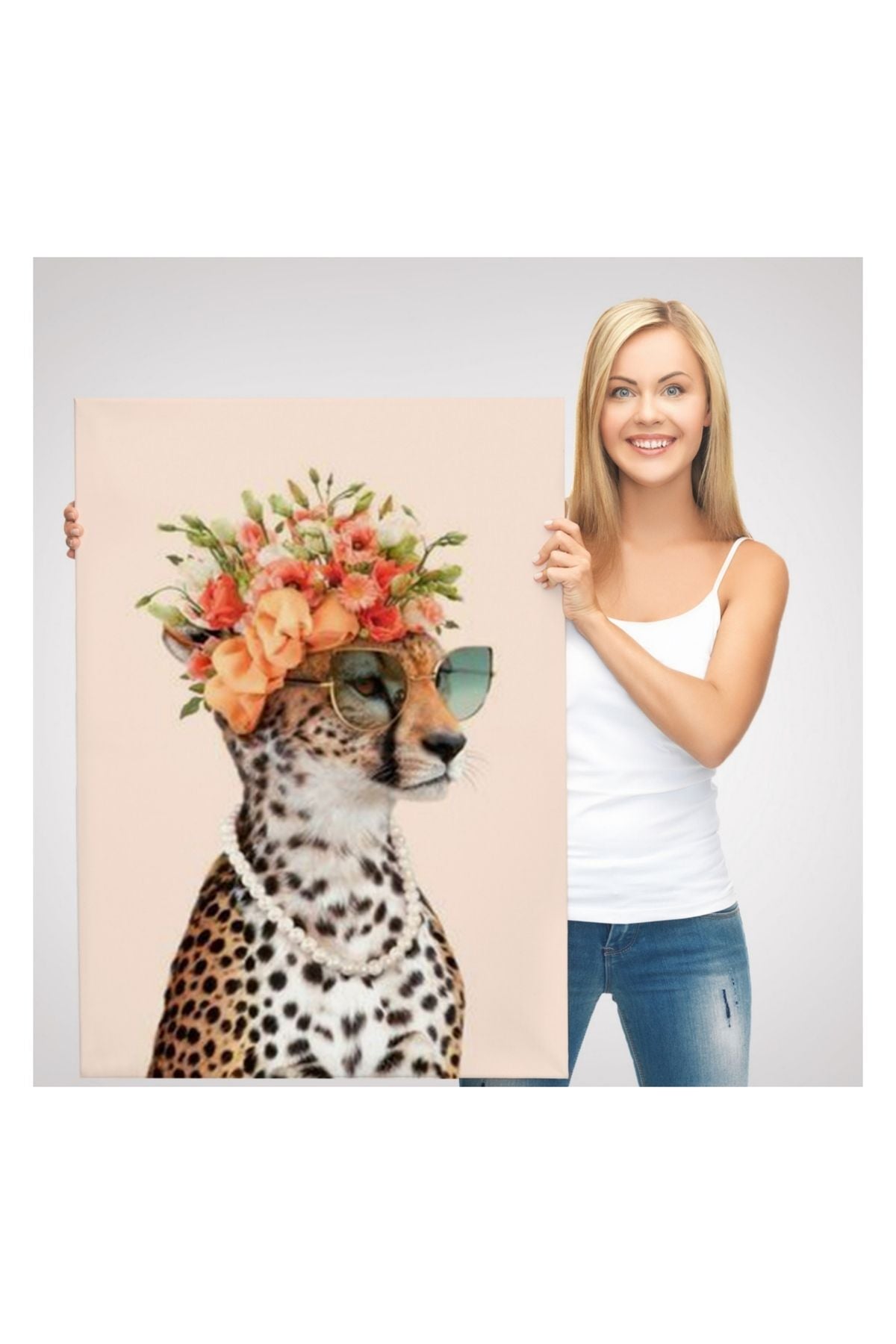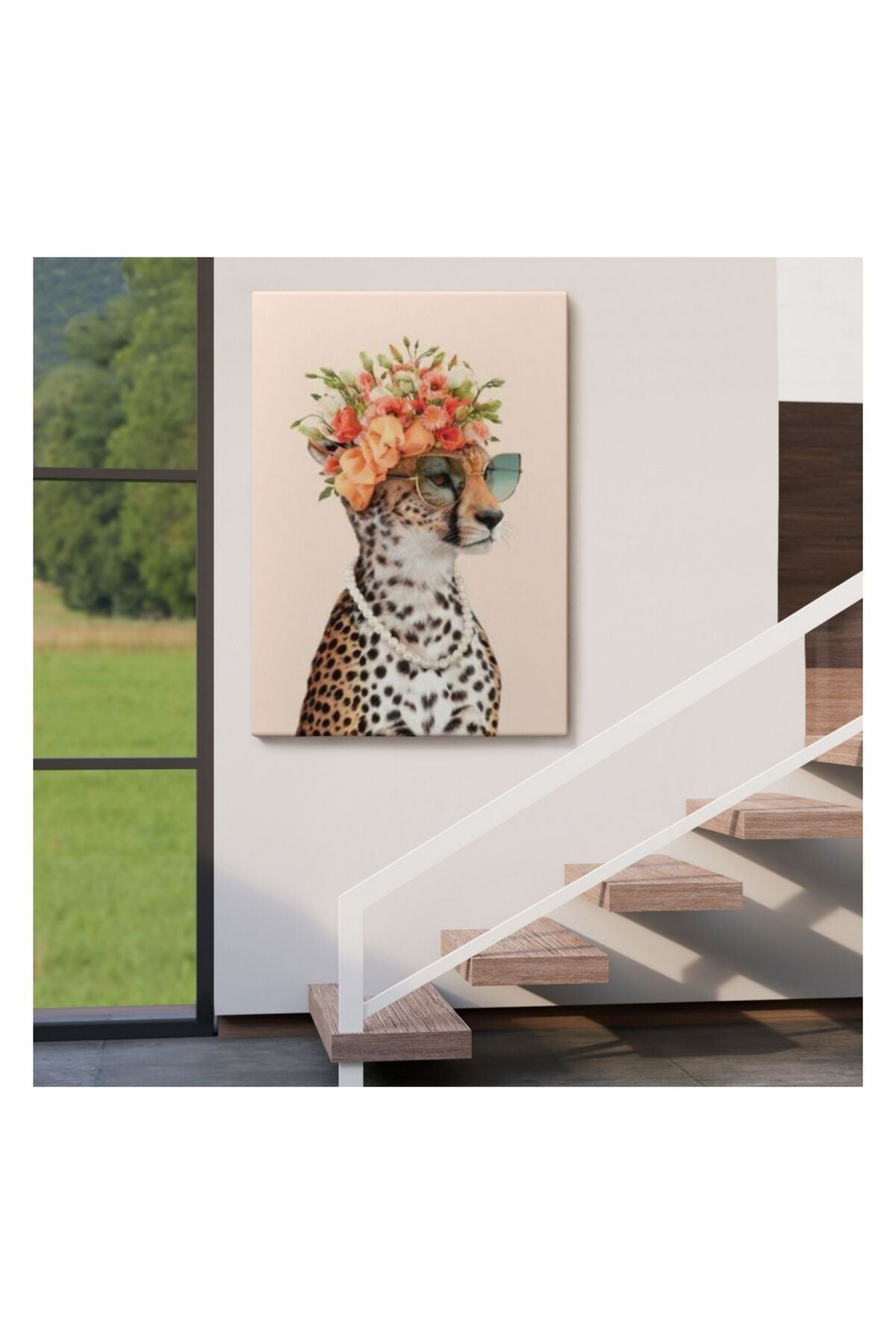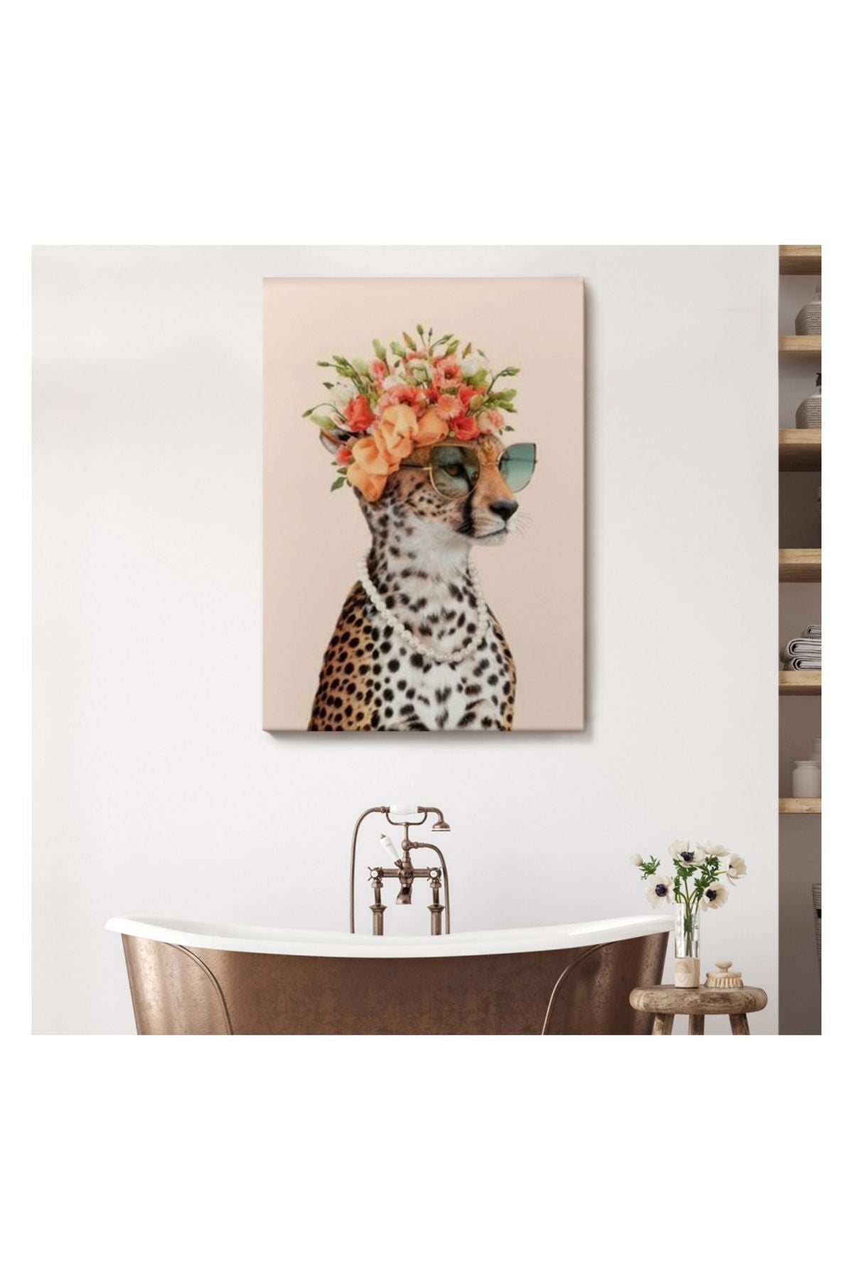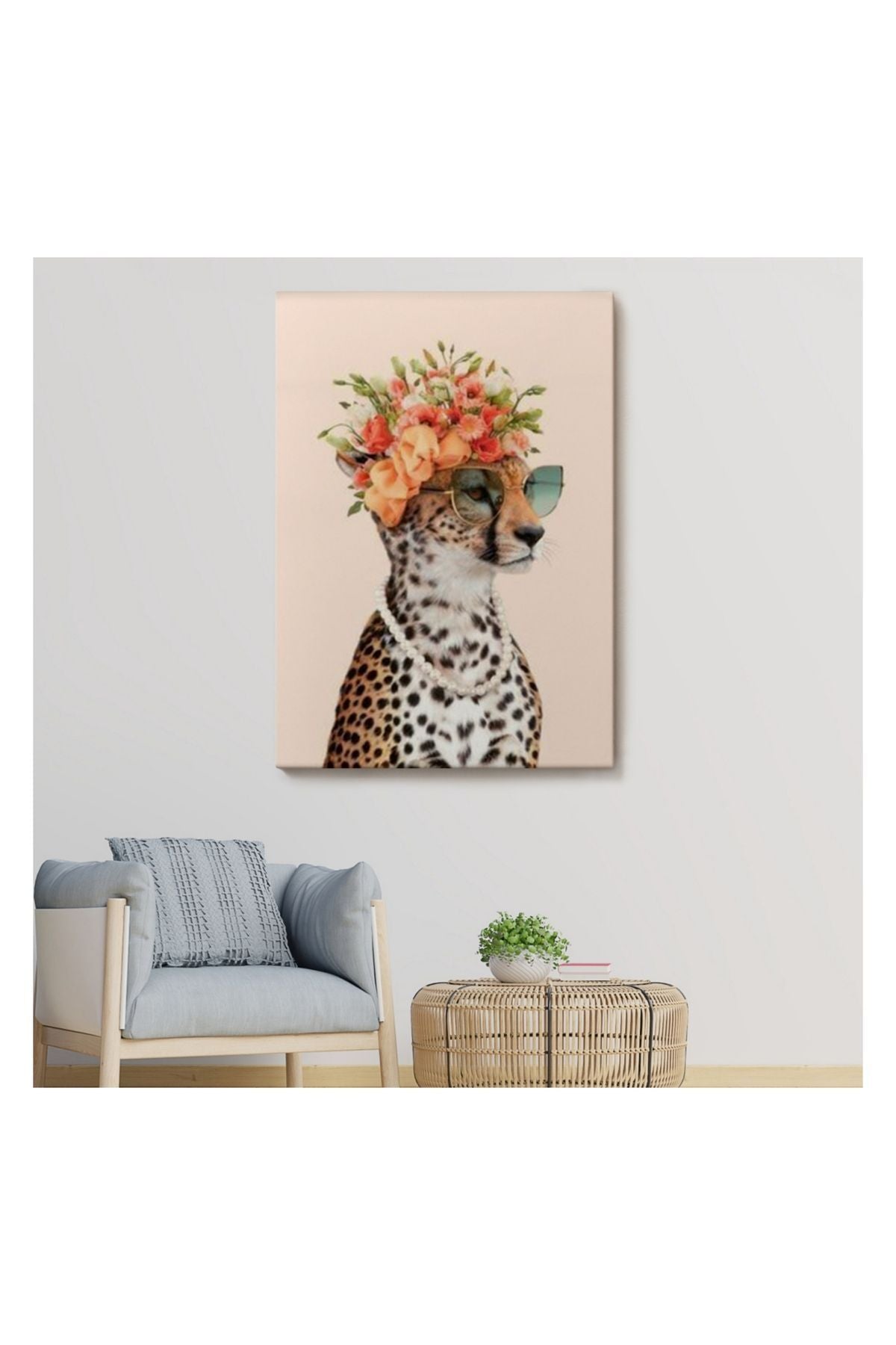 Kanvas Tablo, Duvar Dekoru, Çiçek Taçlı Sosyetik Kokoş Çita 6049 BUNGKNV