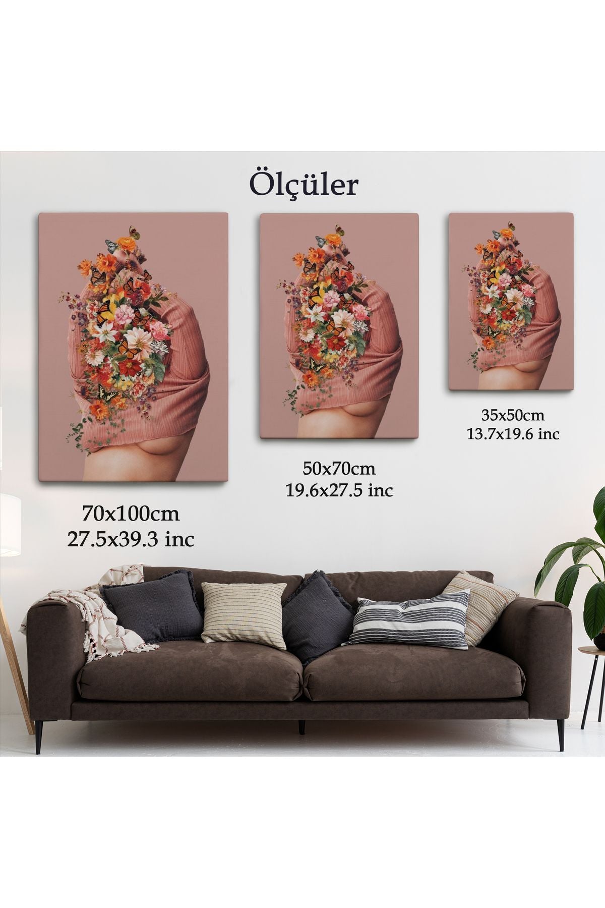 Soyunan Kadın Renkli Kelebekler ve Çiçekler Detaylı Tablo-6060
