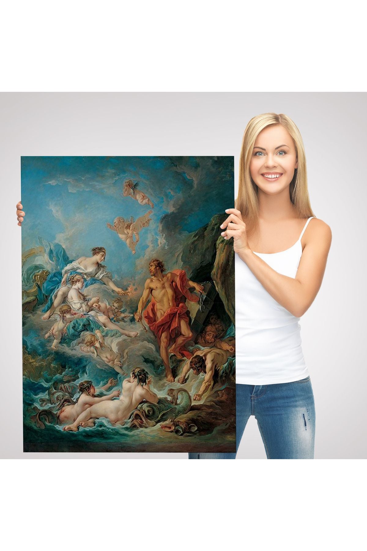 Juno, Aeolus'tan Rüzgarları Serbest Bırakmasını İstiyor, François Boucher Rönesans Tablosu-6061