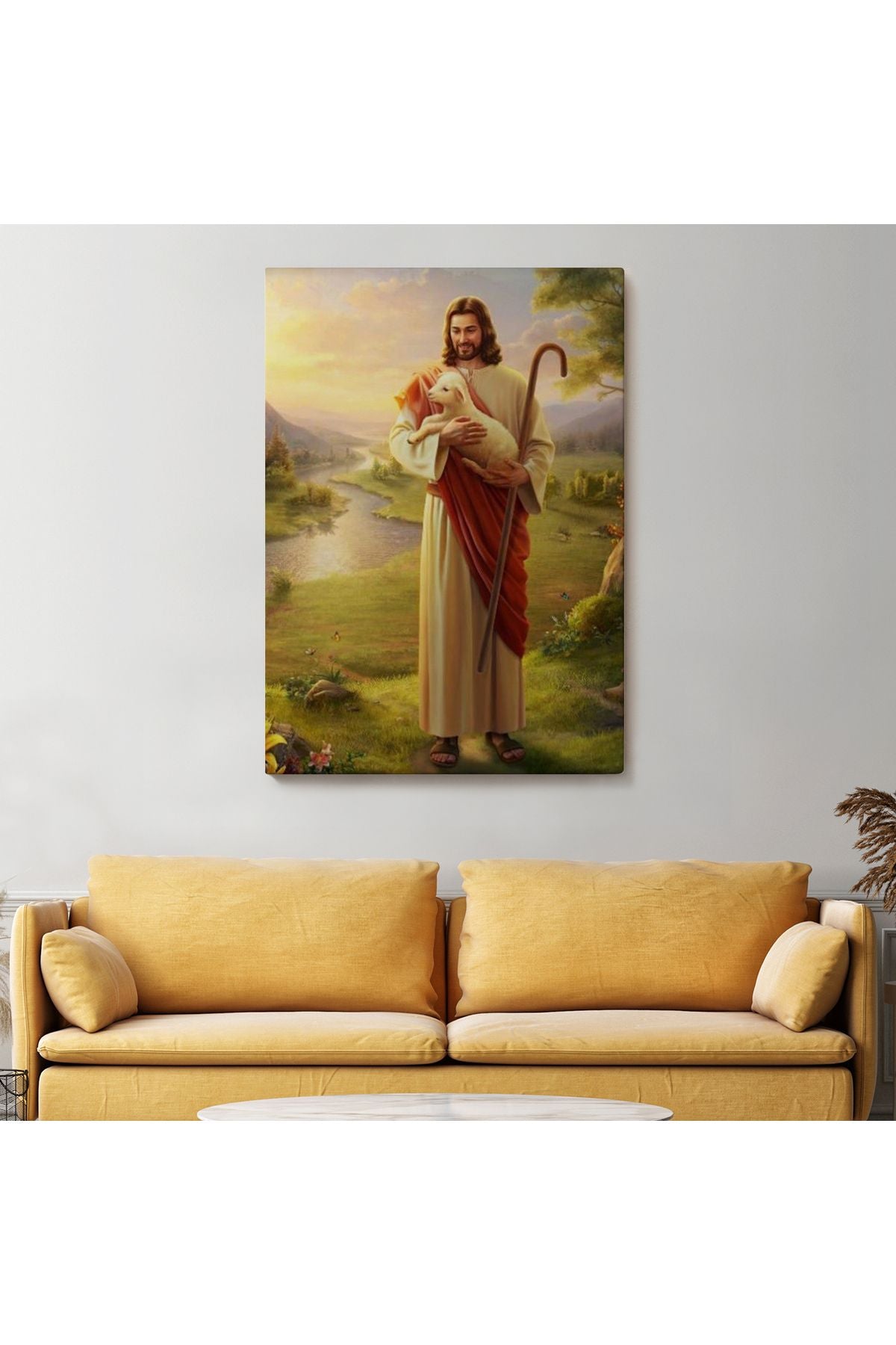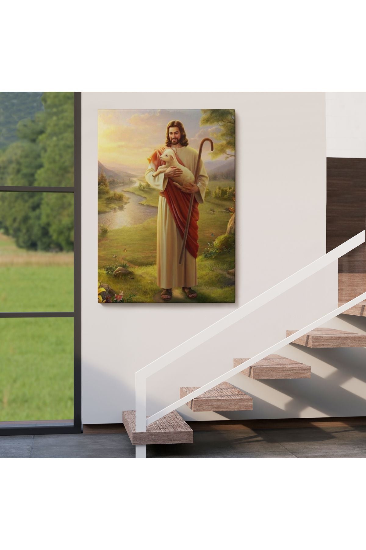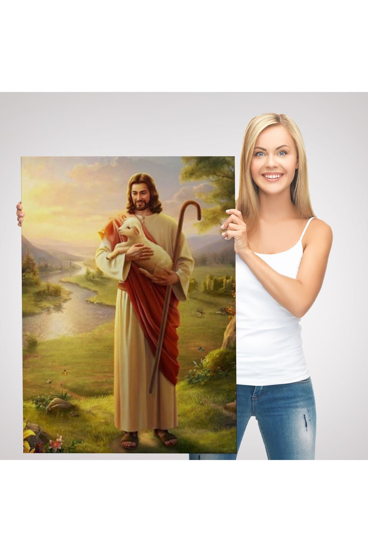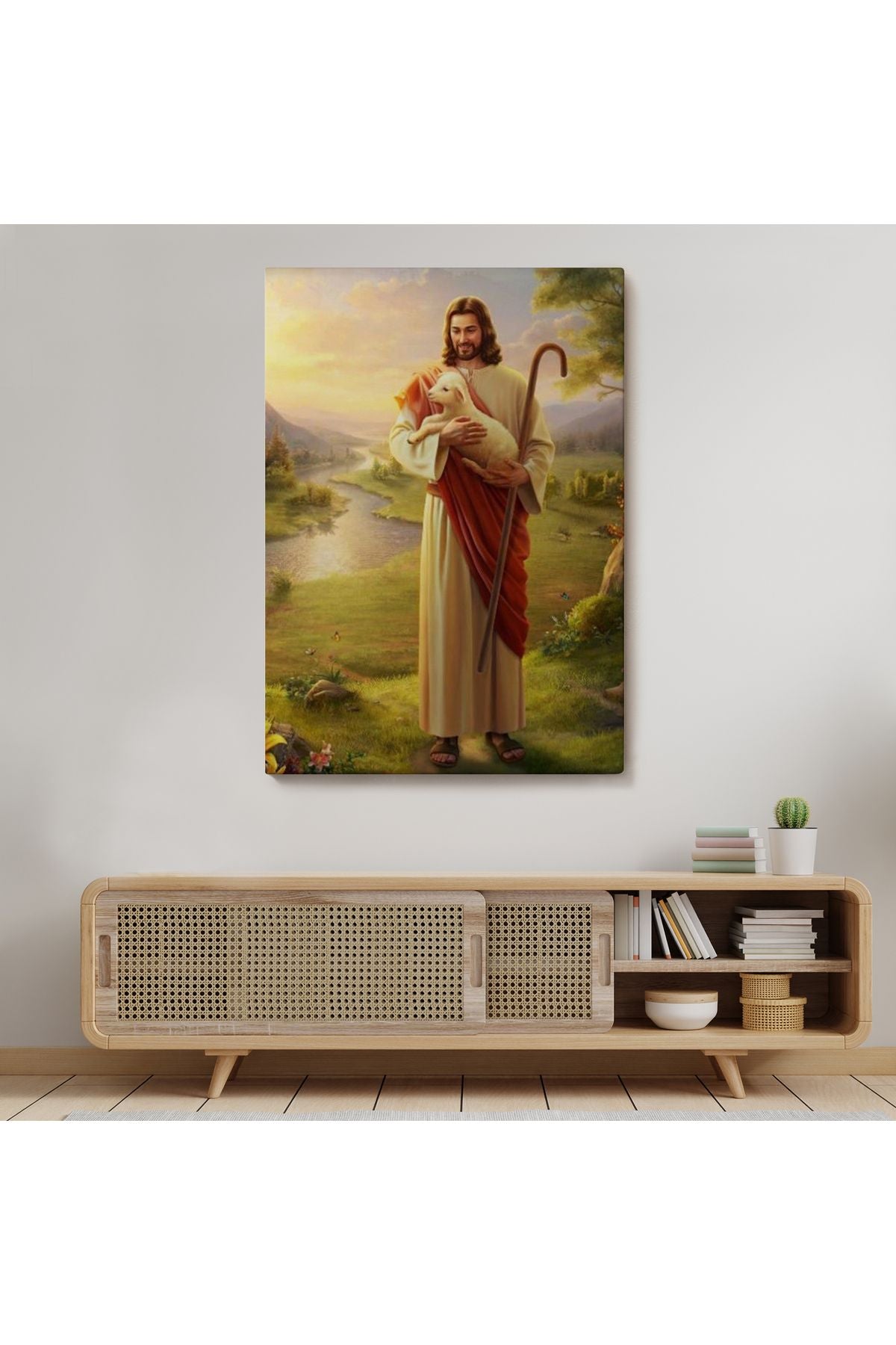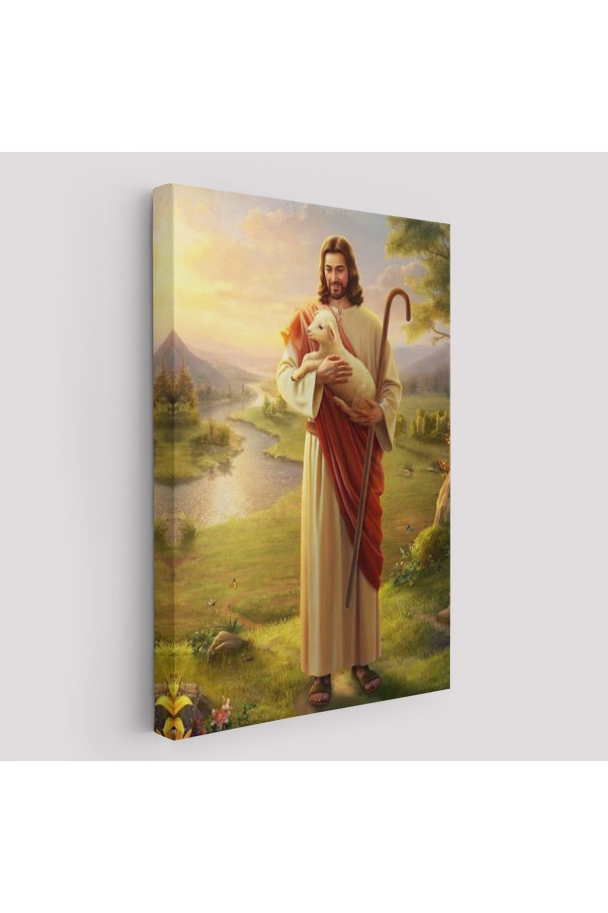 SZ KVS1-Dekoratif Duvar Tablosu-Kucağındaki Kuzu ile Hz İsa Kanvas Tablo 6064