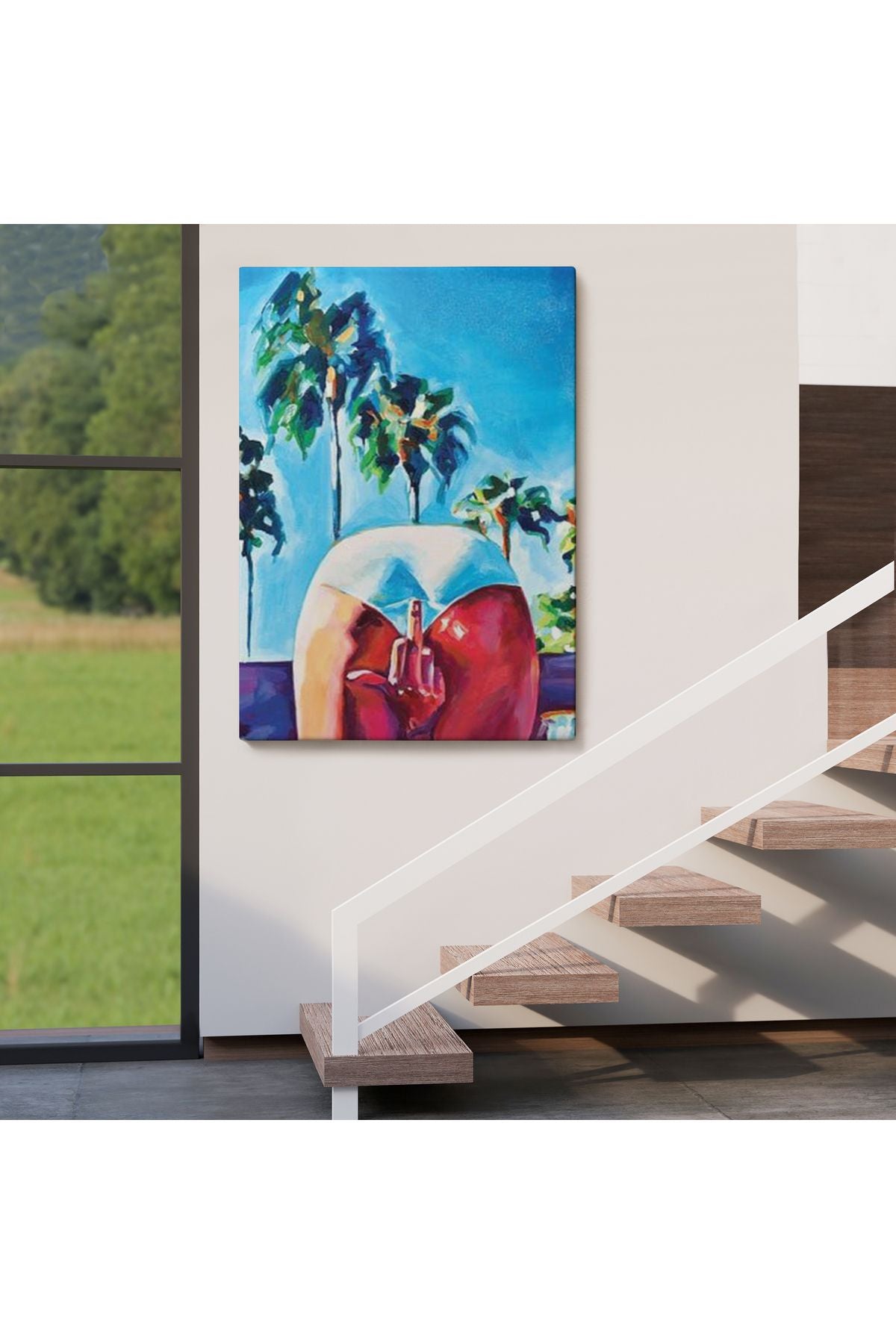 Bacaklarının Arasından Orta Parmak İşareti Yapan Kadın Tablosu-6082