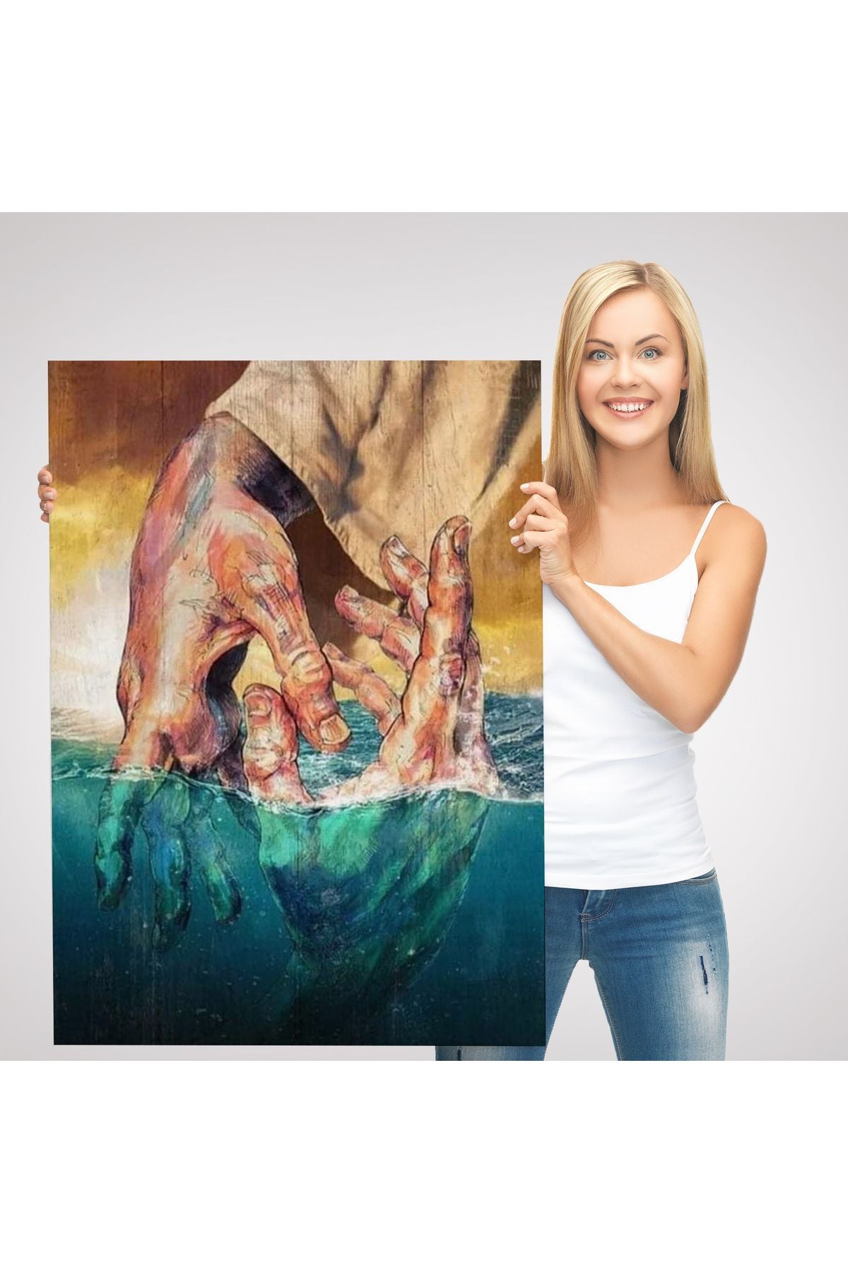İsa'nın Yardımı Hrıstiyan Hediyesi Dekoratif Duvar Tablosu-6116