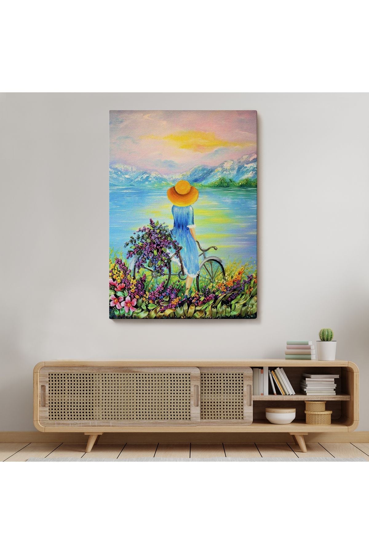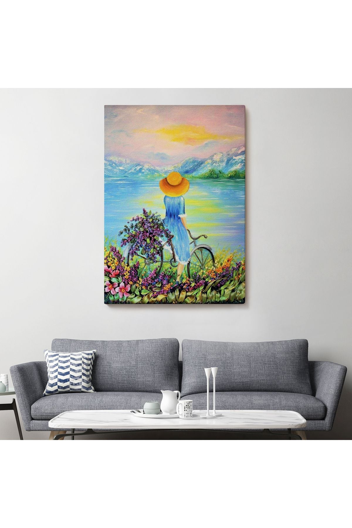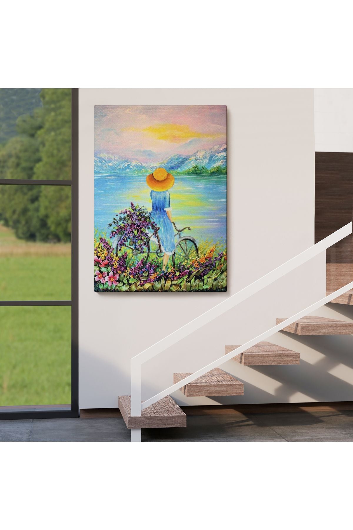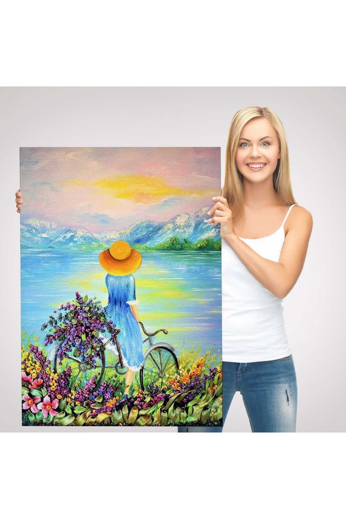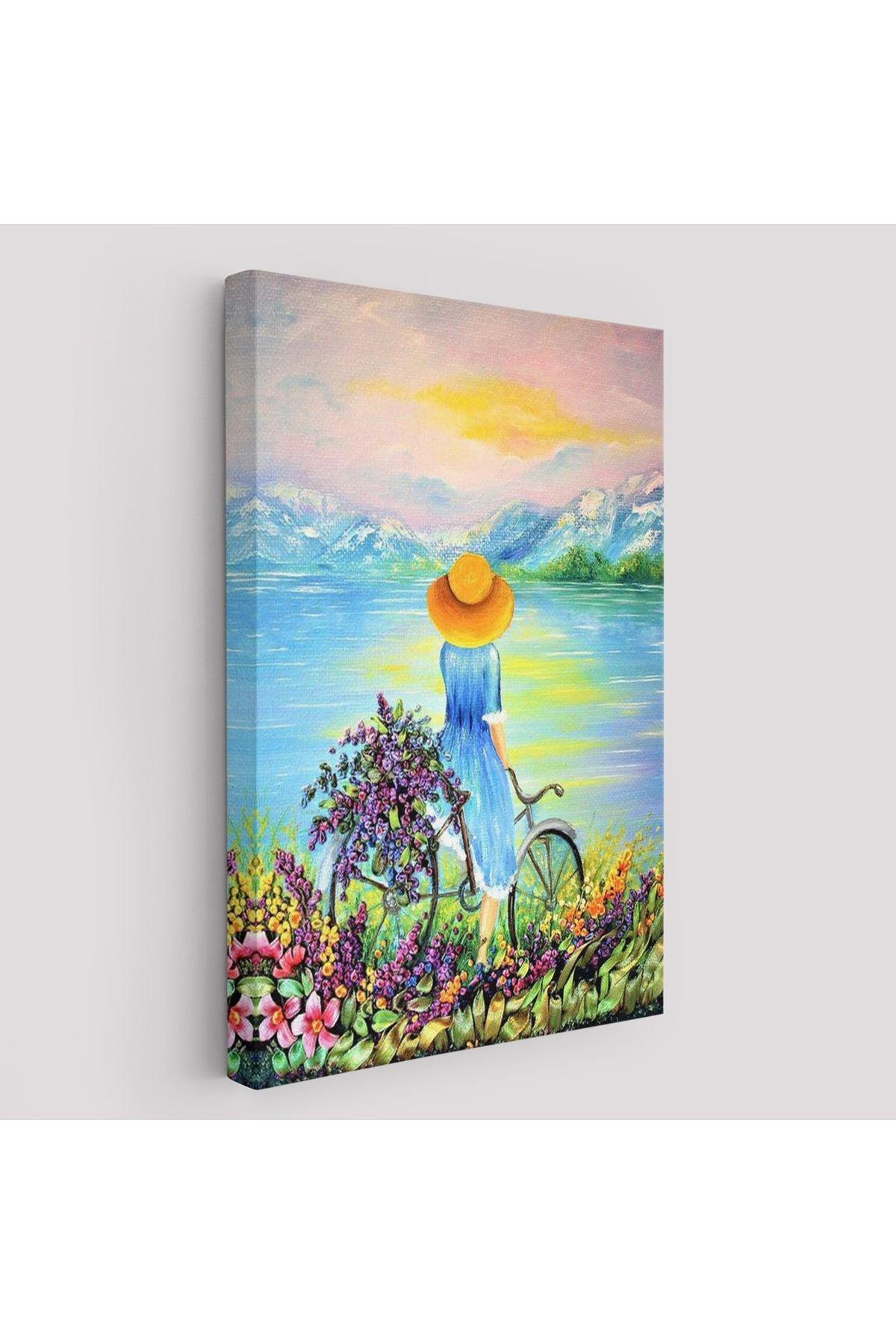 Göl Kenarındaki Bisikletli Kız Dekoratif Duvar Tablosu-6135