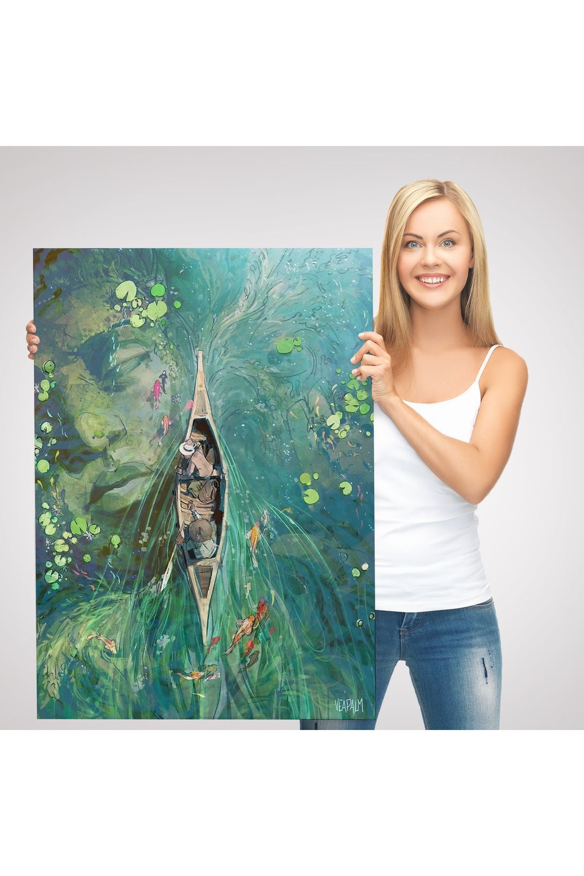 Lilyumların Altında Kano ile Gezen Duvar Tablosu-6163