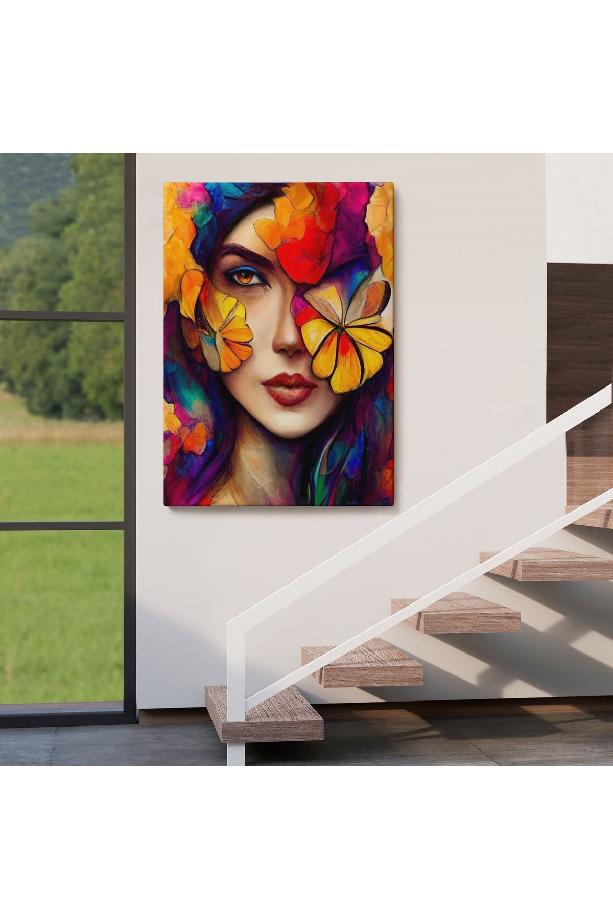 Çiçek ve Kadın Temalı Dekoratif Duvar Tablosu-6192