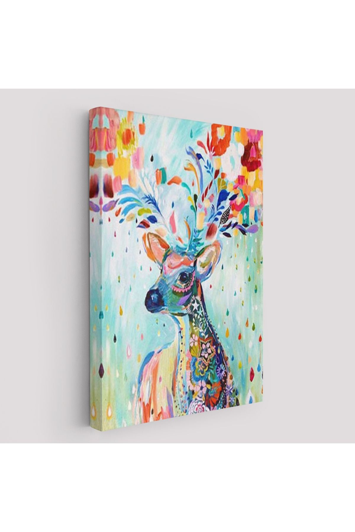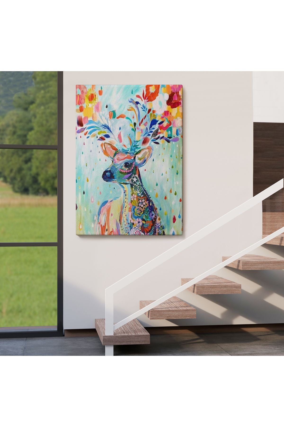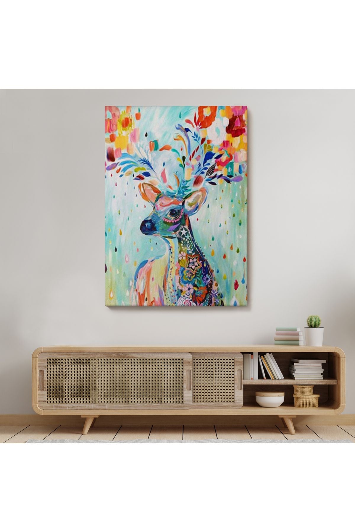 Renkli Çiçek Detaylı Geyik Dekoratif Duvar Tablosu-6196