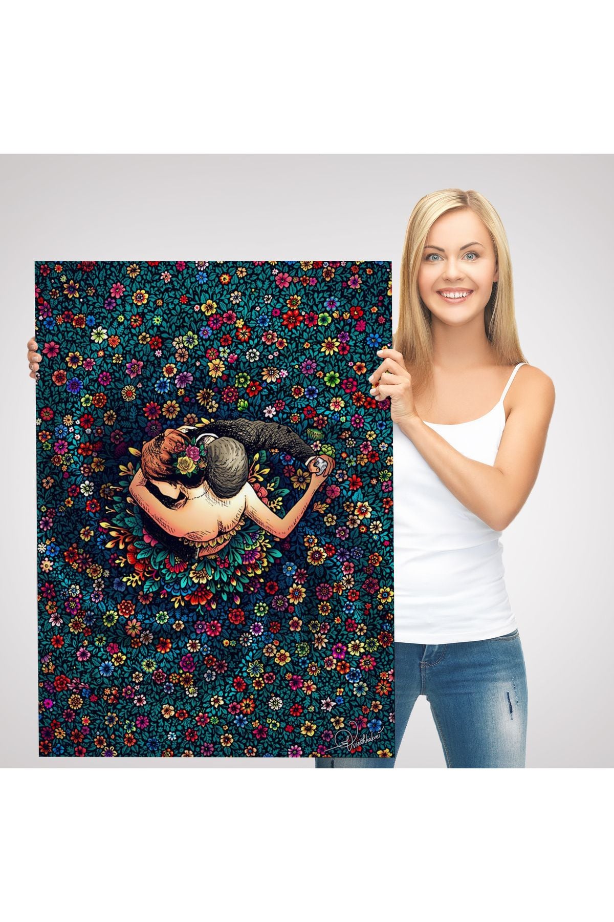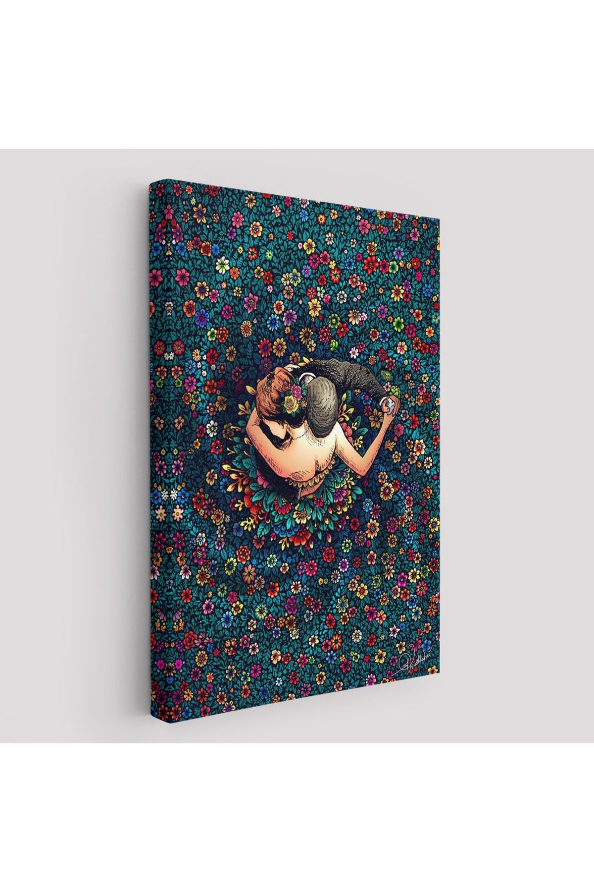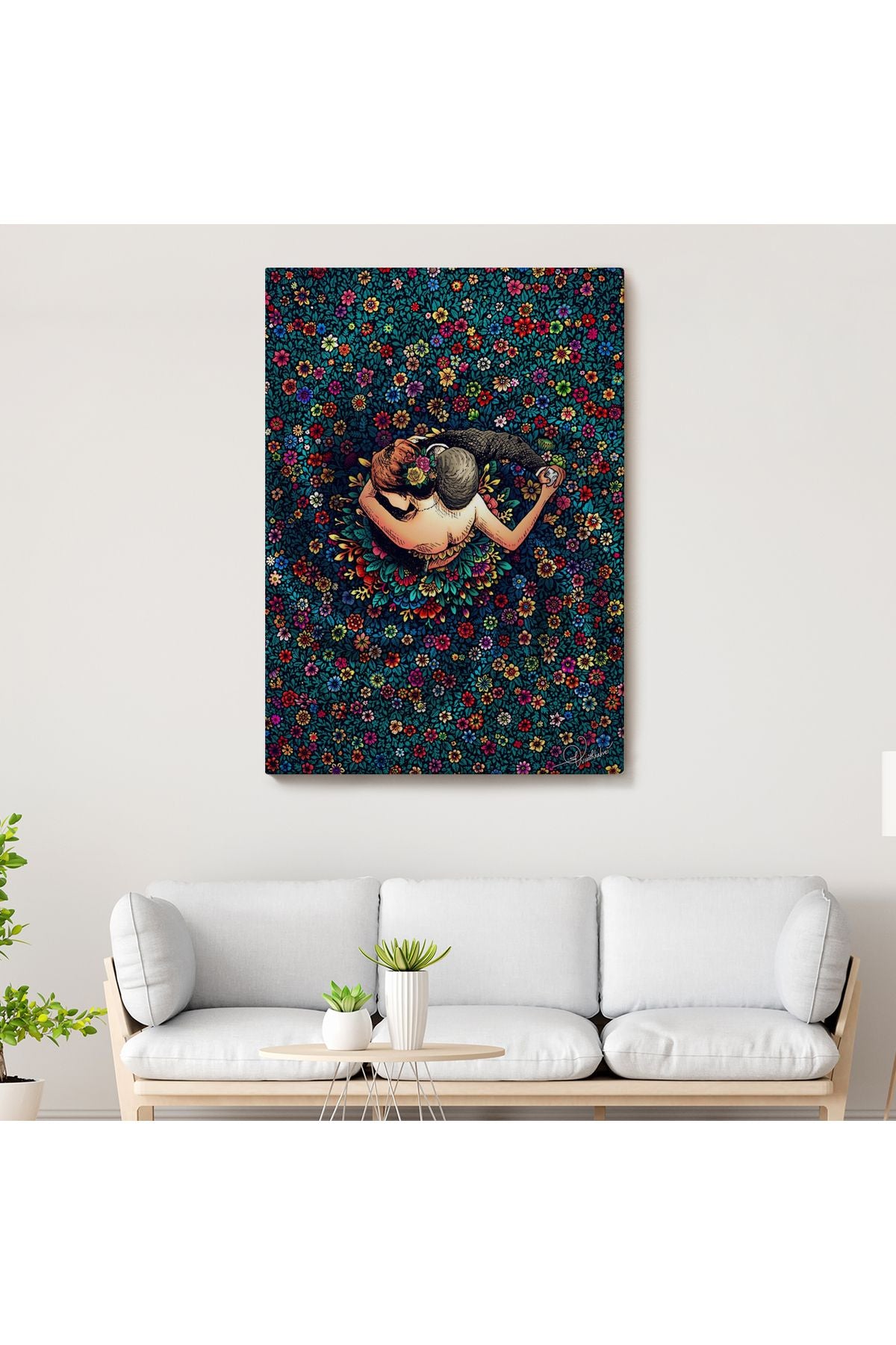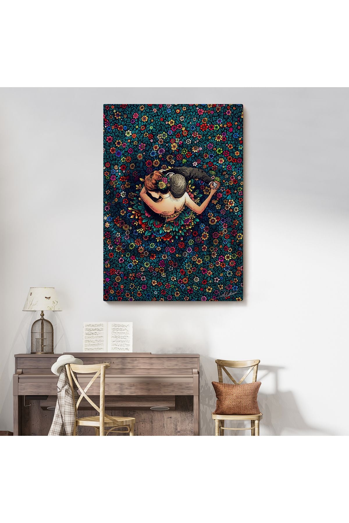 Renkli Çiçekler İçinde Dans Eden Sevgililer Duvar Tablosu-6200