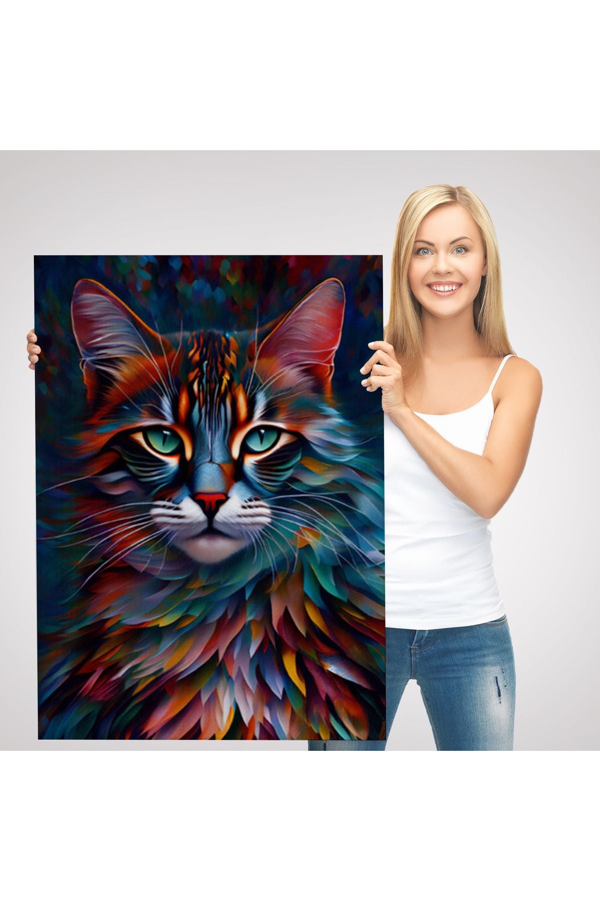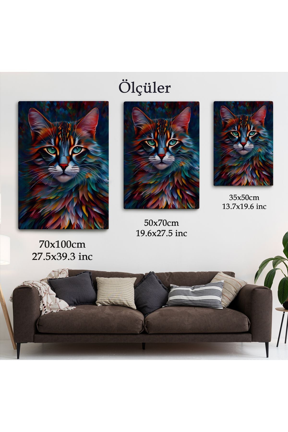 Renkli Karizmatik Kedi Dekoratif Duvar Tablosu-6225