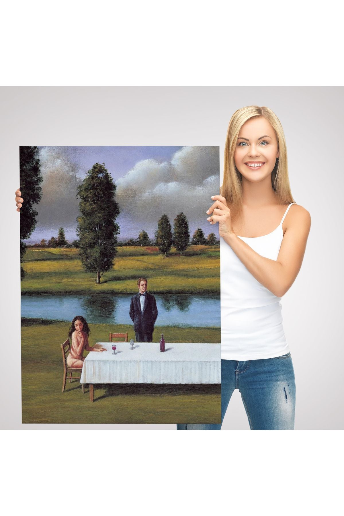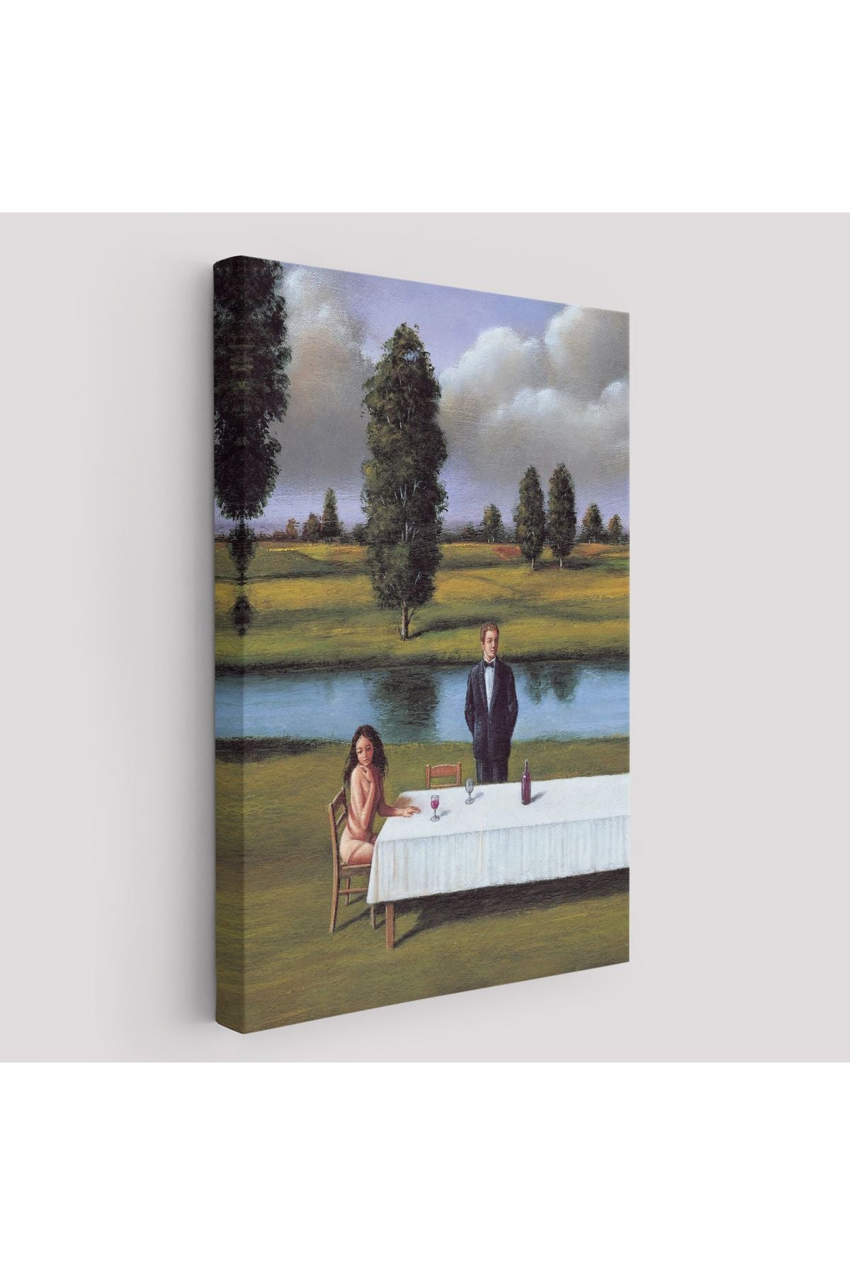 Dekoratif Kanvas Tablo, Duvar Tablosu-Nehir Kenarı ve Sevgilisini Bekleyen Kadın 6258