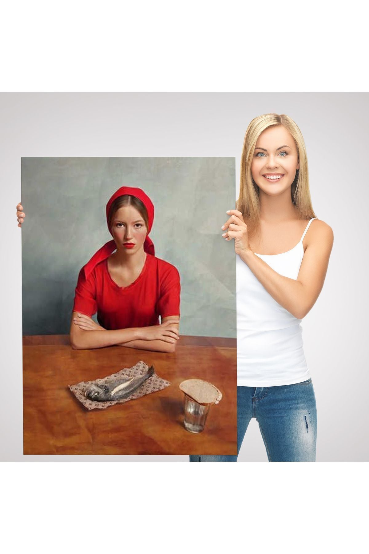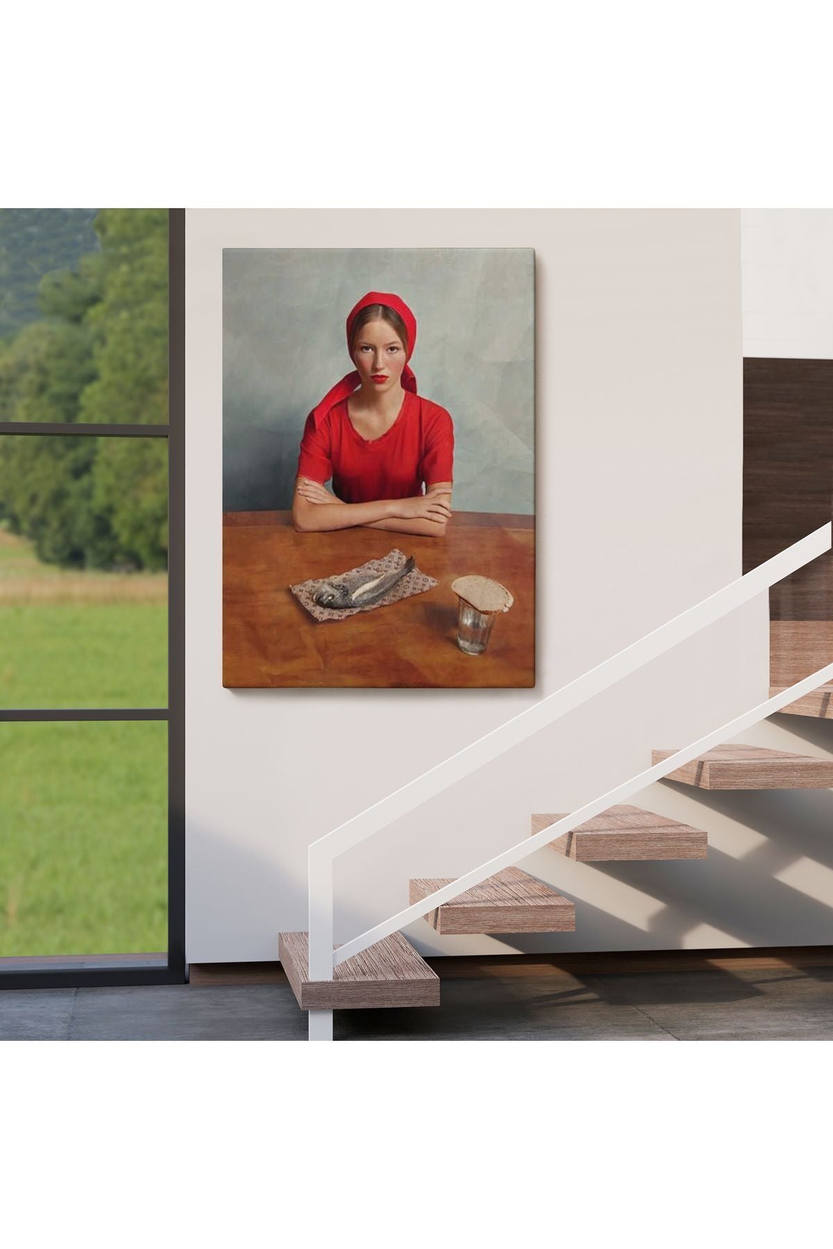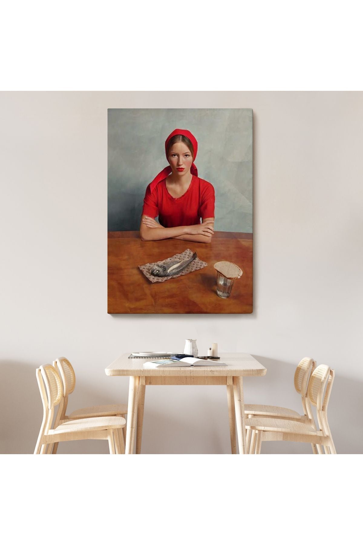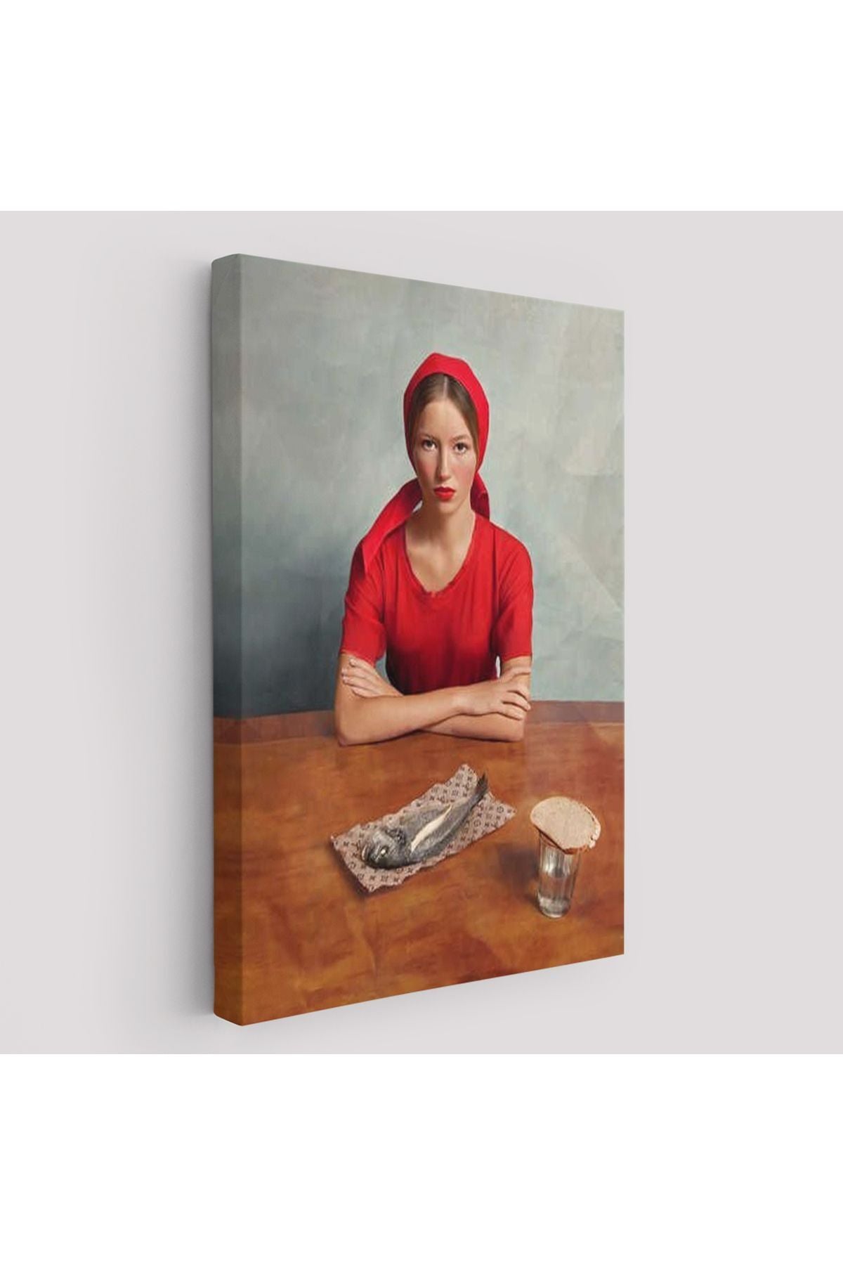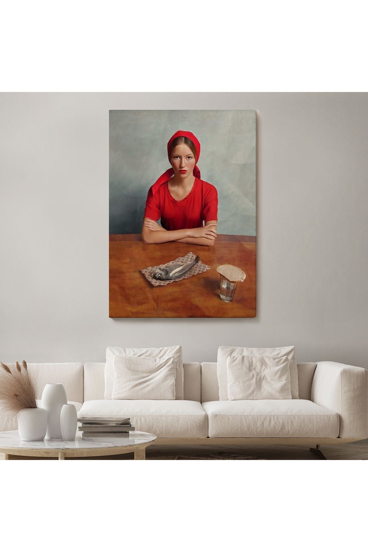 Dekoratif Kanvas Tablo-Balık ve Kırmızı Kıyafetli Kız Duvar Tablosu 6264
