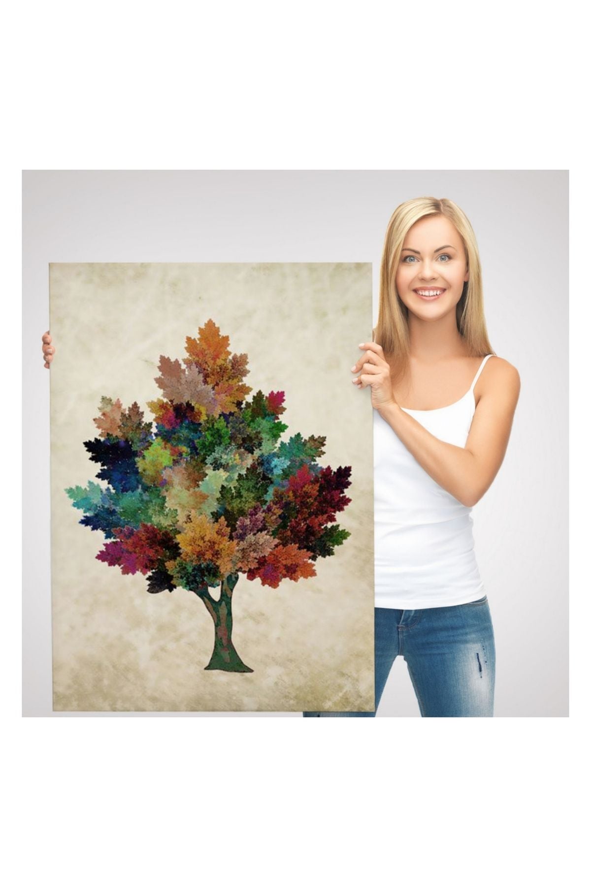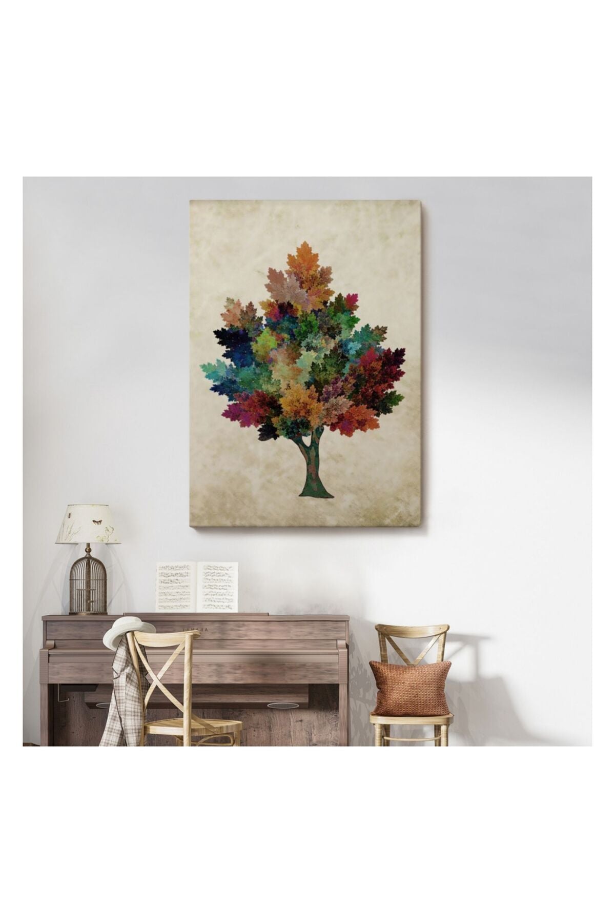 Kanvas Tablo, Duvar Dekoru, Renkli Çınar Ağacı Doğa Temalı 6267 BUNGKNV