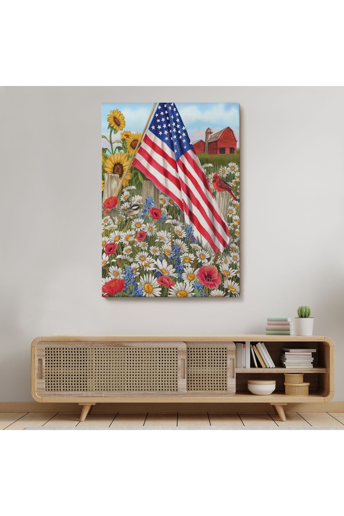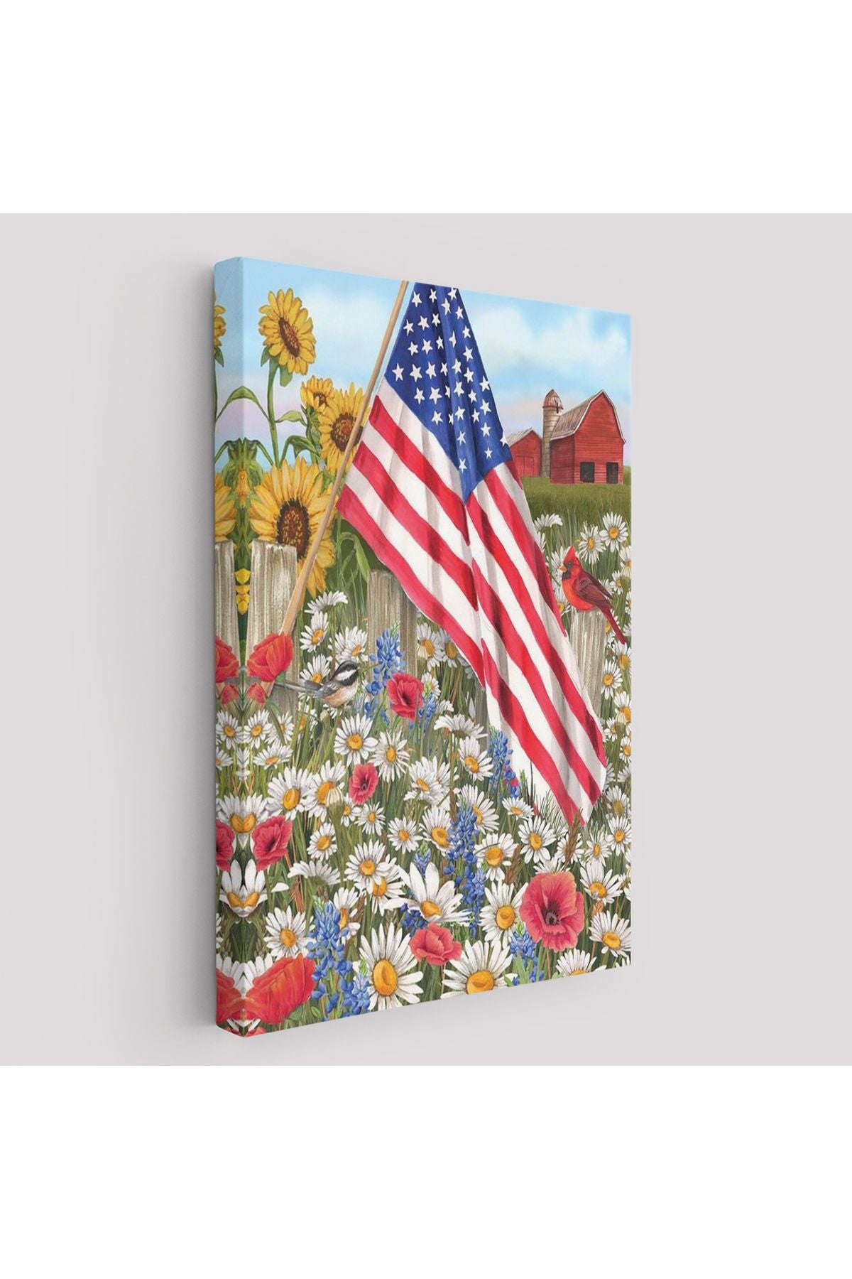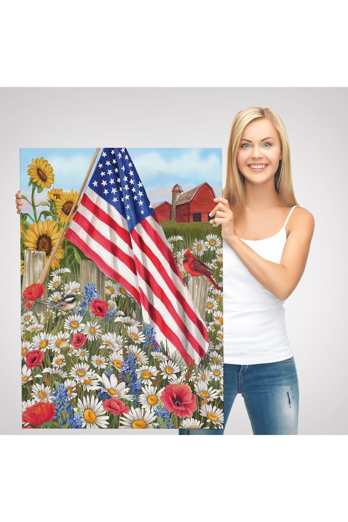 Güzel Bahçe İçierisindeki Amerka Bayrağı Duvar Tablosu-6278
