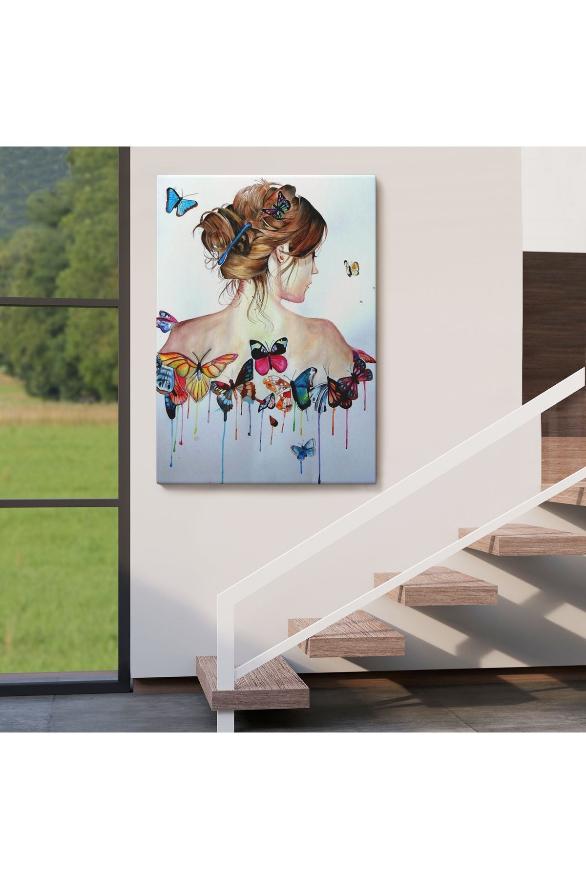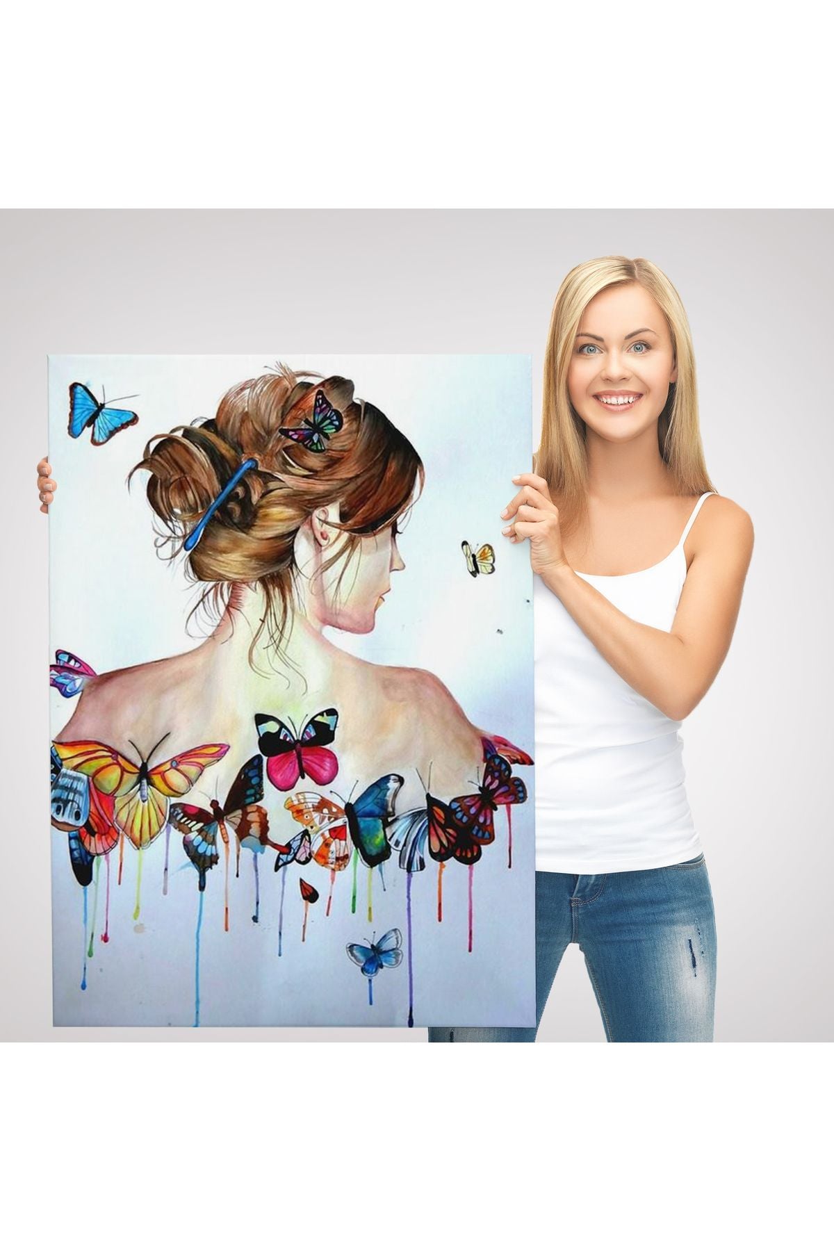 Kanvas Tablo, Duvar Dekoru, Güzel Kadın ve Kelebek Detayları 6330 BUNGKNV