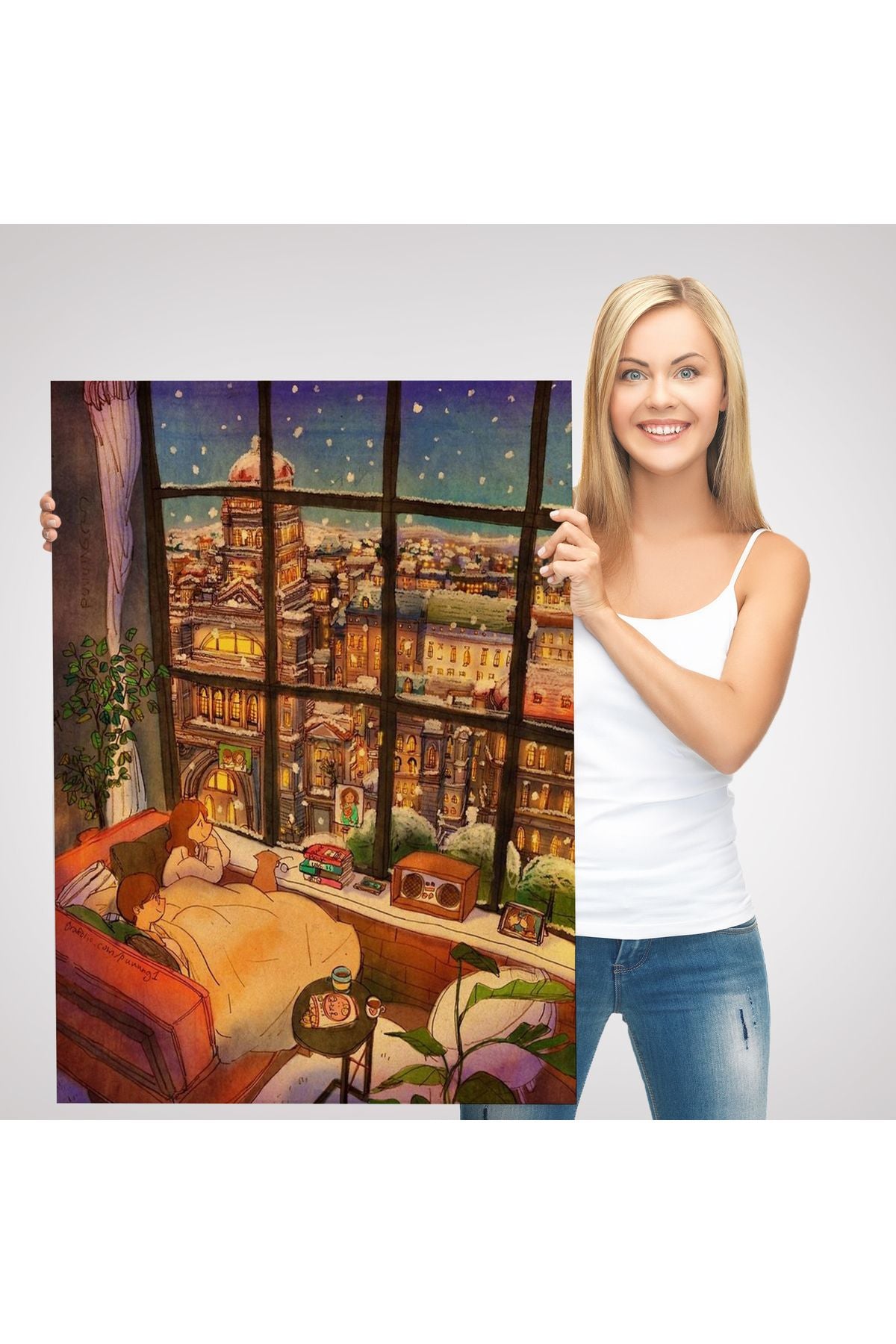mstseri001 Cam Önünde Kar Keyfi Duvar Tablosu-6336