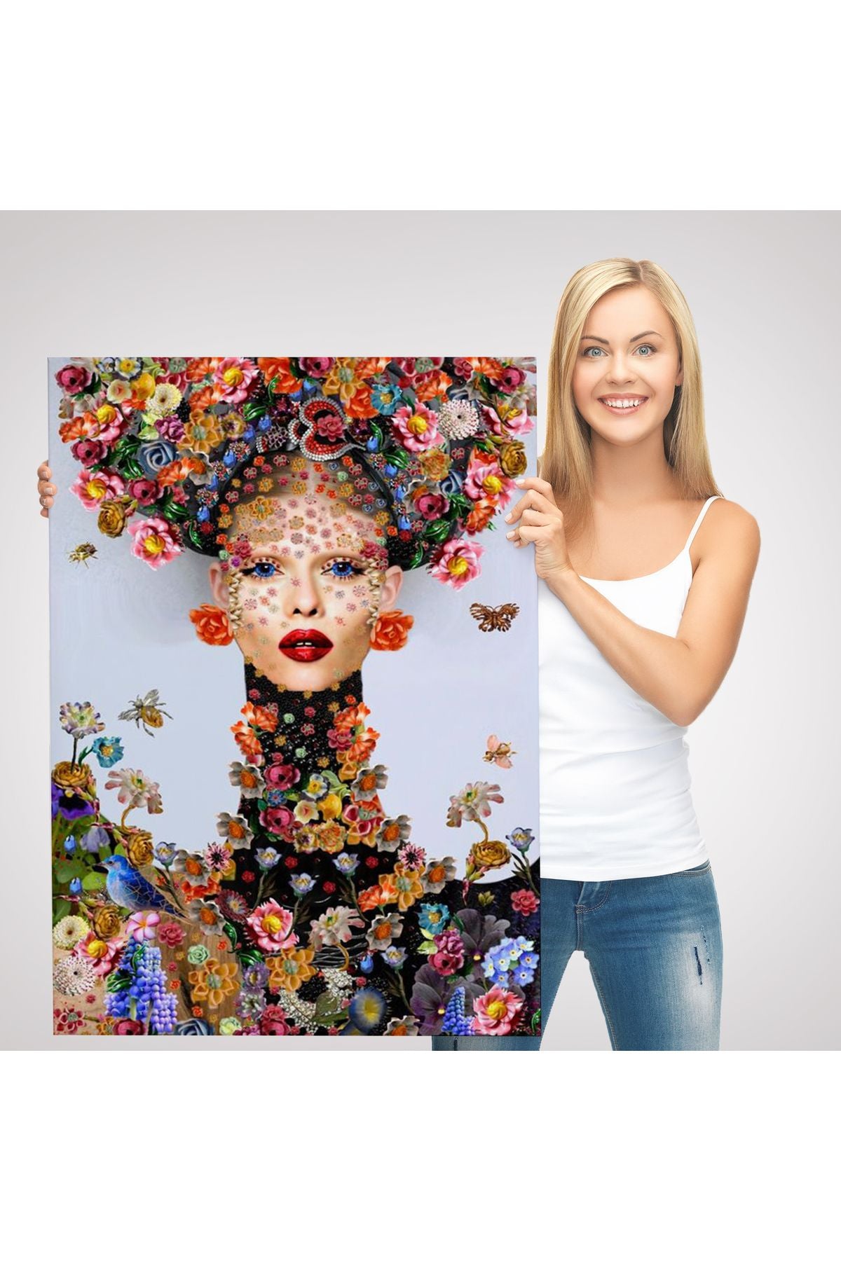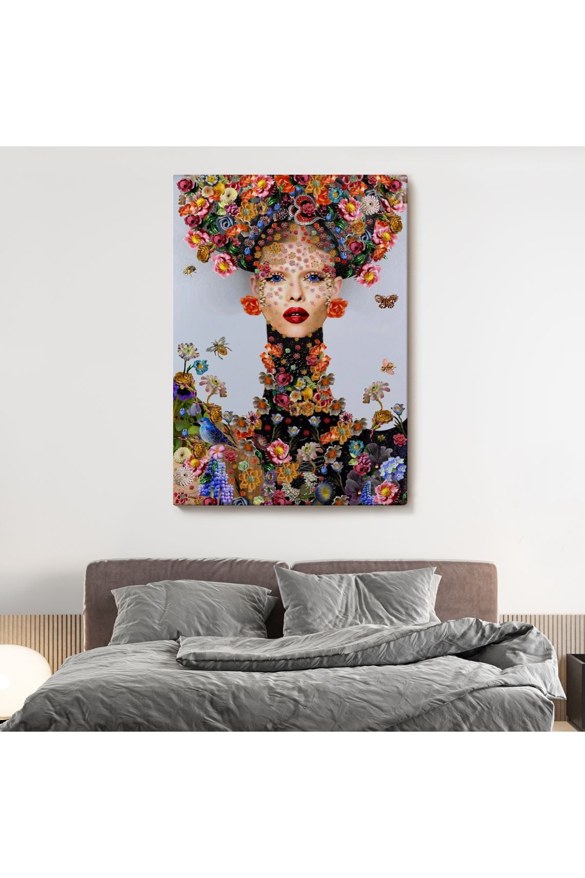 Çiçek ve Kadın Temalı Dekoratif Duvar Tablosu-6338