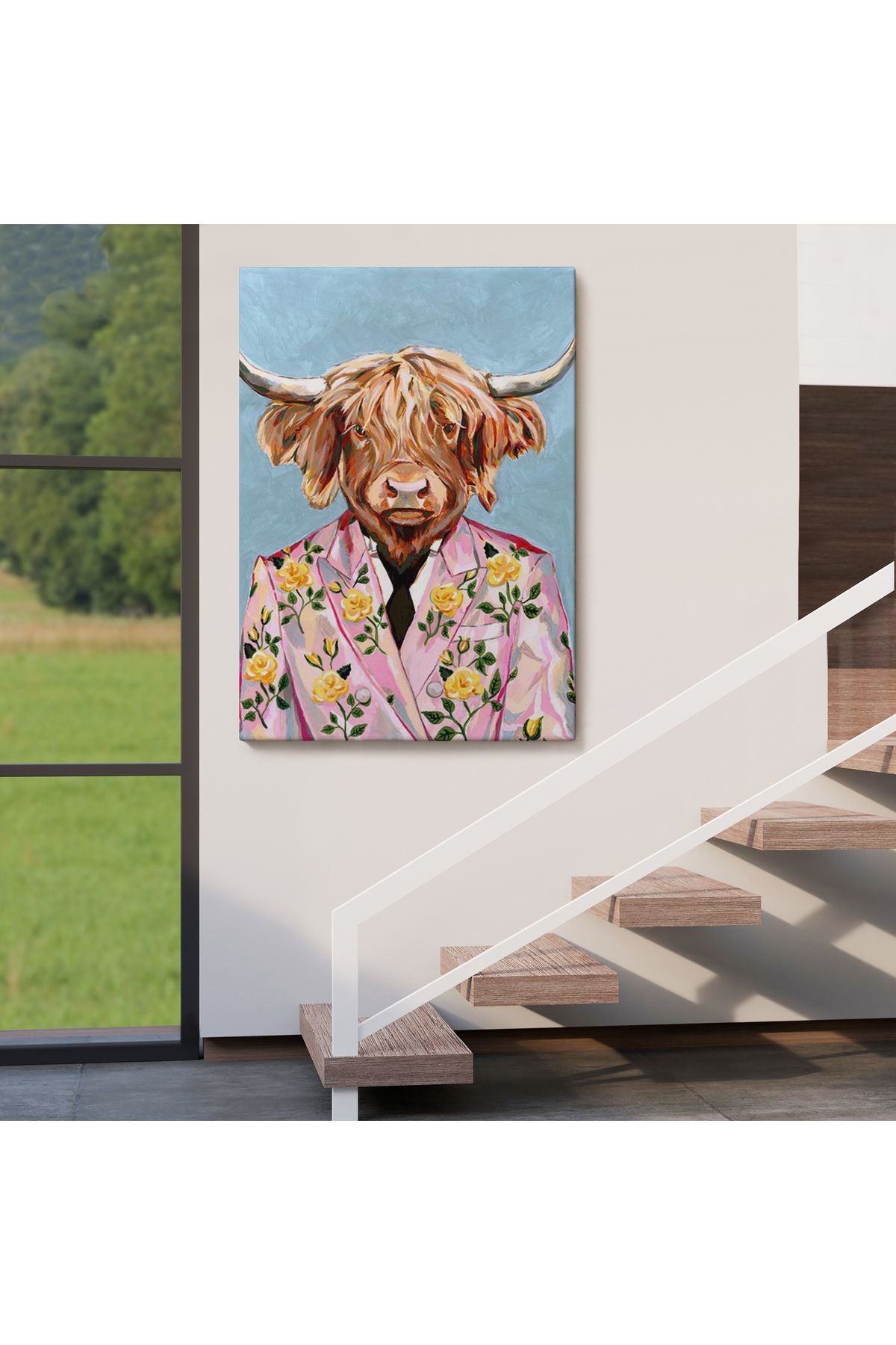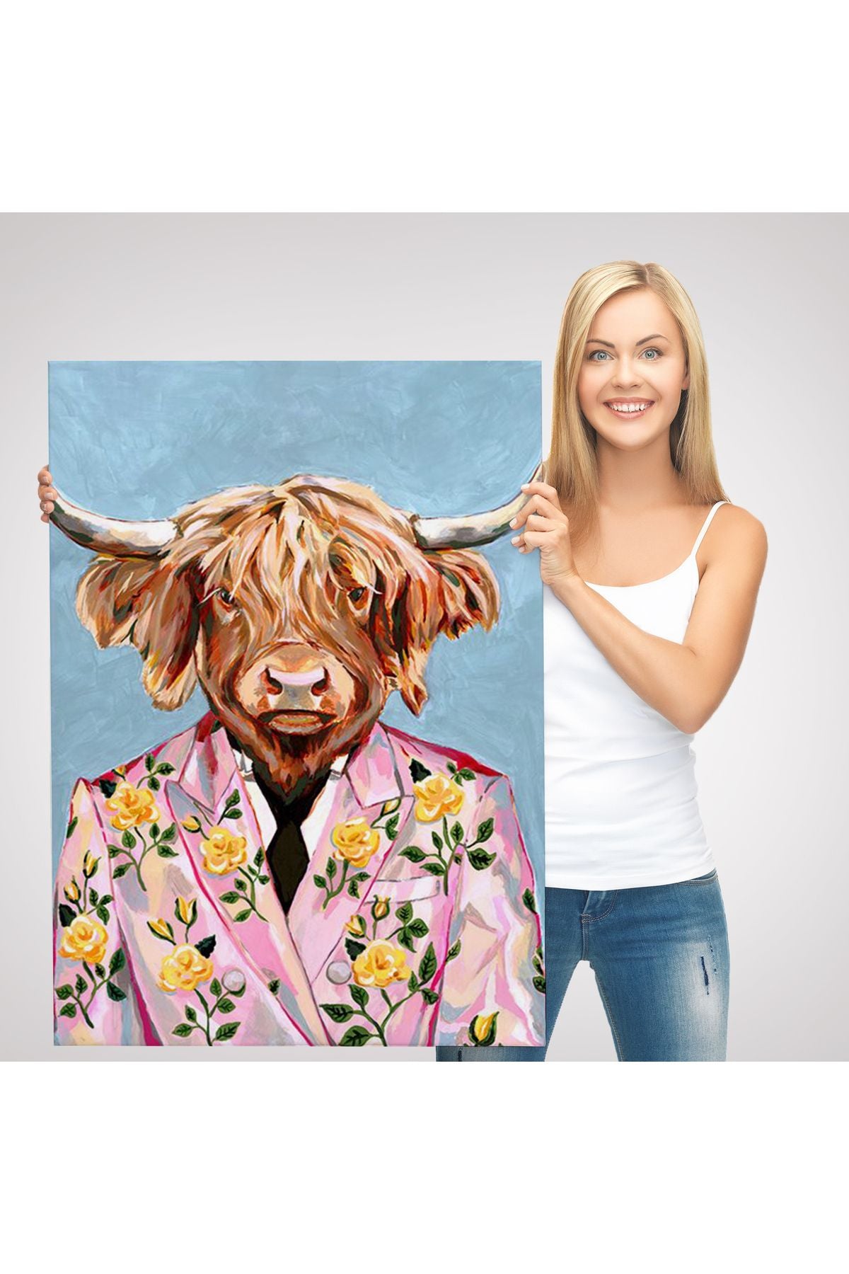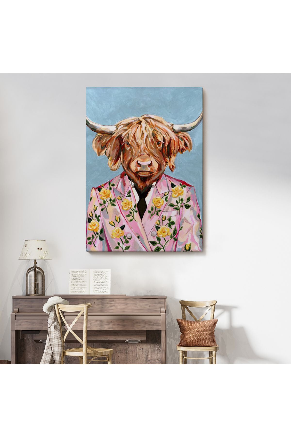 HG Pembe Ceketli Boğa Duvar Tablosu-6350