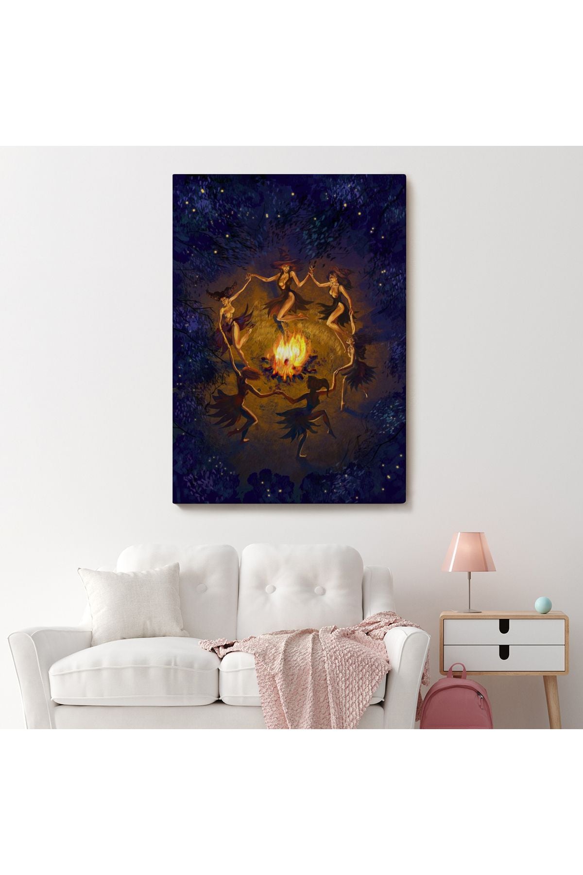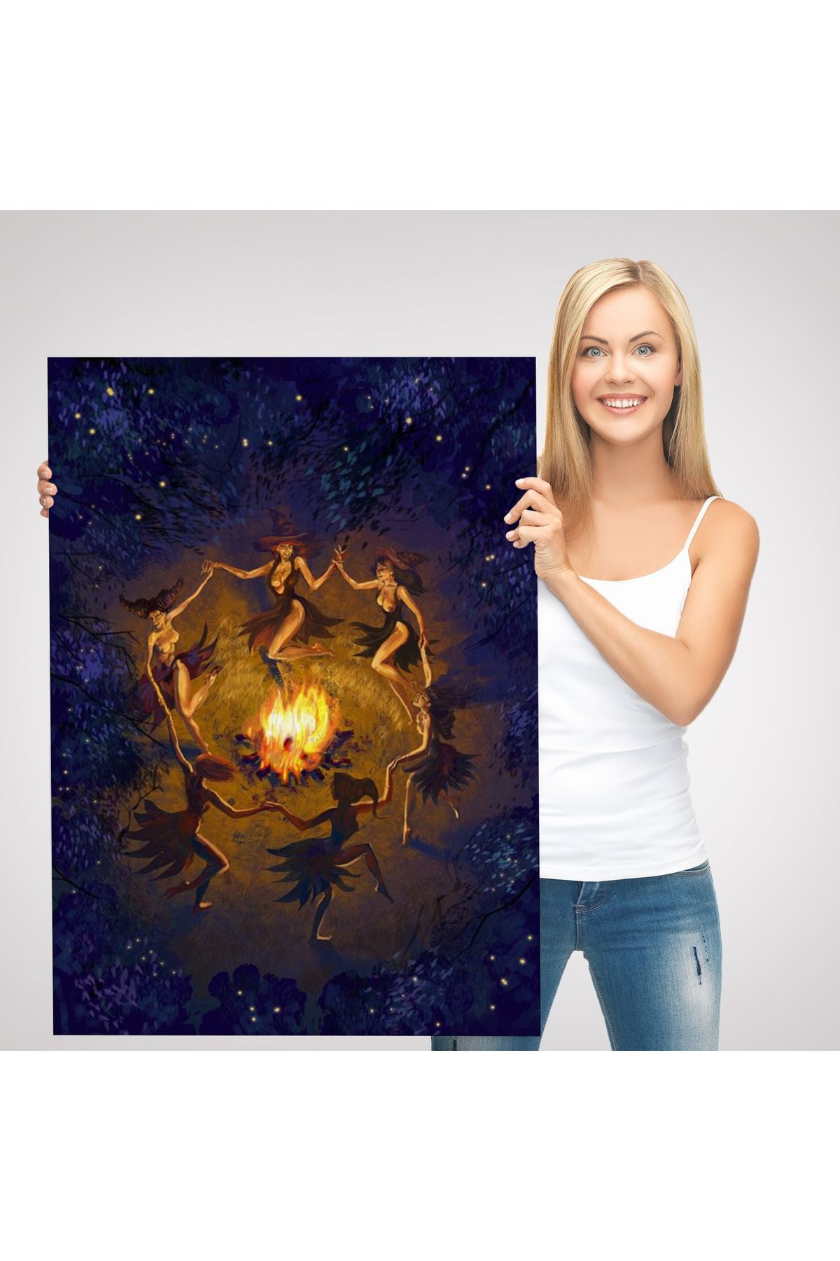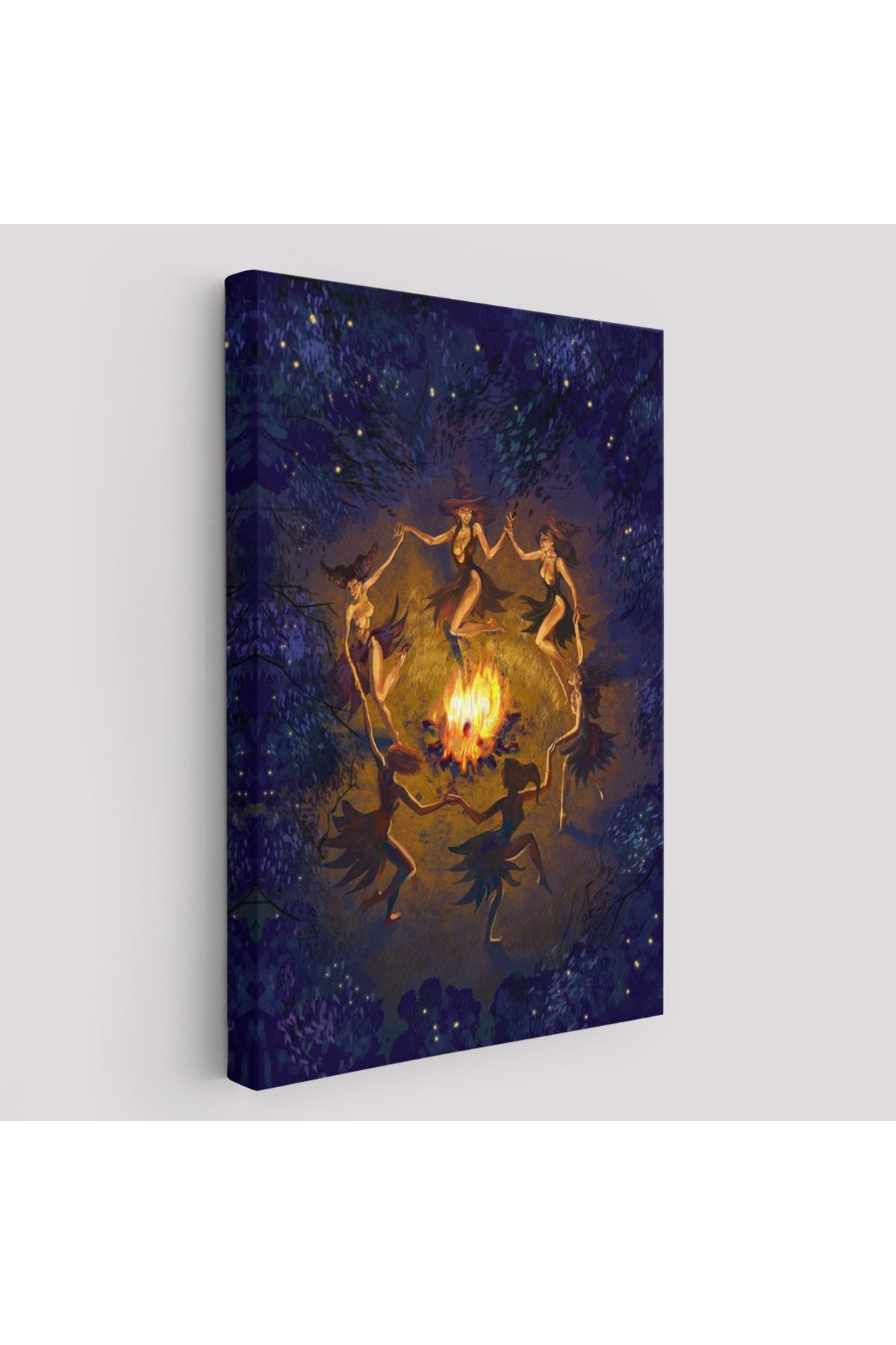 Şabat Ayini Yapan Cadıların Ateş Etrafındaki Dans Tablosu-6354