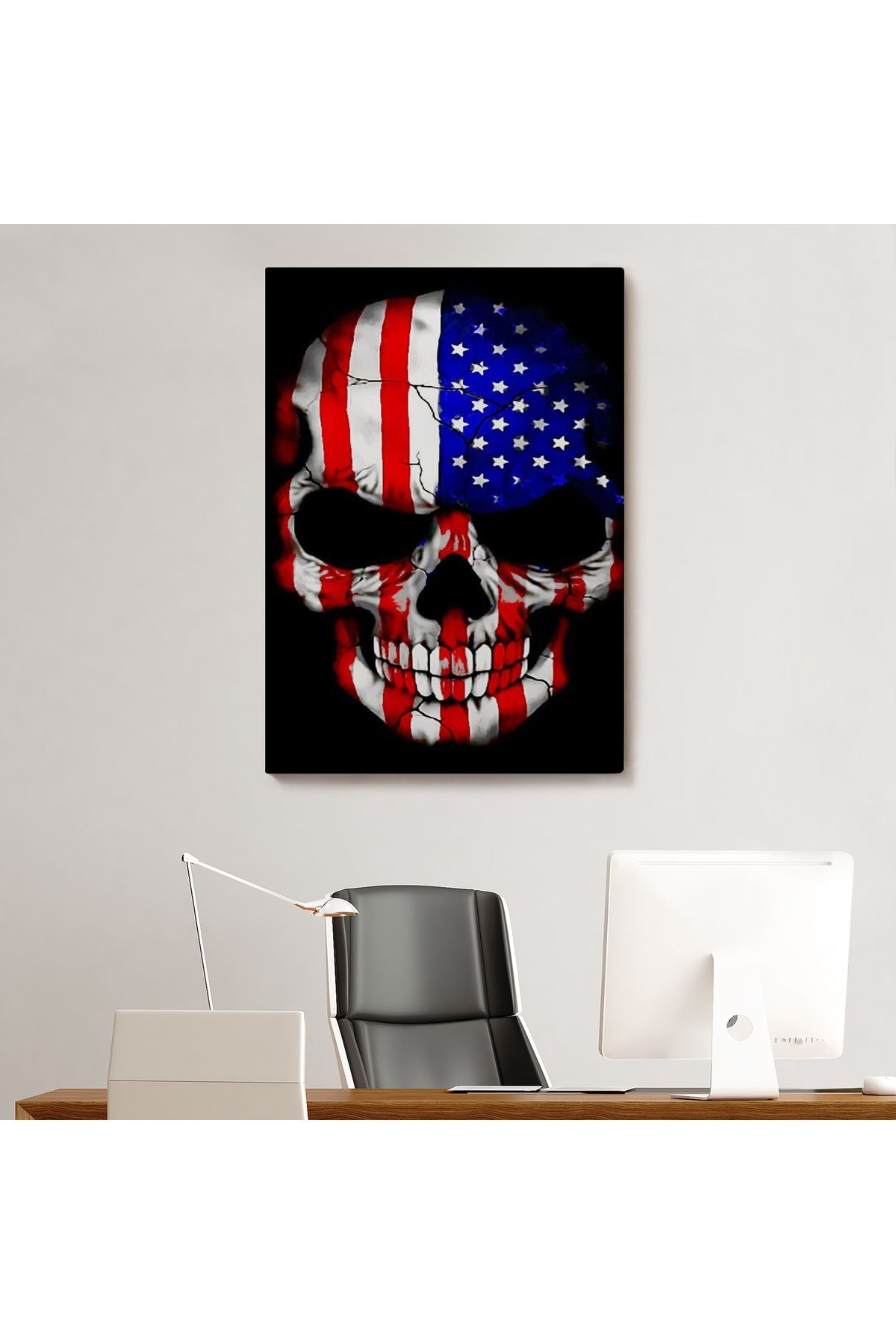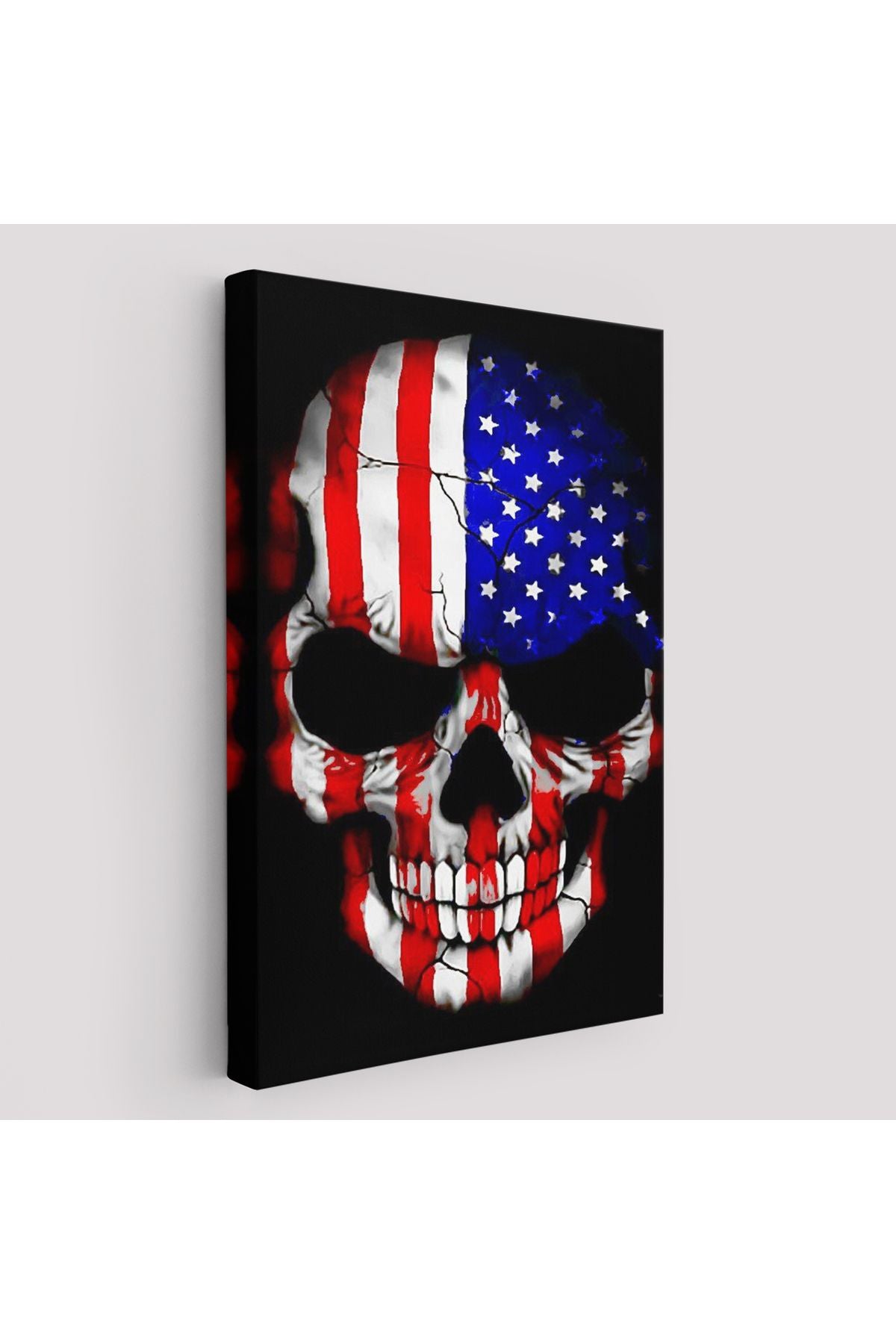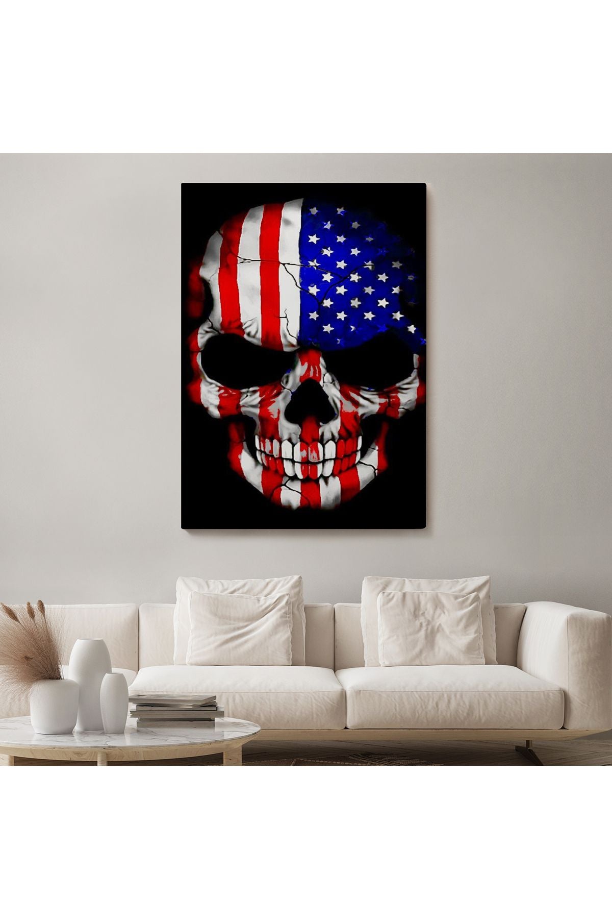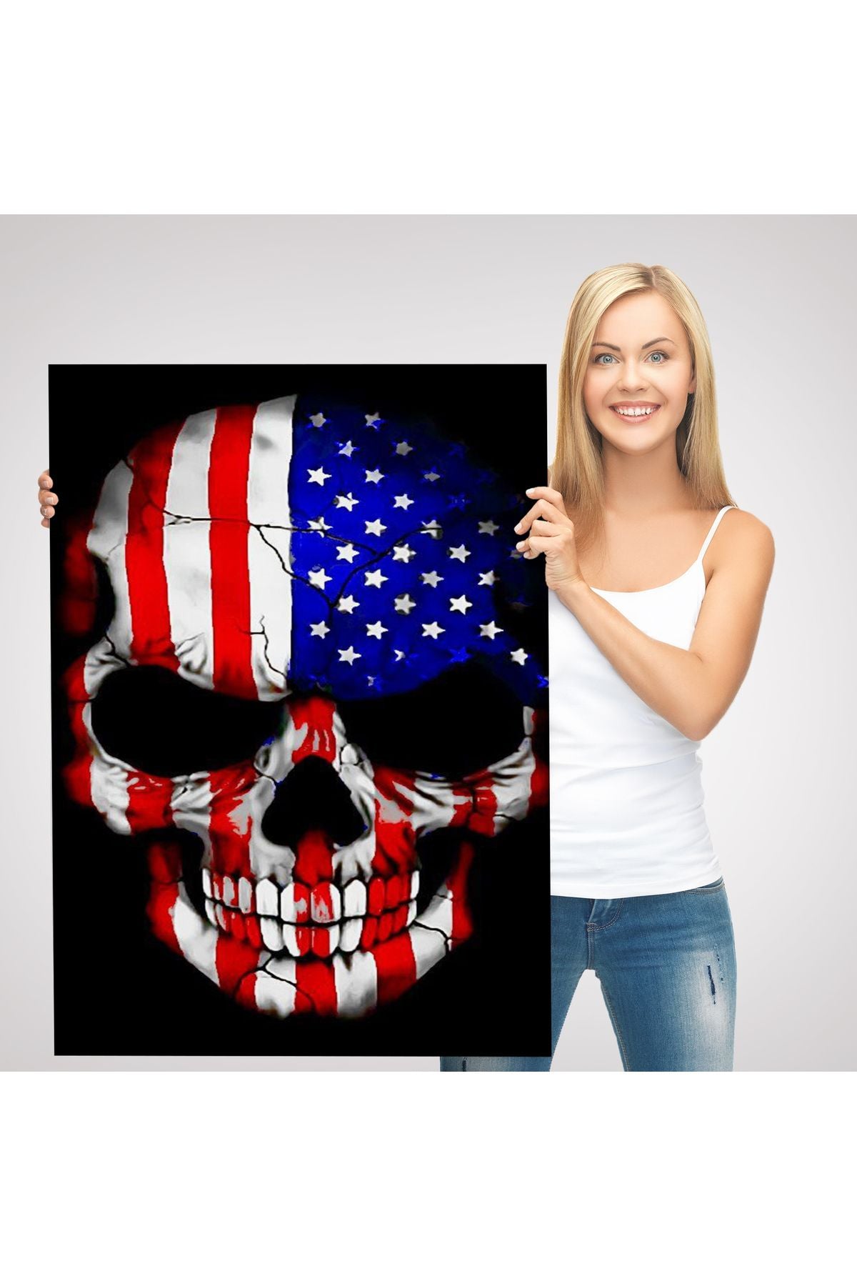 Amerika Bayrağı ve Kurukafa Dekoratif Duvar Tablosu-6356