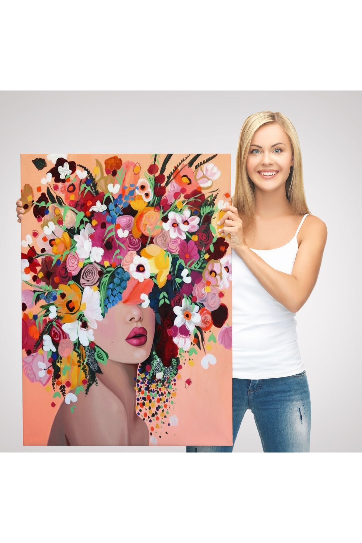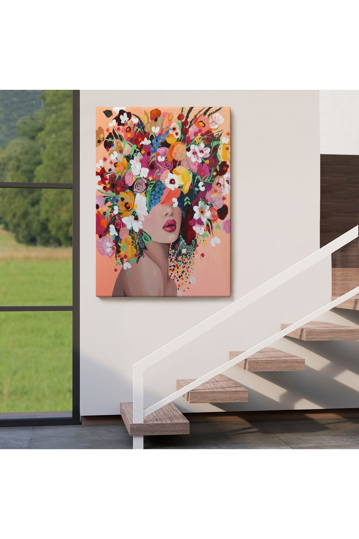 Çiçek Saçlı Kadın Dekoratif Kanvas Duvar Tablosu -6373