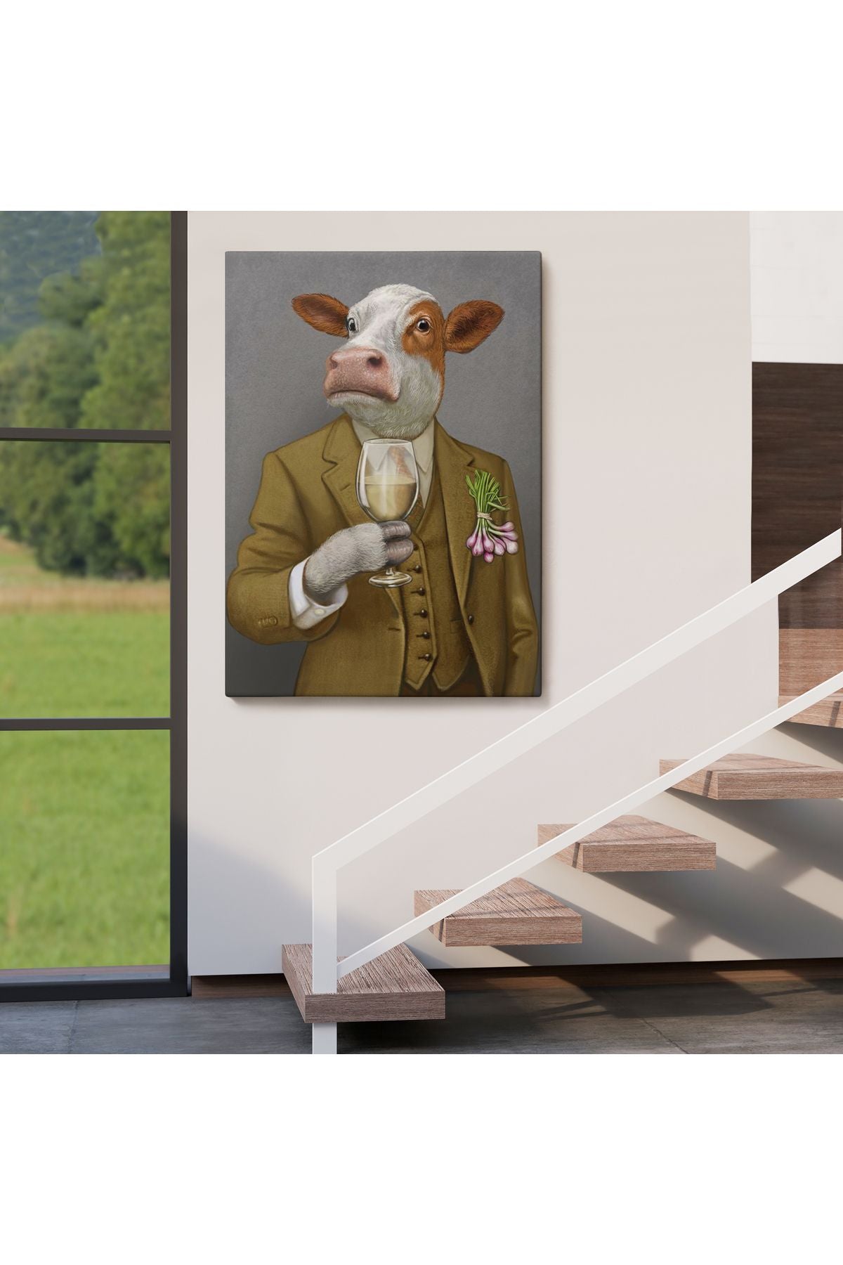 İnsan Kıyafetli Dana Dekoratif Duvar Tablosu -6375