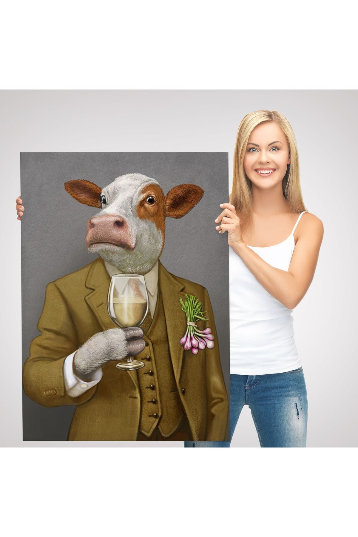 İnsan Kıyafetli Dana Dekoratif Duvar Tablosu -6375
