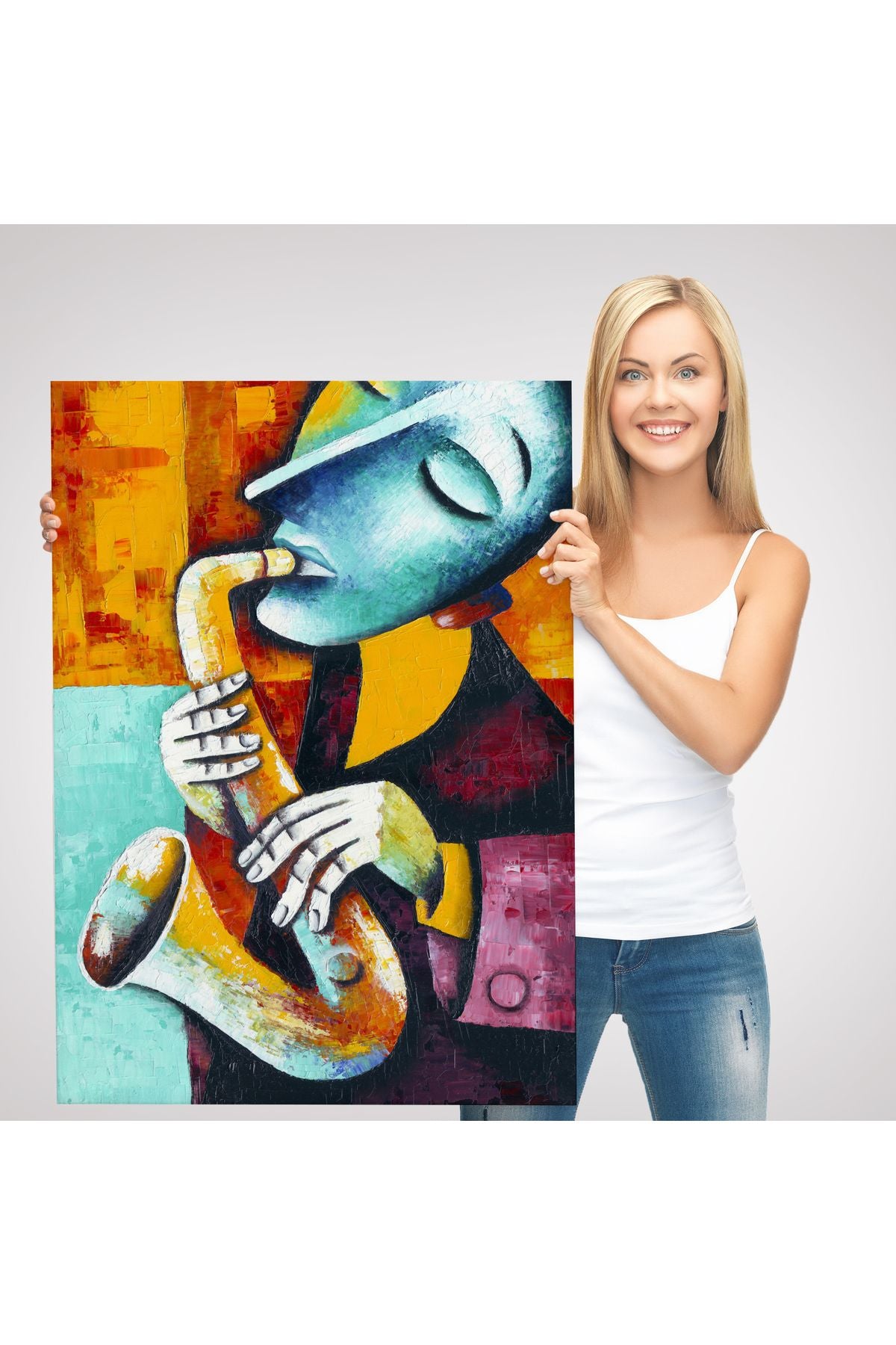 Saksafon Çalan Sürreal Müsizyen Dekoratif Duvar Tablosu-6423