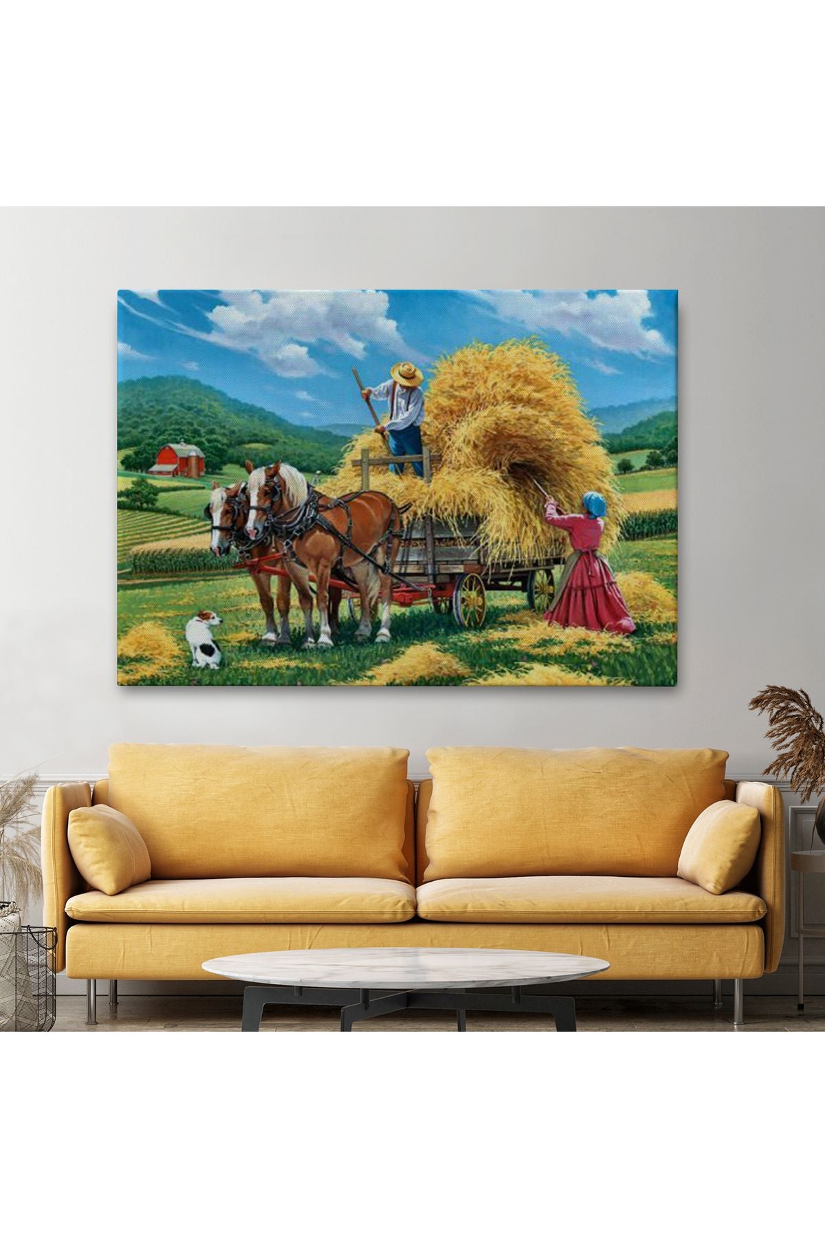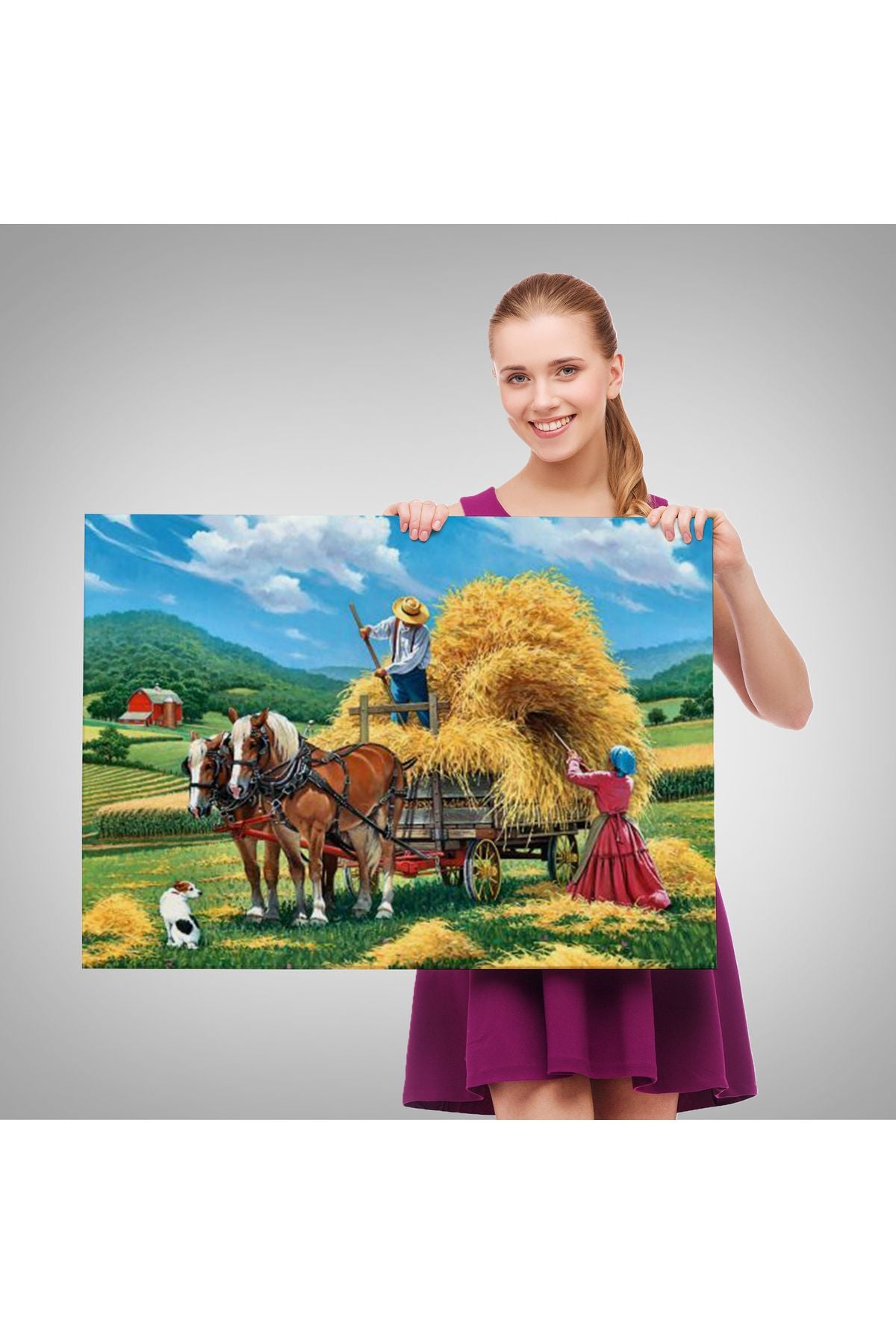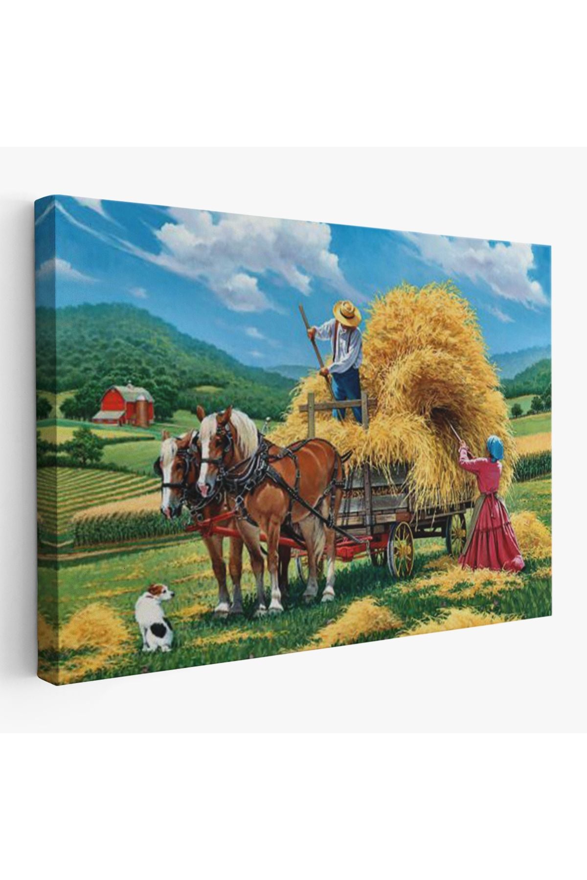 At Arabasına Saman Yükleyen Köylüler Duvar Tablosu-6531