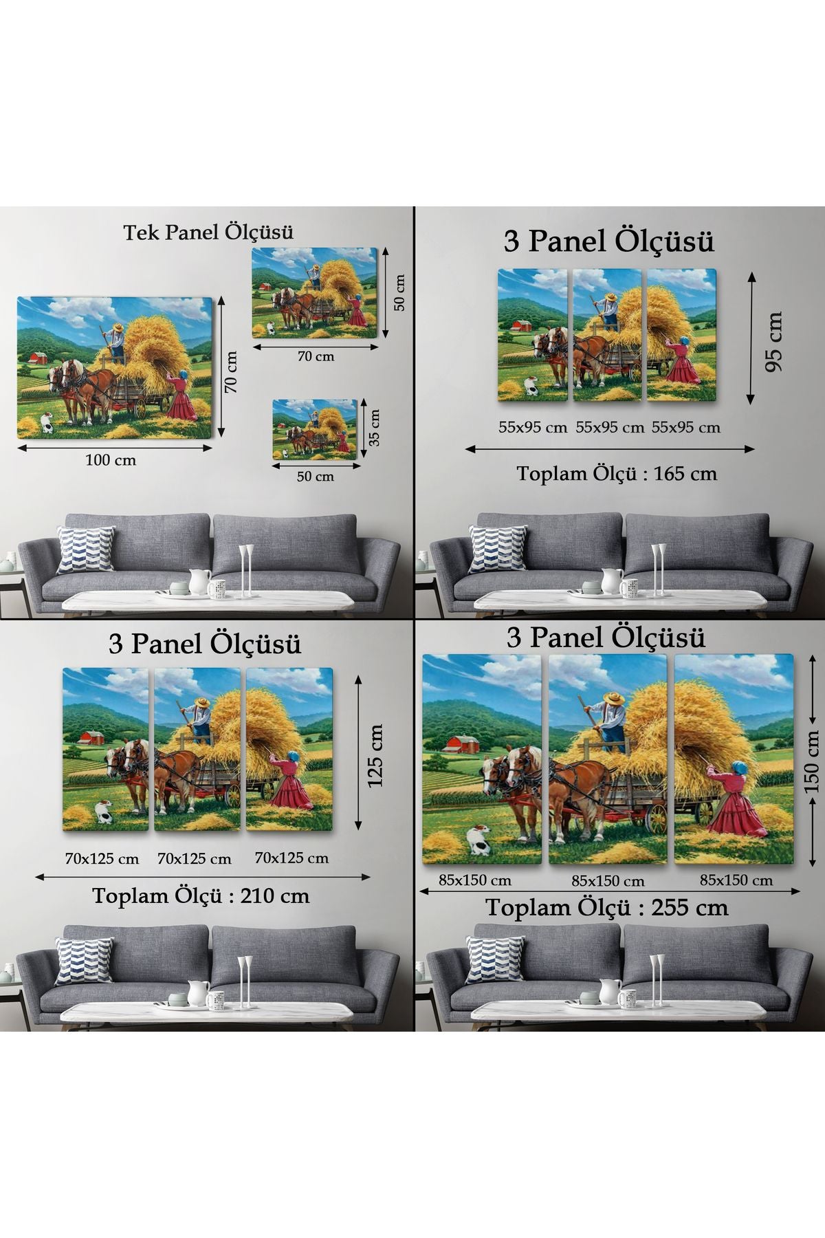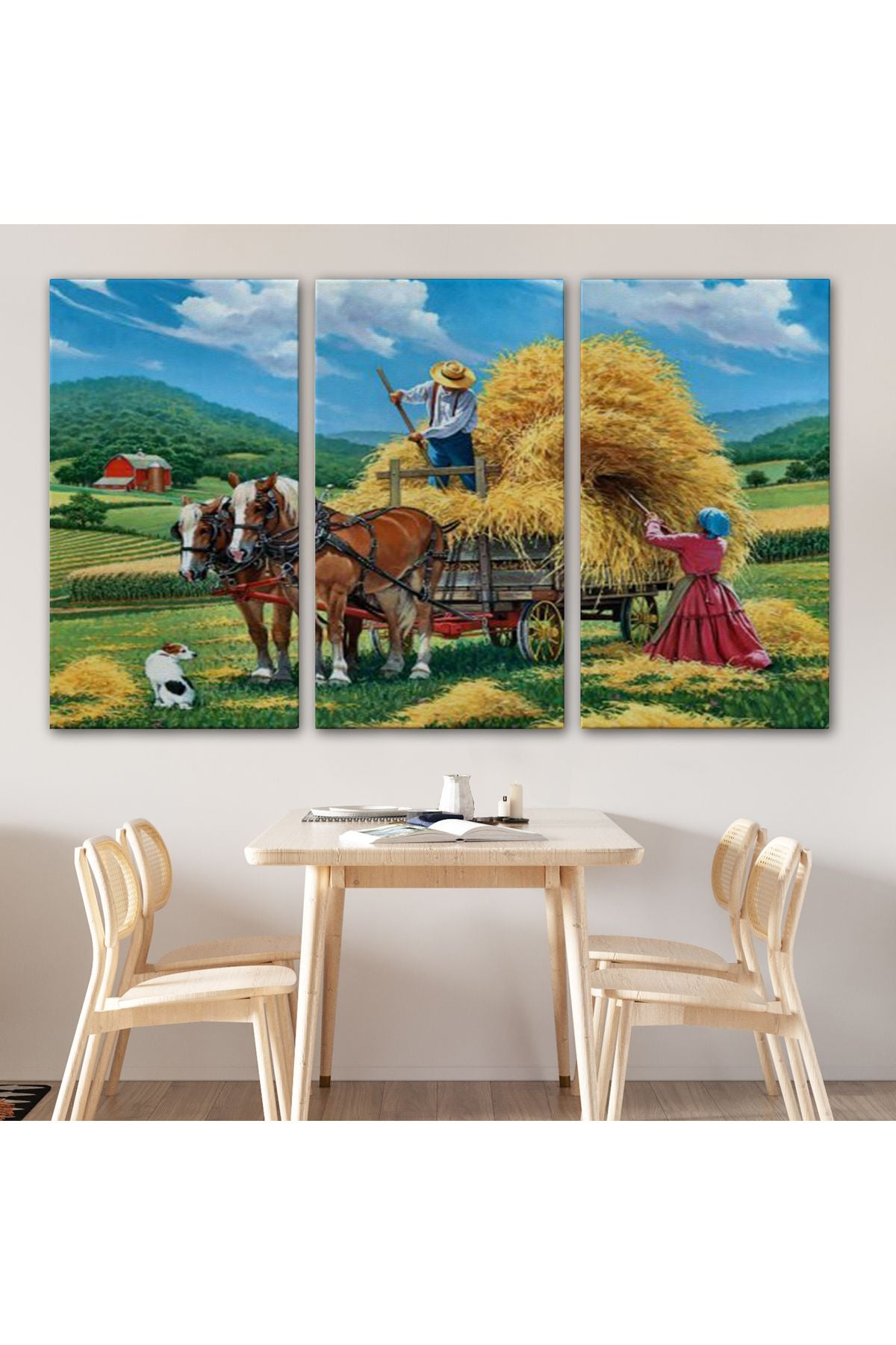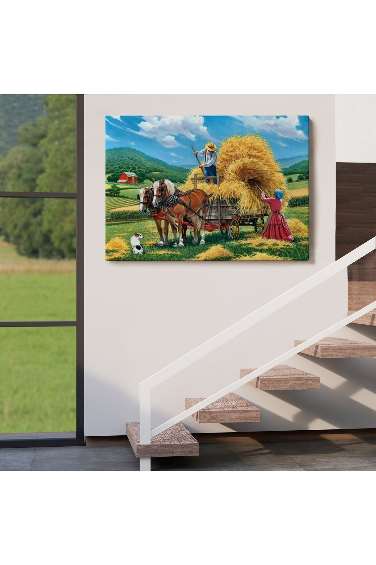 At Arabasına Saman Yükleyen Köylüler Duvar Tablosu-6531