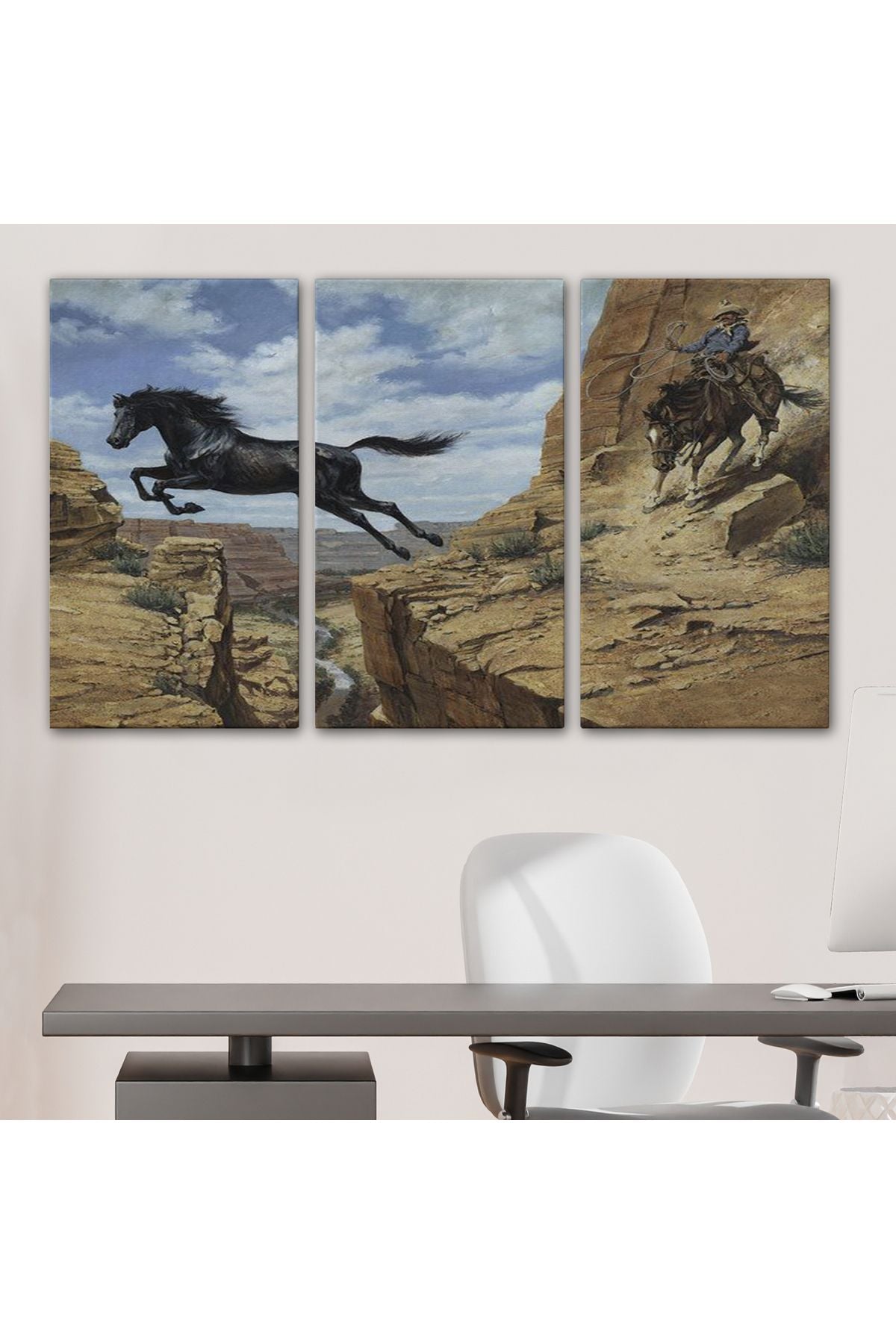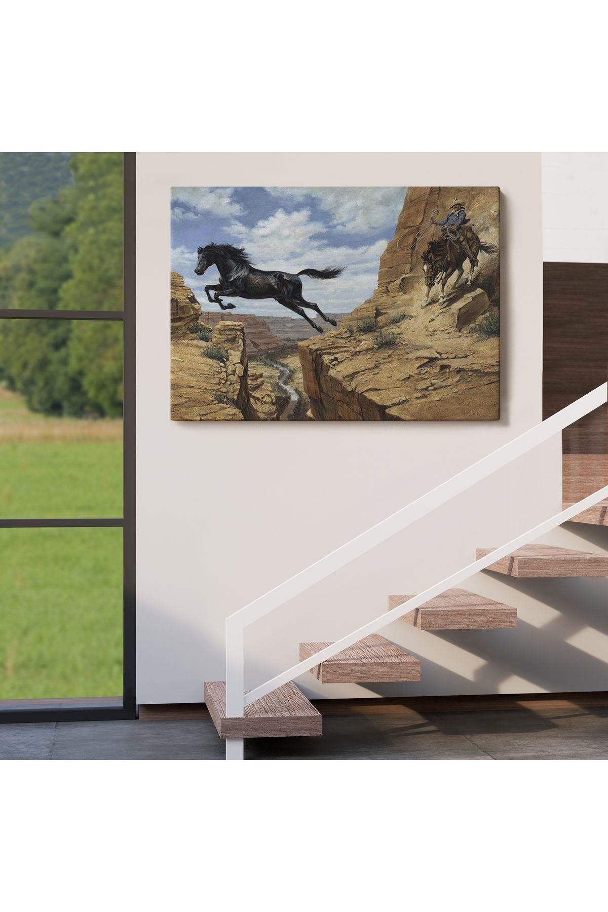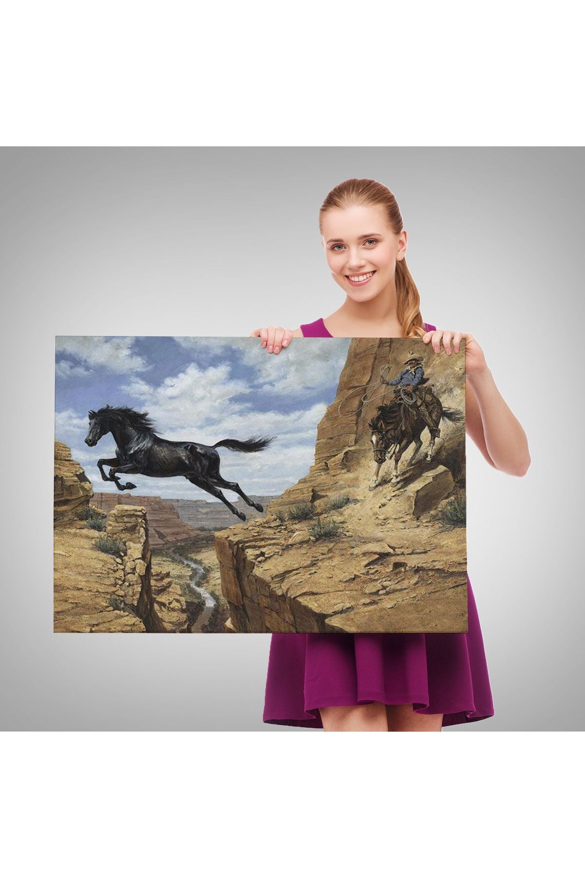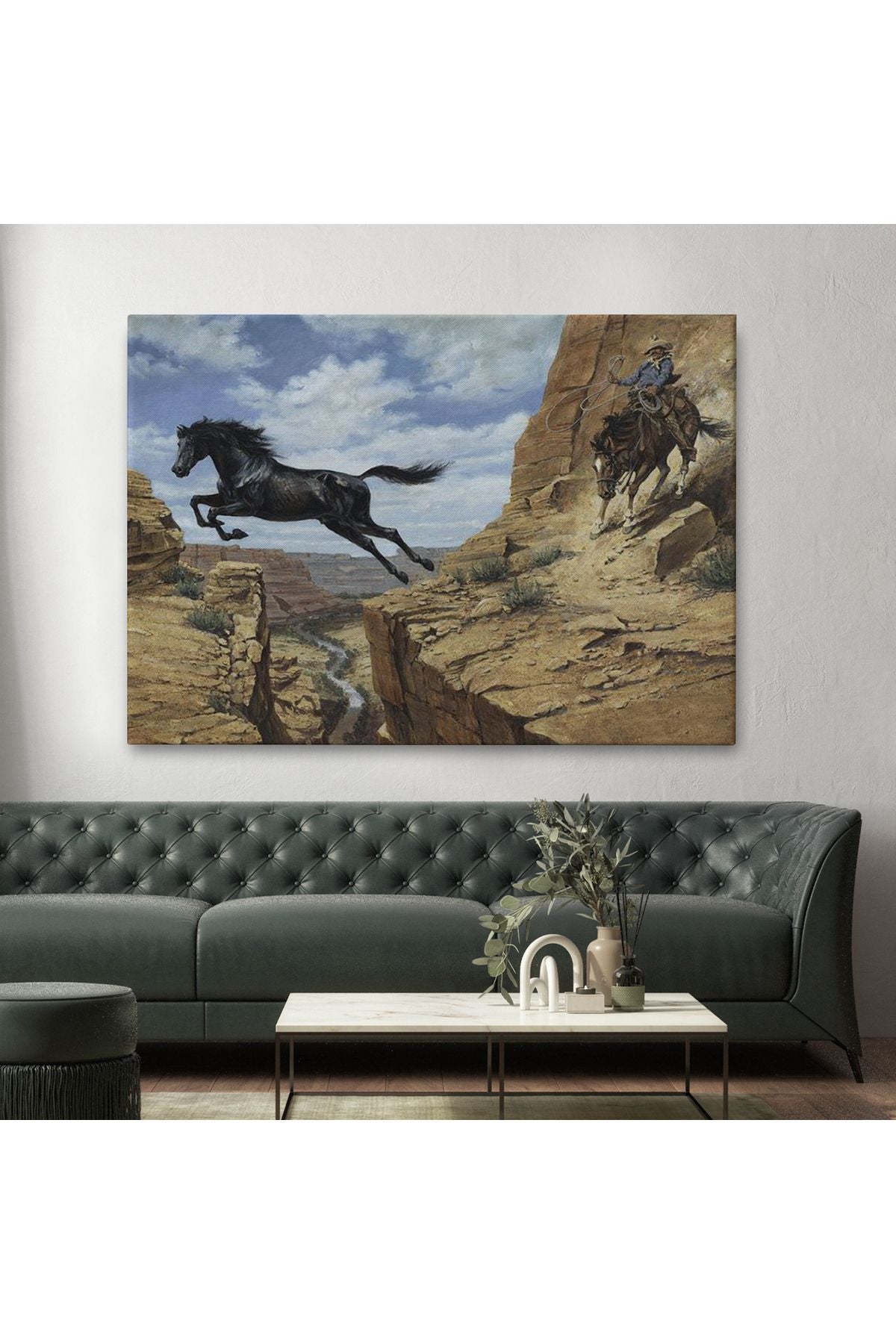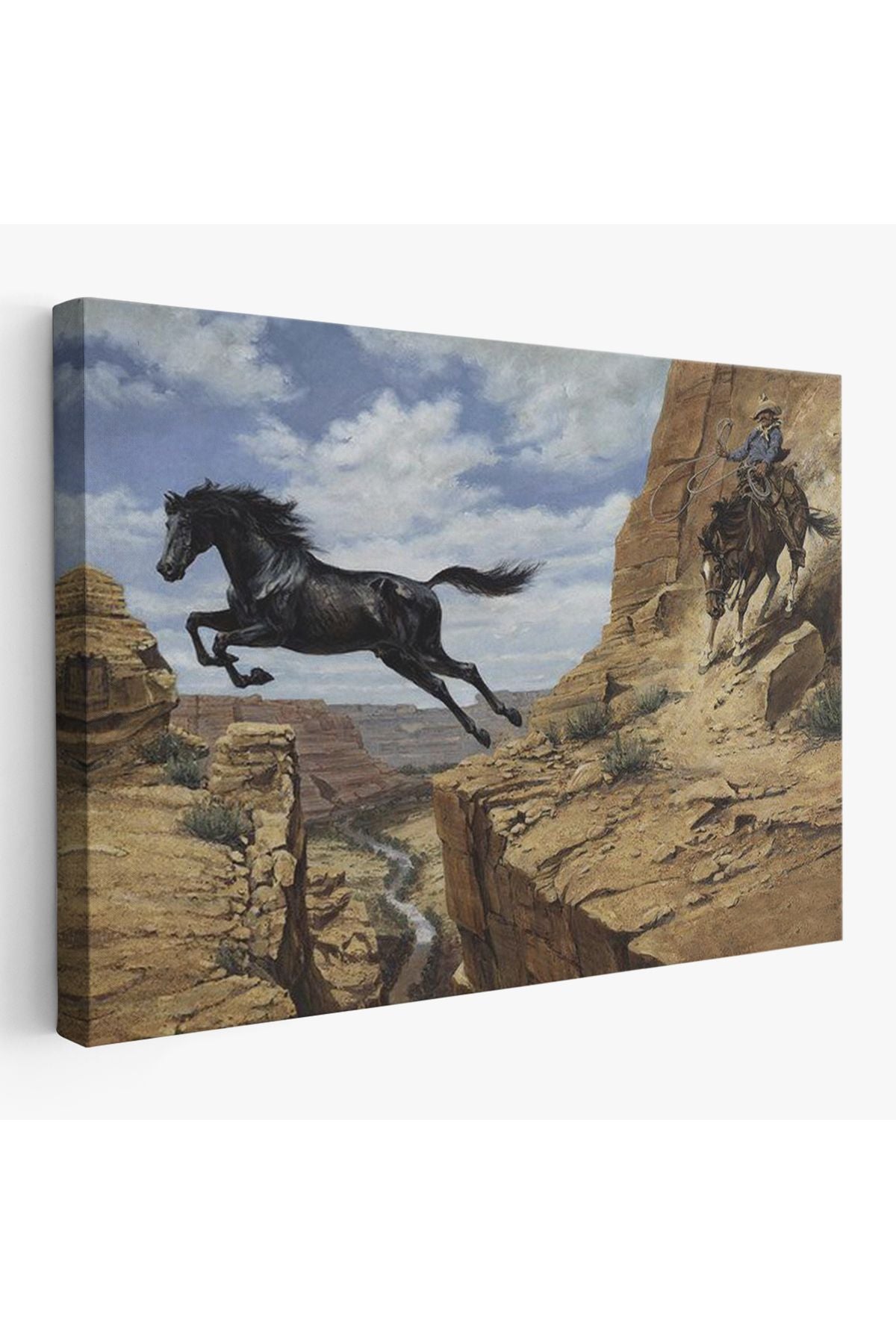 Atı Yakalamaya Çalışan Kavboy Tablosu-6537