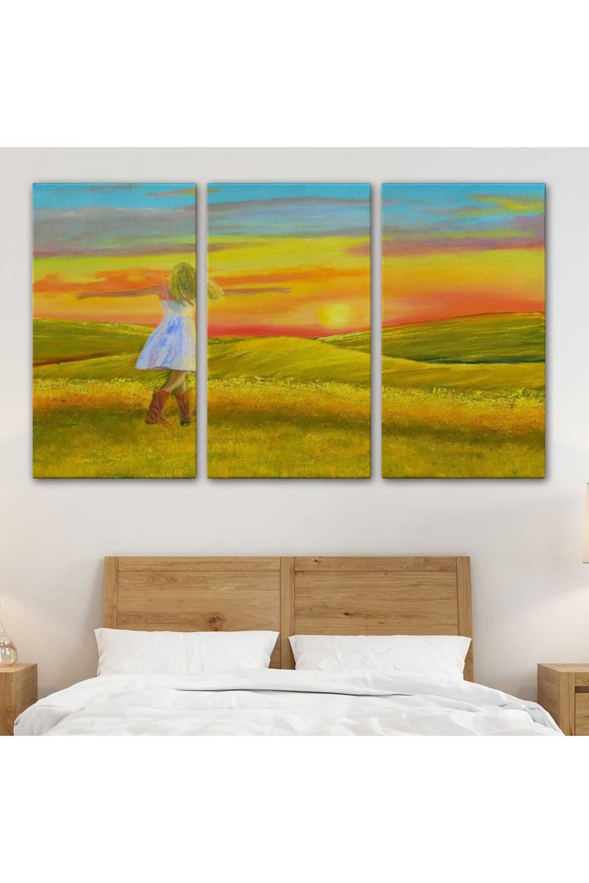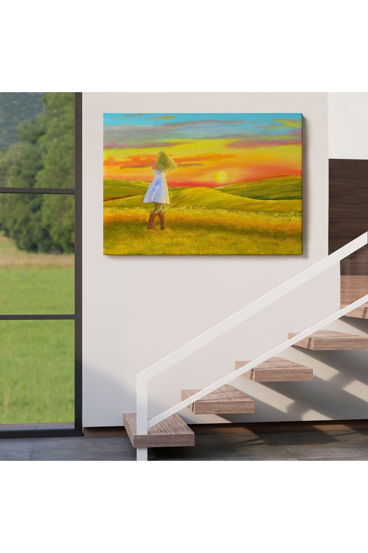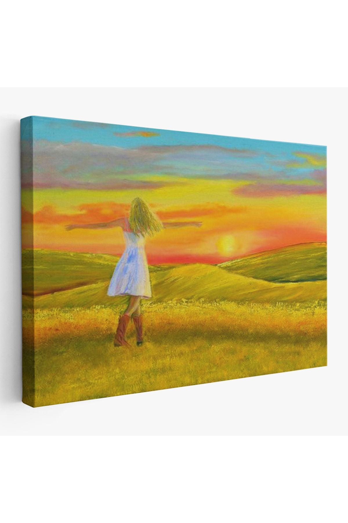 Beyaz Elbiseli Kız Ve Yaz Manzarası Tablosu-6569