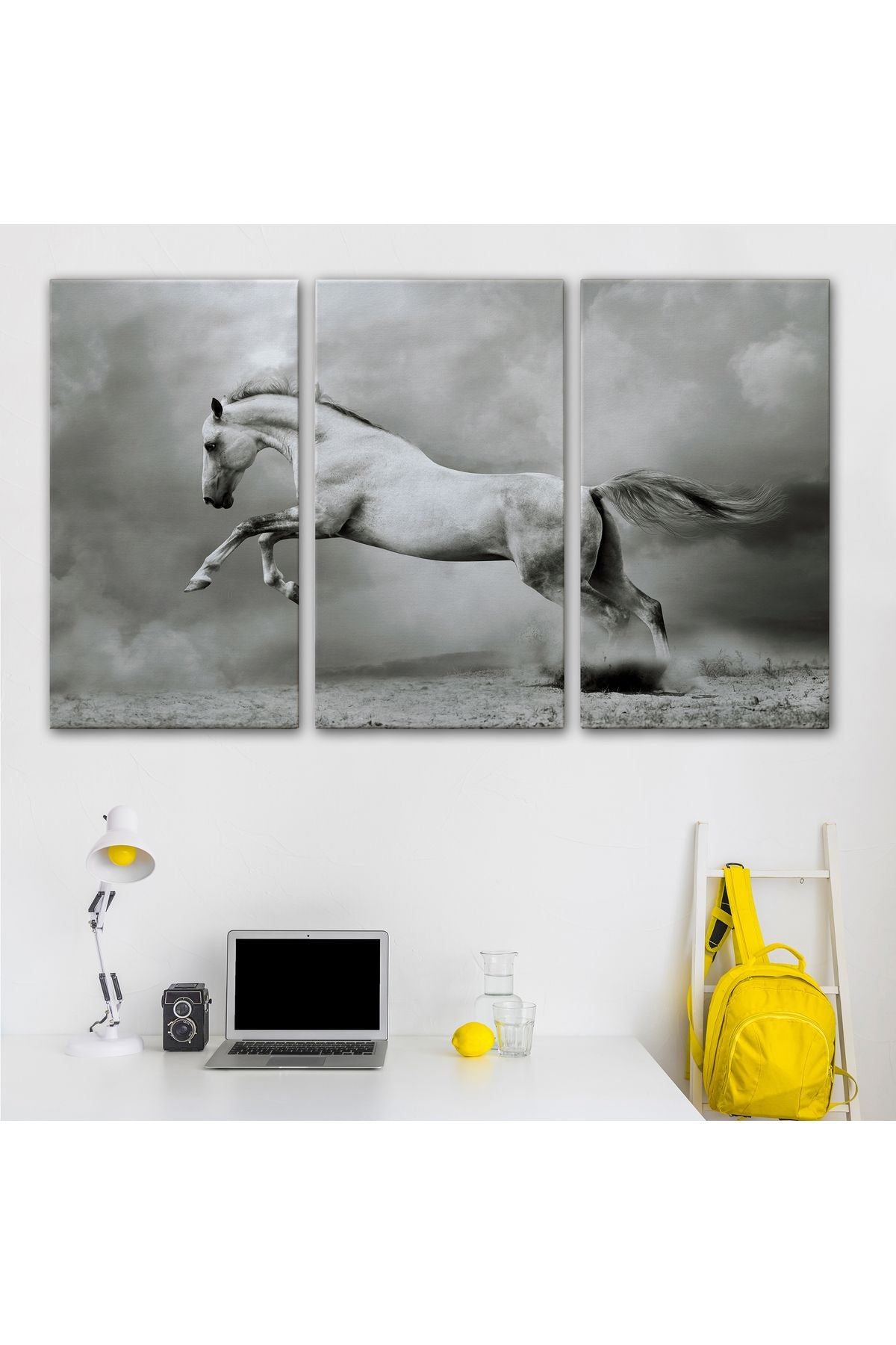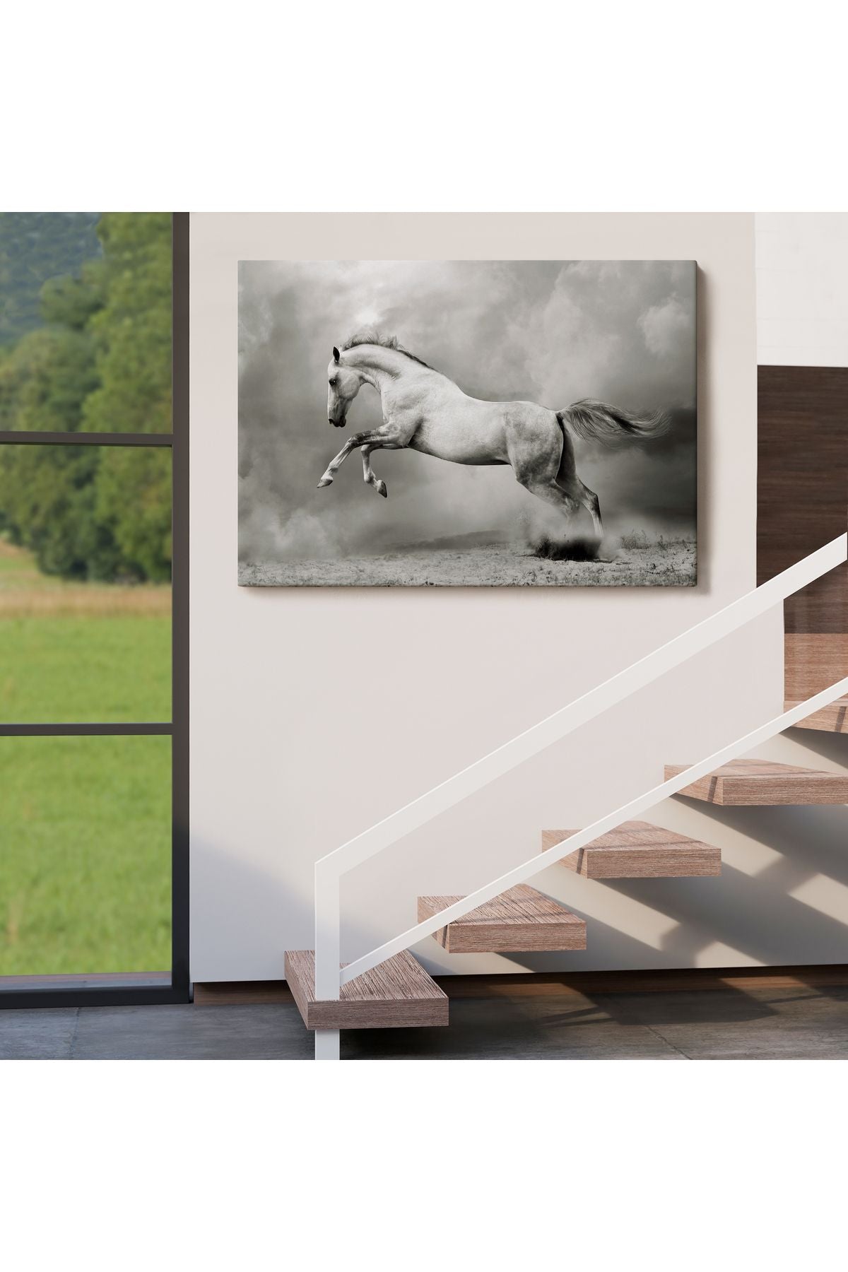 Özel Tasarım, Dekortif BaskıÇöldeki Beyaz At Tablosu-6598