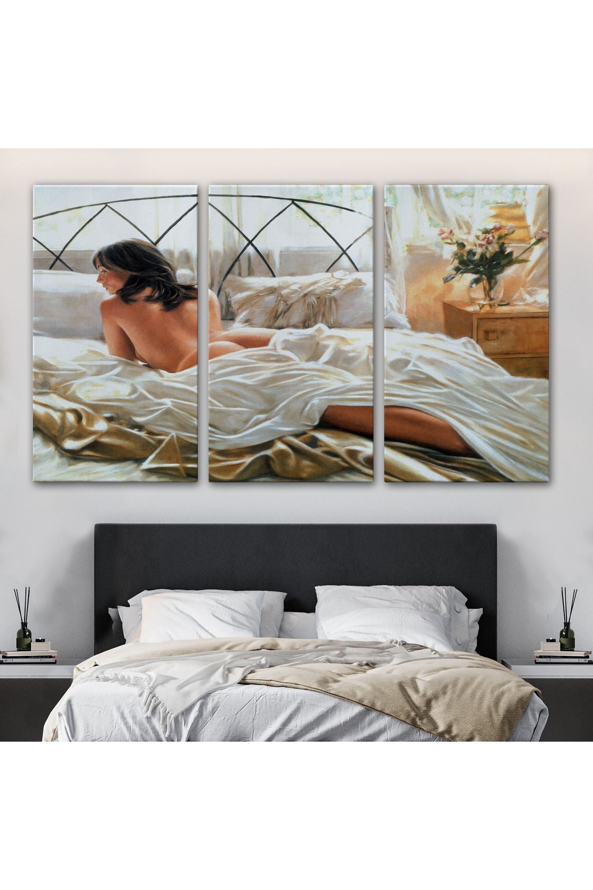 Yataktaki Güzel Kadın Dekoratif Duvar Tablosu-6607