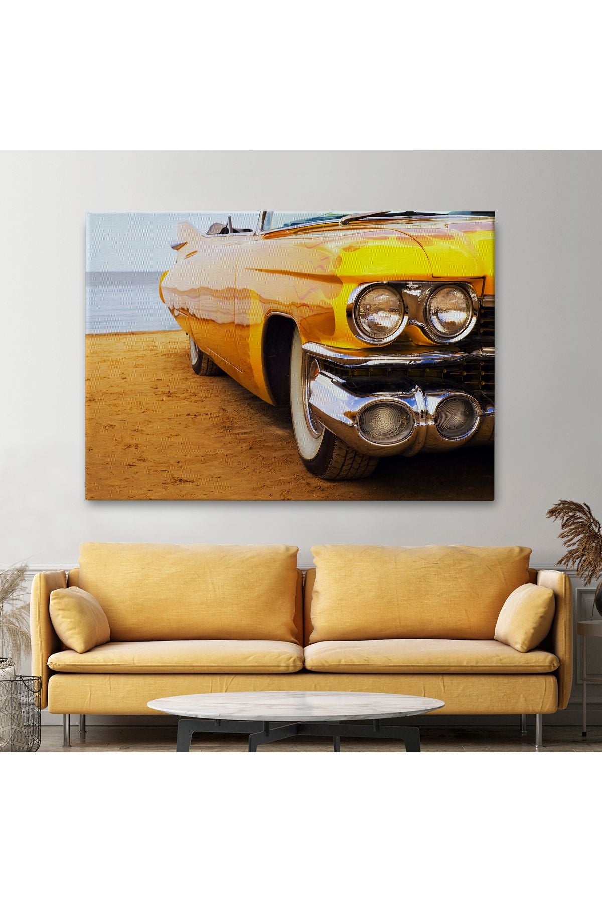 Sarı Klasik Araba Tablosu-6612