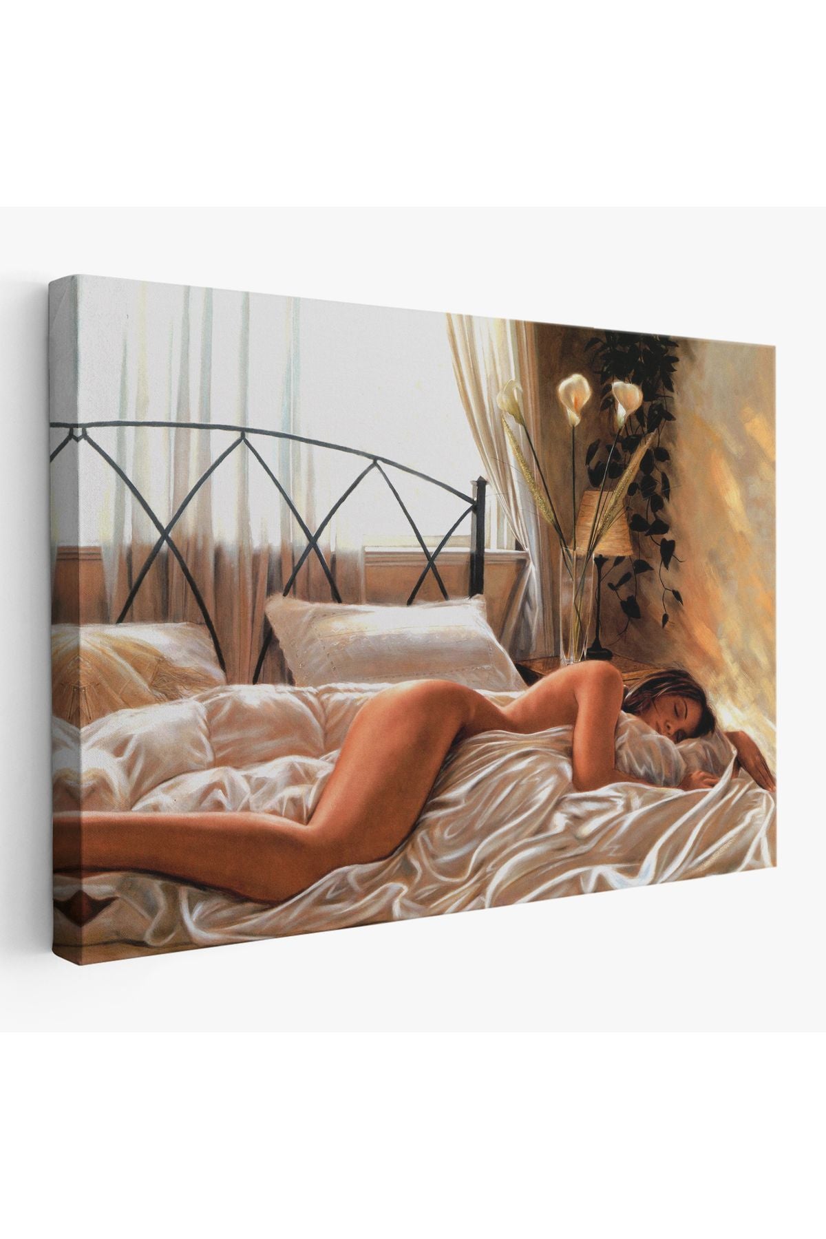 Yataktaki Güzel Kadın Dekoratif Duvar Tablosu-6617