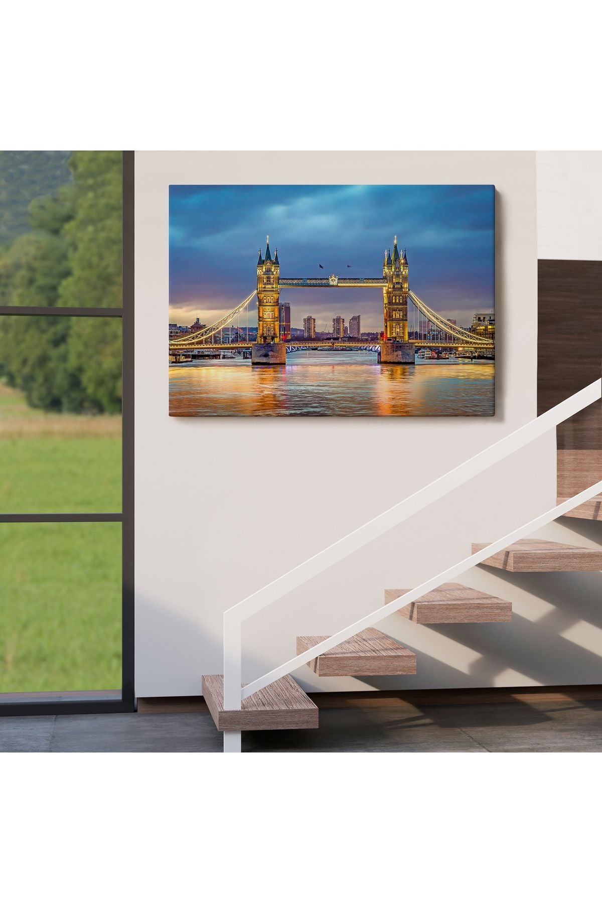 Özel Tasarım Londra Köprüsü Gece Manzara Tablosu-6638