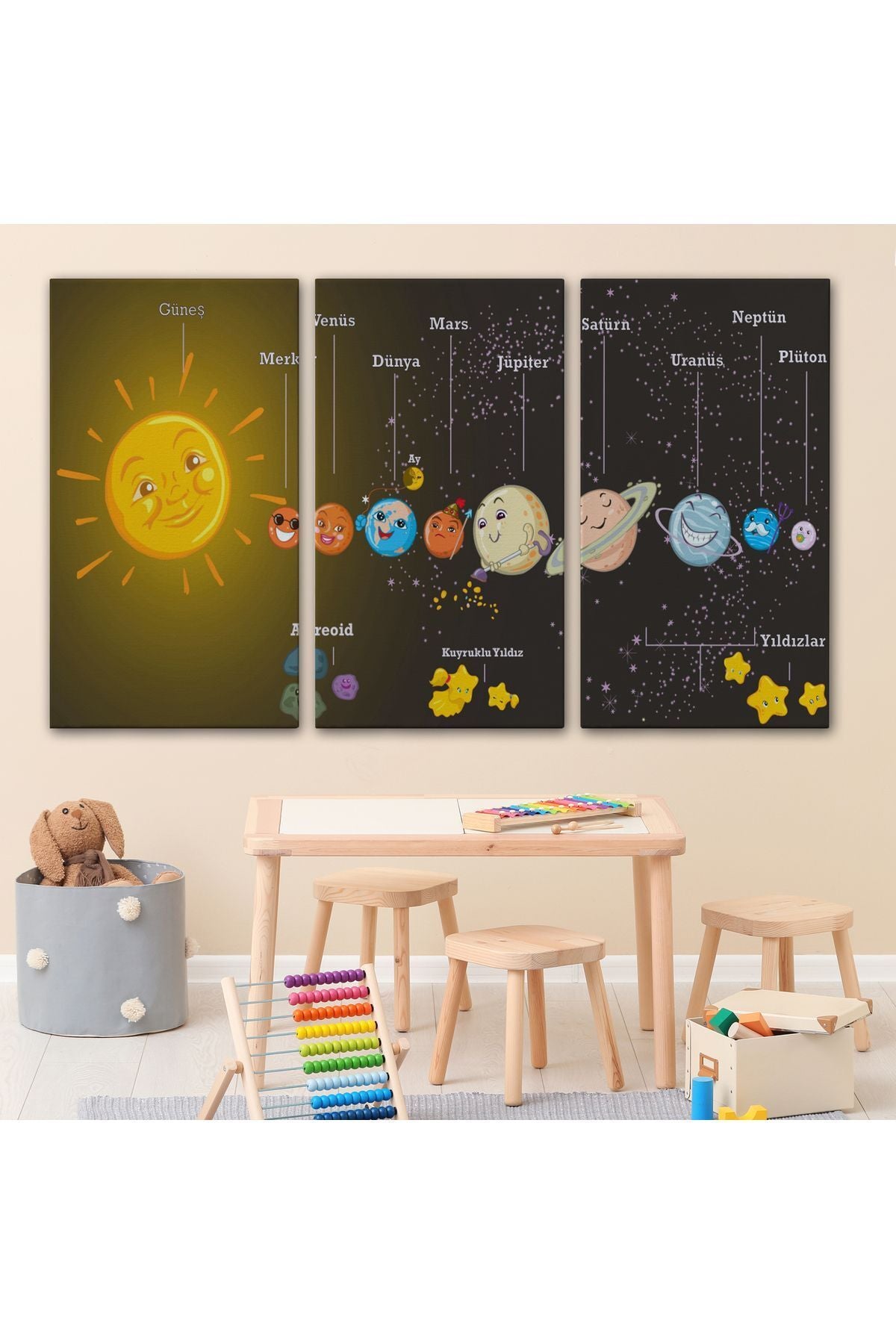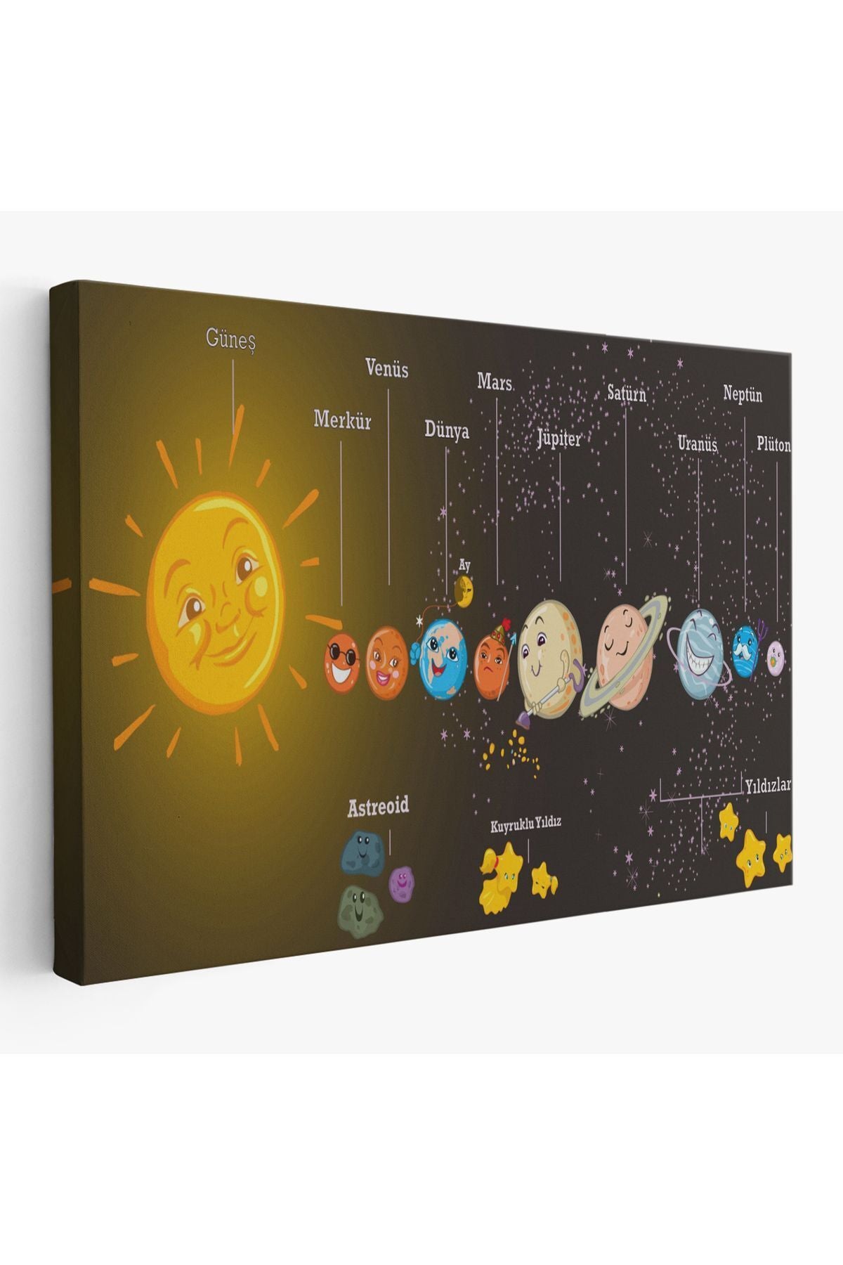 Dekoratif Kanvas Tablo-Gezegenler ile Güneş Sistemi Duvar Tablosu 6641