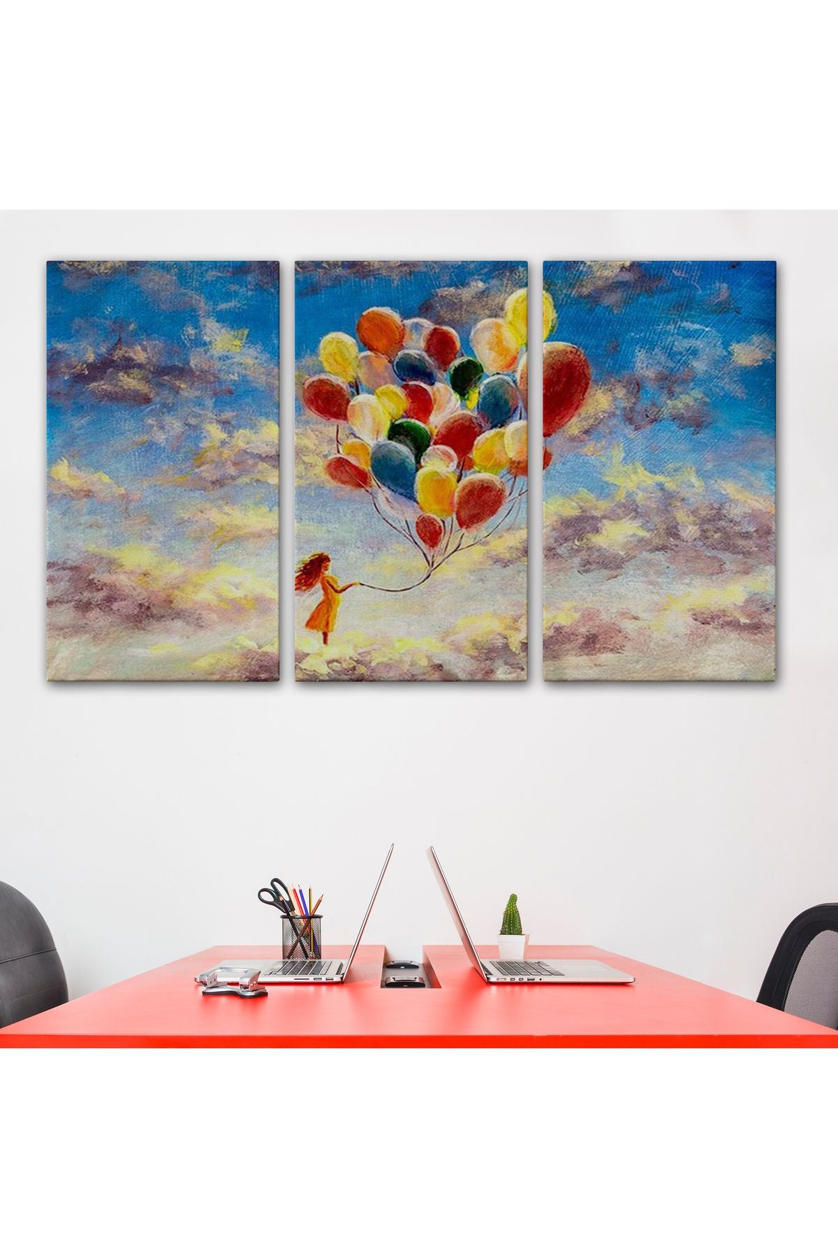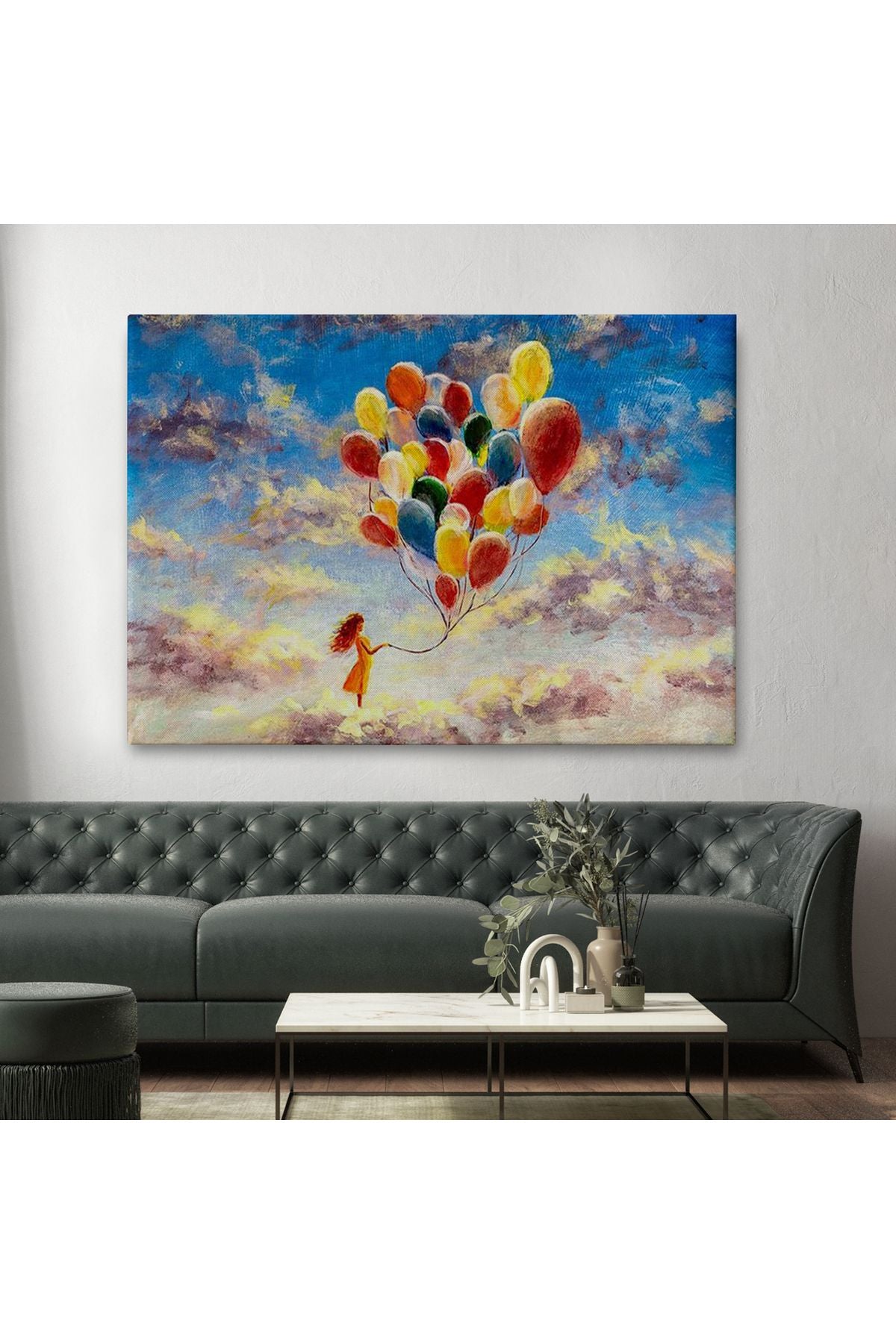 HG Bulutlaların Üzerindeki Renkli Balonları Tutan Kız Tablosu-6643