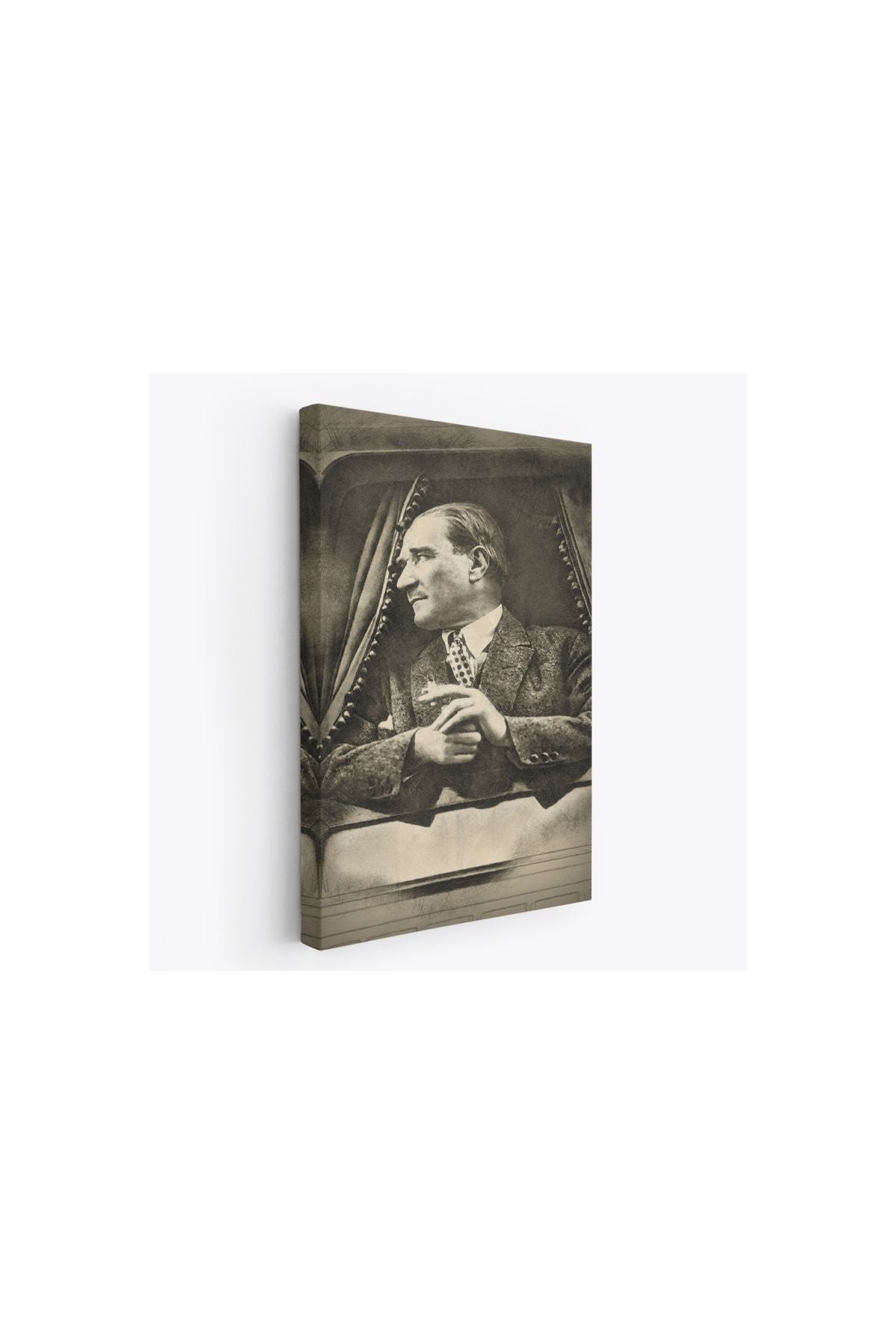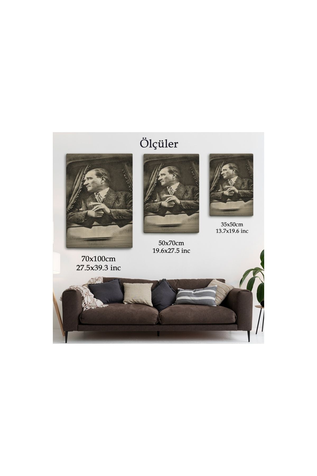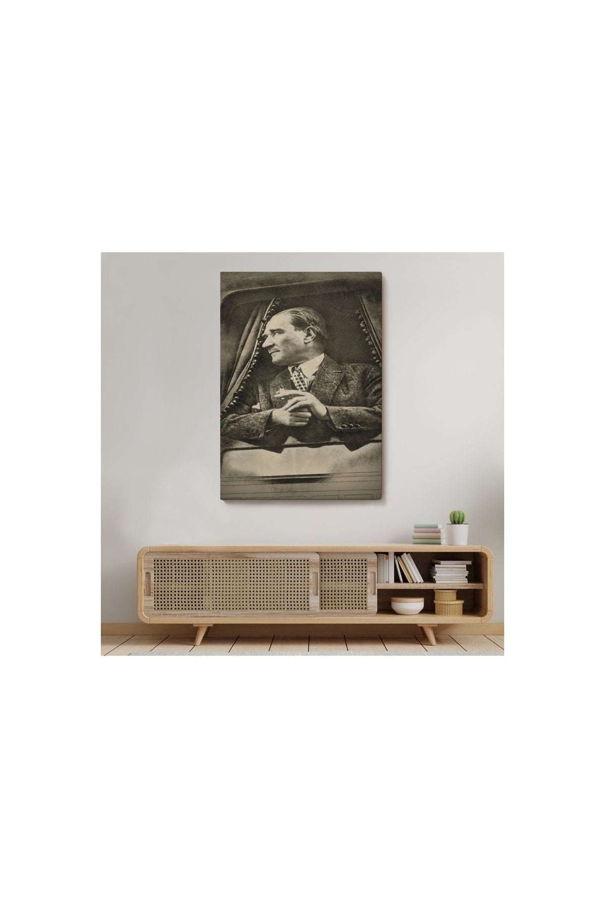 Mustafa Kemal Atatürk'ün Karakalem Görünümlü Portre Çizimi Dikdörtgen Dekoratif Kanvas Tablo-de-82