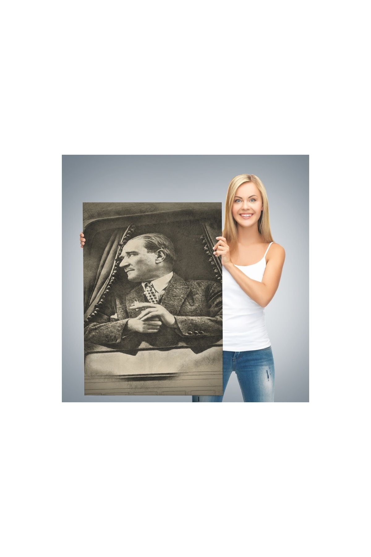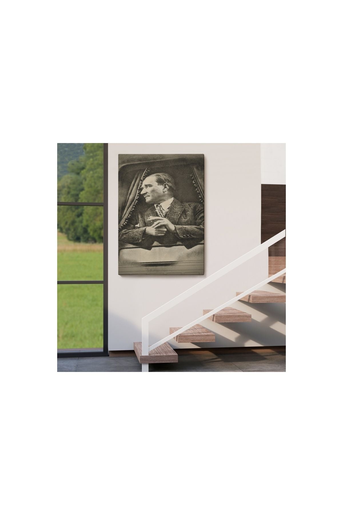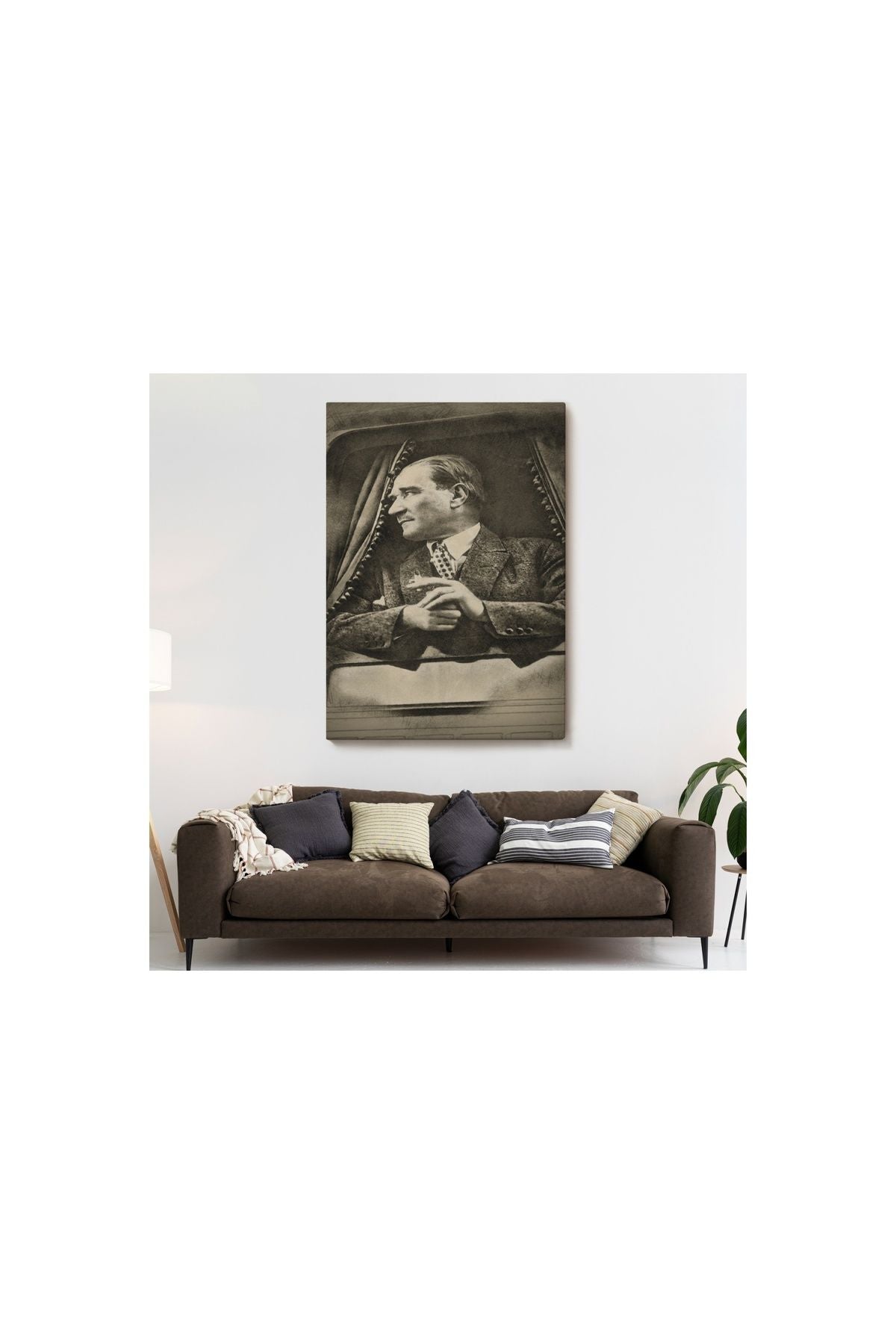Mustafa Kemal Atatürk'ün Karakalem Görünümlü Portre Çizimi Dikdörtgen Dekoratif Kanvas Tablo-de-82